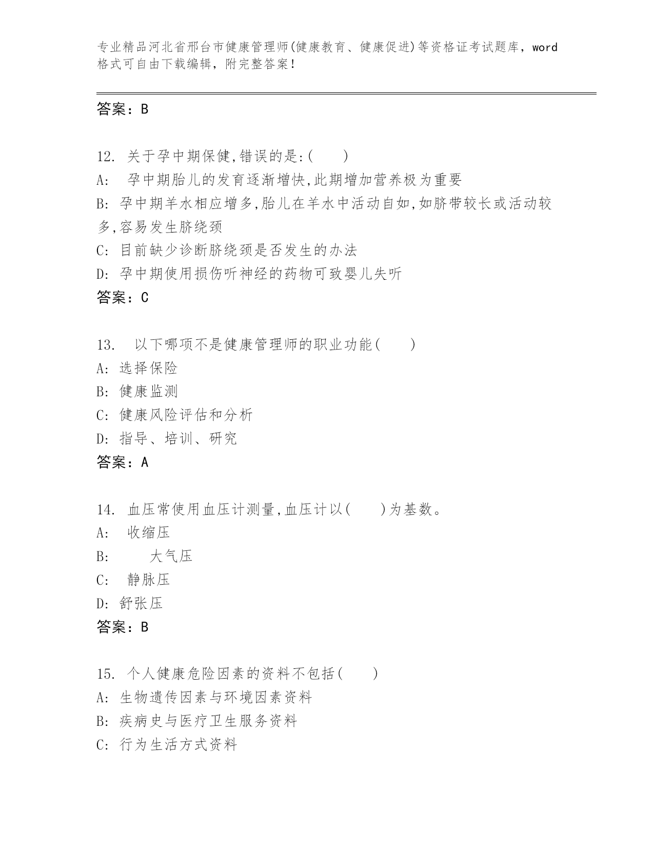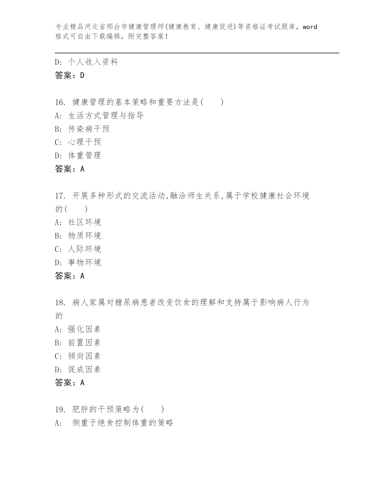 河北省邢台市健康管理师(健康教育、健康促进)等资格证考试题库【易错题】