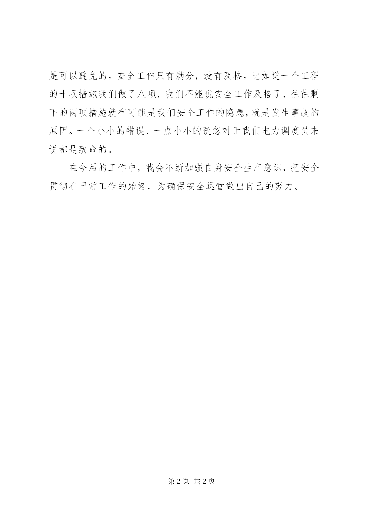 第PAGE\*Arabic\*MERGEFORMAT2页共NUMPAGES\*MERGEFORMAT2页安全环保大讨论安全大讨论最近,我们调度指挥中心开展了安全大讨论,针对前一阶段在安全生产中出现了一些问题,我们每一个人都进行了深刻的反思。作为一名电力调度员,一定要深刻吸取事故教训,以人为本,安全至上,认真贯彻落实各项规章制度,加强学习,通过自己的努力确保地铁运营安全。从我们每一个人踏入电力行业的大门,就开始接受安全教育。“安全第一,预防为主”我们牢记在心,《调度规程》和《工作标准》翻破了一本又一本,安全学习记录是厚厚一大叠,可发生事故后进行分析,结果只有“违章”。我想不会有人对调度规程、工作标准以及企业规章制度有任何怀疑,因为这些都是鲜血教训的经验凝结,每个人都对这些耳熟能详,但为什么最终却不能落实到行动上。究其原因就是个别人怀着侥幸心理,心里少了安全生产这根弦。有资料显示,在有认为责任的事故中,90%以上的是责任人心存侥幸,安全措施未做到位而造成的。的确,在企业的安全生产实践中正是一些人有了“及格就行”的思想,才导致了事故的发生,轻则设备受损,重则人身伤亡,如果每个安全责任人能够树立“只有满分”的思想,100%严格按安规办事;执行到位,不漏过一个细节;检查到位,不漏过一个疑点,许许多多的事故都是可以避免的。安全工作只有满分,没有及格。比如说一个工程的十项措施我们做了八项,我们不能说安全工作及格了,往往剩下的两项措施就有可能是我们安全工作的隐患,就是发生事故的原因。一个小小的错误、一点小小的疏忽对于我们电力调度员来说都是致命的。在今后的工作中,我会不断加强自身安全生产意识,把安全贯彻在日常工作的始终,为确保安全运营做出自己的努力。