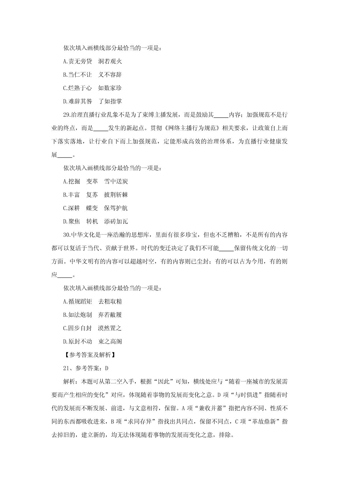 2023年浙江省公务员考试《行测》试题及答案解析(A类)(21—30题)
