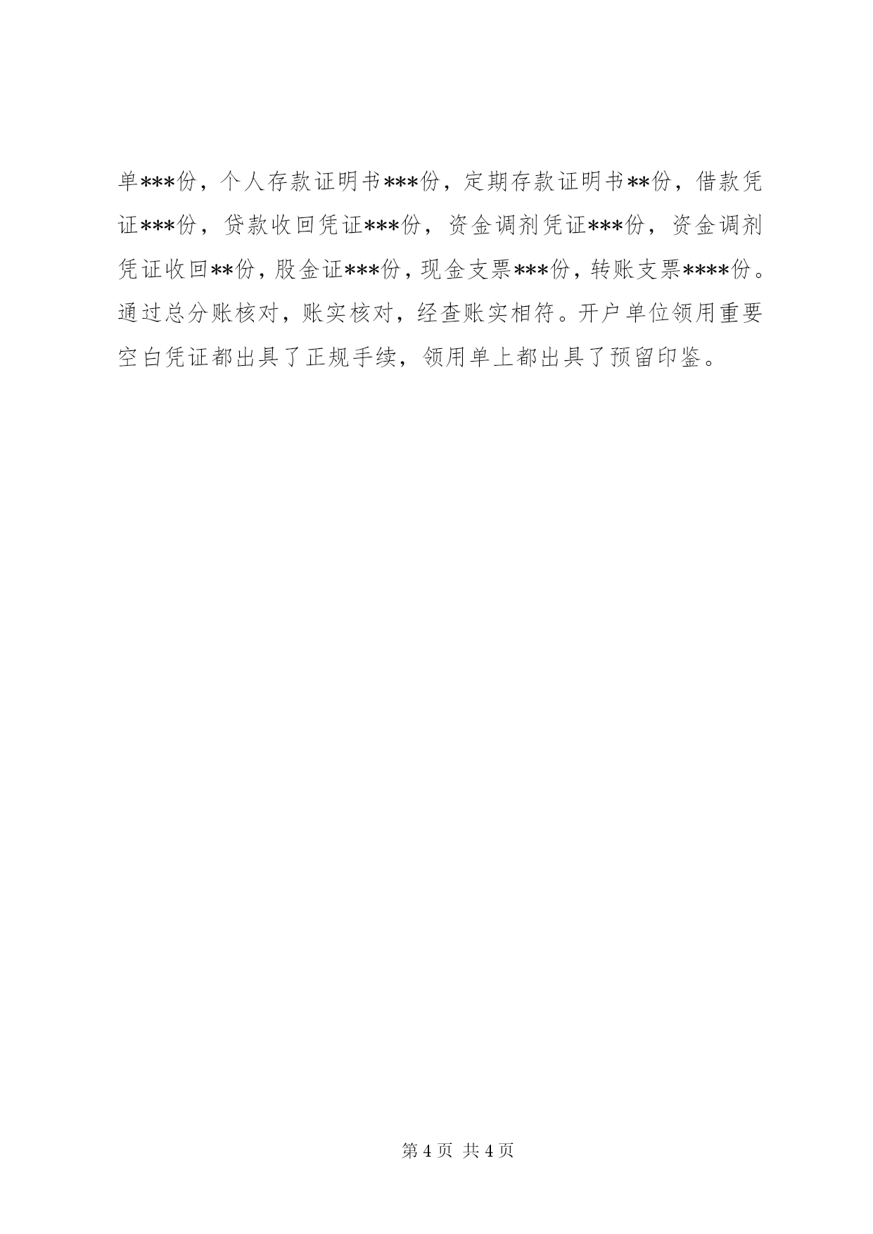 第PAGE\*Arabic\*MERGEFORMAT4页共NUMPAGES\*MERGEFORMAT4页信用社综合治理自查总结报告一、加强组织领导,精心准备成立了信用社案件防范专项治理自查工作领导小组,由**同志任组长,**同志任副组长,***、***、**、**、***等同志为成员,全面开展专项治理自查工作。对信用社进行了全面自查,明确自查人责任,使自查工作覆盖到全社各项业务,自查面均达到100%。二、自查内容:主要检查:1、规章制度健全及落实情况2、存贷款等业务情况3、会计出纳业务情况4、科技网络系统管理情况5、安全保卫业务情况三、方法步骤:由案件专项治理小组组长牵头,检查信贷、会计(含储蓄)、出纳的行为动态,排查参与“黄、赌、毒”、经商办企业、从事股票活动、不正常交友的问题或现象;检查业务规章制度落实和执行情况,重点环节控制制度落实情况;主办会计带领检查会计核算、资金清算及结算情况,单位银行结算账户开销户、内外账及金融机构往来对账情况,印押(机)证分管、库房及重要空白凭证管理情况。四、工作要求:统一思想,认真负责。全体职工要把本次专项治理自查工作作为一项至关重要的工作来抓,不流于形式,不敷衍了事。内外勤紧密配合,查深查细,不留“死角”,杜绝“盲区”,在工作中要做到专项治理与贷款五级分类相结合,与内控制度相结合。既有分工又要合作,遇有不明情况及时沟通,发现重大问题及时向主任报告。自查情况如下:一、各项存款1,对公存款。我社共有人民币银行结算帐户**户,**个基本结算账户,**个专用账户。都经过人民银行核准,余额总计为***万元,经银企对账,与**余额相符。没有挪用客户资金的现象,且未能按要求及时对账,未按时发放帐单**笔。客户办理的各项业务,领用支票,更换内容等,都能按要求办理,或及时备案;业务凭证、及印签都使用正确,核对无误。存在问题是:个别开户单位提供的营业执照复印件中没有年检;2、储蓄存款。储蓄存款截止自查时余额为***万元,通过逐步核对,底卡相符,账卡相符。存在问题是:原部分存款身份证号与实际不符。二、贷款方面。截止8月末,我社共有贷款***笔***万元,其中信用贷款***笔***万元,质押贷款**笔***万元;以形态分,正常贷款为***笔***万元,不良贷款为***笔***万元。xx年1月1日至xx年8月30日期间共新投放贷款***笔,金额***万元,经查发现,贷款逾期未按规定催收**笔,金额***万元(已收回),满额质押贷款**笔***万元,部分贷款没有按月结息。xx年1月1日前贷款共**笔,**万元,经查,共有超过诉讼时效的***笔***万元,部分贷款没有按月结息。三、会计凭证检查情况经过对xx年1月1月至8月31日所有会计凭证的按份检查,发现以下问题:1、会计凭证要素不齐,主要体现在部分开户资料不全,没有地址,电话等资料;2、柜员存在个人为自己办理业务问题;3、前几个月大额现金支现没有留存客户身份证资料;4、有用错凭证情况,有手写情况;5、单据有贴补现象;6、个别取款凭条没有取款人签字。四、重要凭证管理。截止自查时,我社共有库存存折***份,存单***份,单位存单***份,个人存款证明书***份,定期存款证明书**份,借款凭证***份,贷款收回凭证***份,资金调剂凭证***份,资金调剂凭证收回**份,股金证***份,现金支票***份,转账支票****份。通过总分账核对,账实核对,经查账实相符。开户单位领用重要空白凭证都出具了正规手续,领用单上都出具了预留印鉴。