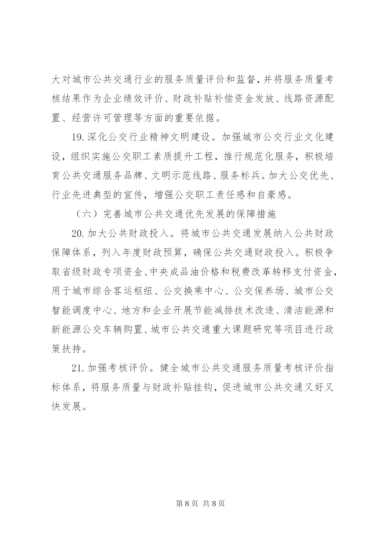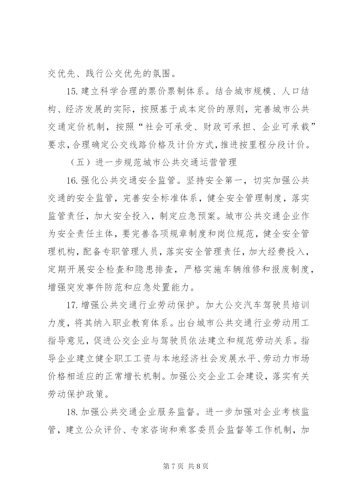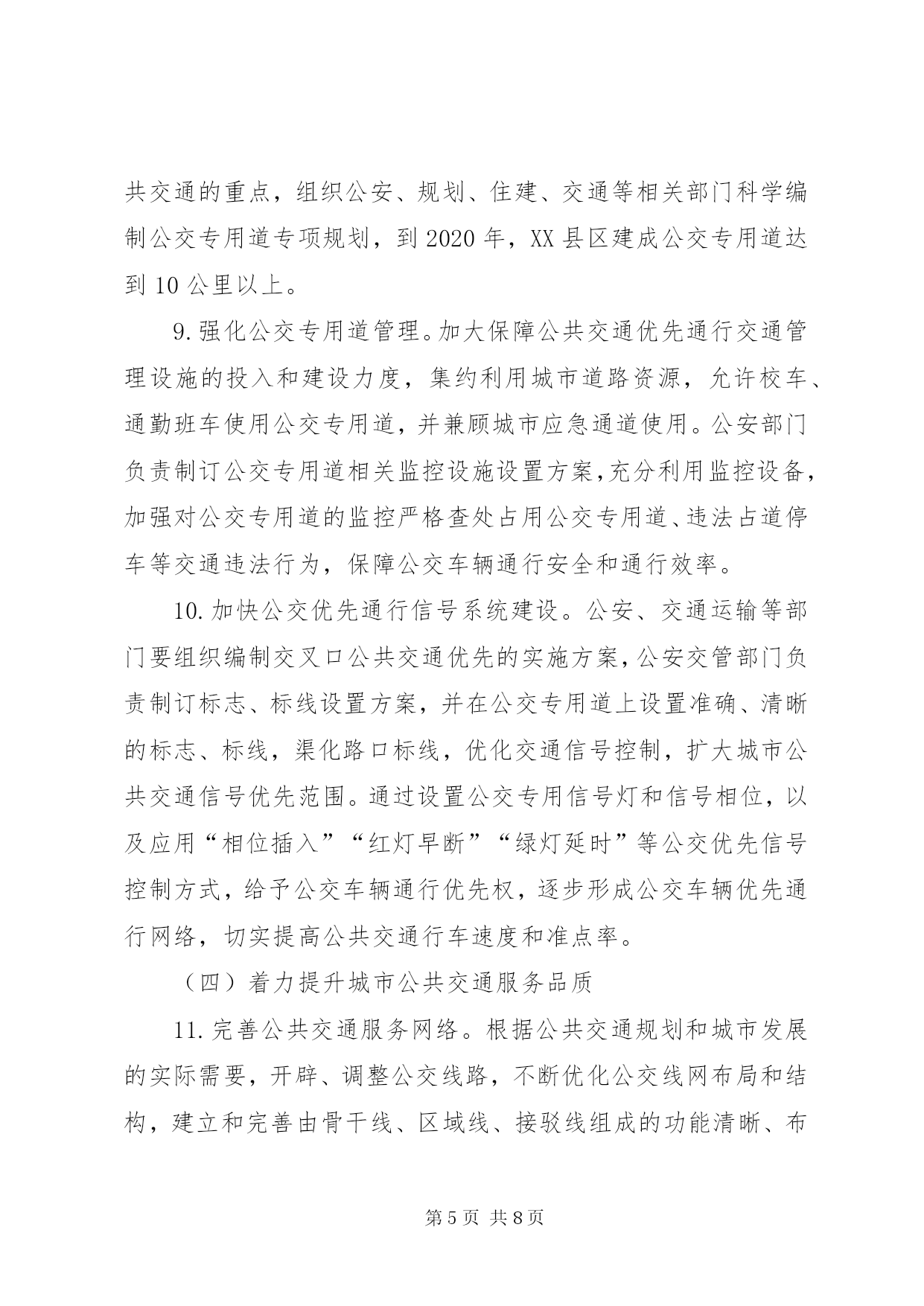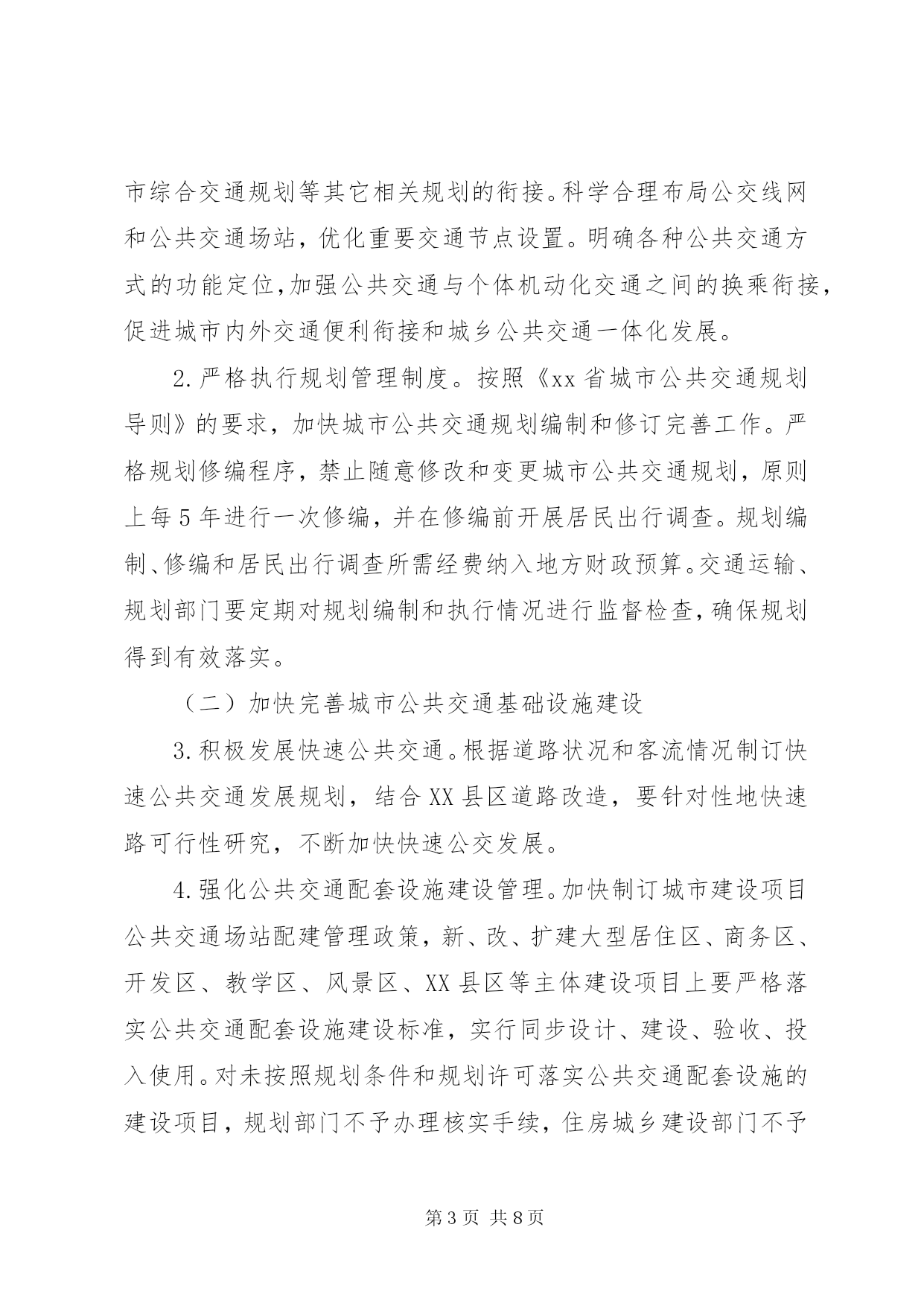 第PAGE\*Arabic\*MERGEFORMAT8页共NUMPAGES\*MERGEFORMAT8页发展城市公共交通方案范文下面是我们文秘114的小编为大家整理的发展城市公共交通方案范文,请大家参阅。为认真贯彻落实《国务院关于城市优先发展公共交通的指导意见》(国发〔2012〕64号)和《省政府关于进一步落实城市公共交通优先发展战略的实施意见》(xx政发〔xx〕xx号)等文件精神,进一步确立公共交通在城市交通中的优先地位,提高城市公共交通服务水平,结合我县实际,现提出如下实施意见。一、指导思想以党的十八届精神为指导,加快转变城市交通发展方式,将公共交通发展放在城市交通发展的首要位置,坚持“方便群众、优先发展、统筹规划、分步实施、政府主导、政策扶持”的发展原则,在财政投入、规划布局、设施用地、路权分配等方面对城市公共交通发展给予优先保障。通过体制、机制创新,科学编制城市公交规划,统筹发展,做好各种出行方式有机衔接,逐步实现城乡道路客运一体化,为市民提供方便周到、便捷高效、经济舒适、绿色环保、安全可靠的公交服务,形成城市公共交通优先发展的新格局。二、工作目标到2020年,基本确立公共交通在城市交通系统中的主体地位,建立以XX县区为中心,十字、章集、七雄和扎下为节点的城市公共交通服务网络,实现保障有力、服务优质、设施完备、管理规范的总体目标。——保障有力。建成区城市万人拥有城市公交16标台,适当扩容出租车辆,XX县区公共交通出行分担率达到18%以上。——设施完备。公交调度中心、停车场、保养场、公交站台、候车亭等配套设施基本完善;城市公交车辆进场率和主干道公交港湾式停靠站设置比例逐年提高,新建或改扩建城市主干道公交站亭同期建设;大型居住小区配套建设公交站点或首末站。——服务优质。提高公共交通的吸引力,增发班次,缩短间隔时间,首末站发班准点率达到100%;逐步增加线路,使线网密度达到3.5公里/平方公里,公交站点300米覆盖率达到50%以上,500米覆盖率达到95%以上;公交企业的服务水平和服务质量满意度达到90%以上。——管理规范。城市公共交通规划体系逐步形成,衔接更加顺畅。城市公共交通政策和标准规范体系逐步完善,城乡道路客运管理政策、票制票价、服务标准等逐步理顺,城乡道路客运一体化管理格局逐步形成。三、工作措施(一)强化城市公共交通规划引导和调控1.科学编制公共交通规划。科学编制完善城市公共交通规划,加强城市公共交通规划与城市总体规划、土地利用总体规划、城市综合交通规划等其它相关规划的衔接。科学合理布局公交线网和公共交通场站,优化重要交通节点设置。明确各种公共交通方式的功能定位,加强公共交通与个体机动化交通之间的换乘衔接,促进城市内外交通便利衔接和城乡公共交通一体化发展。2.严格执行规划管理制度。按照《xx省城市公共交通规划导则》的要求,加快城市公共交通规划编制和修订完善工作。严格规划修编程序,禁止随意修改和变更城市公共交通规划,原则上每5年进行一次修编,并在修编前开展居民出行调查。规划编制、修编和居民出行调查所需经费纳入地方财政预算。交通运输、规划部门要定期对规划编制和执行情况进行监督检查,确保规划得到有效落实。(二)加快完善城市公共交通基础设施建设3.积极发展快速公共交通。根据道路状况和客流情况制订快速公共交通发展规划,结合XX县区道路改造,要针对性地快速路可行性研究,不断加快快速公交发展。4.强化公共交通配套设施建设管理。加快制订城市建设项目公共交通场站配建管理政策,新、改、扩建大型居住区、商务区、开发区、教学区、风景区、XX县区等主体建设项目上要严格落实公共交通配套设施建设标准,实行同步设计、建设、验收、投入使用。对未按照规划条件和规划许可落实公共交通配套设施的建设项目,规划部门不予办理核实手续,住房城乡建设部门不予工程建设竣工验收备案。公共交通配套设施建成后应及时移交公交场站管理部门或公交企业使用,交通运输部门应适时组织开行城市公交运营线路。市区范围内公交场站以资产评估转让方式移交至市公交场站公司,实行统一经营管理和综合商业开发,新、改、扩建的公交场站竣工验收后应在30日内移交。5.加快公共交通场站建设。以服务公交线网优化调整为重点,加快城市次支路、微循环系统和疏堵工程建设,优化城市道路路网结构,分年度、有计划推进公共交通场站建设。到2020年,XX县区建成公交场站10个、出租服务中心1个、新建停靠点50个。6.加强公共交通用地综合开发。按照节约集约用地的原则,推进城市公共交通设施用地节约利用,提高土地利用效率。对现有公共交通设施用地,支持原土地使用者在符合规划且不改变用途的前提下,依法申请提高容积率,进行立体建设。7.保障公共交通设施用地。建立公共交通基础设施用地优先保障制度,在城市控制性详细