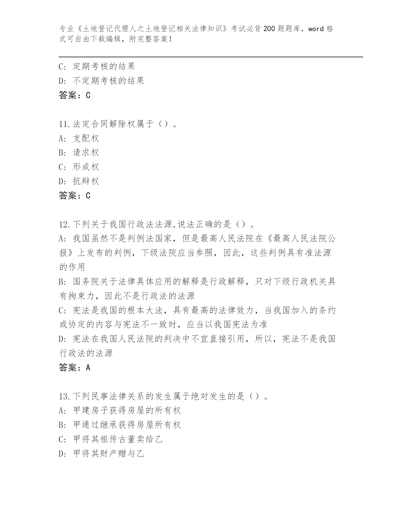 2024黑龙江省泰来县《土地登记代理人之土地登记相关法律知识》资格考试必刷200题真题(网校专用)