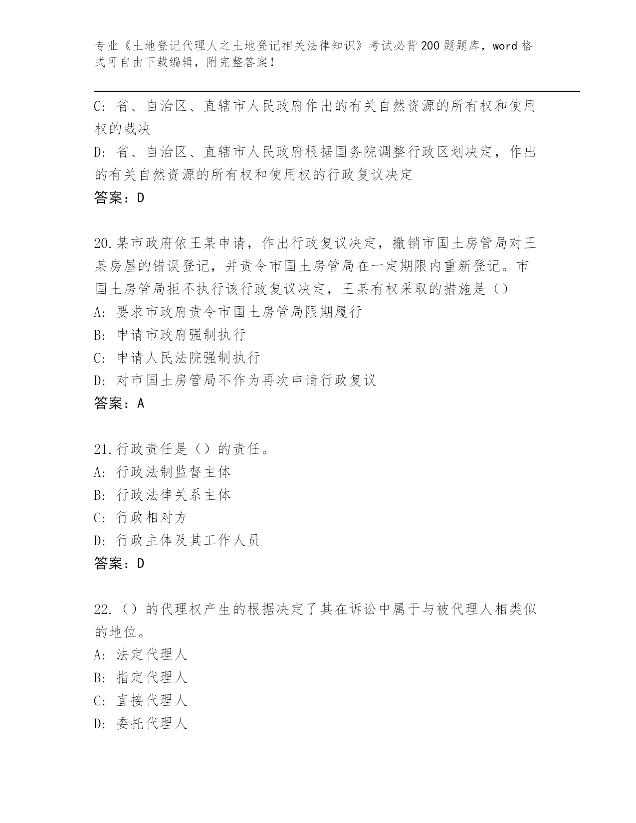 湖南省双牌县2023-2024年《土地登记代理人之土地登记相关法律知识》考试必背200题大全(考点提分).docx
