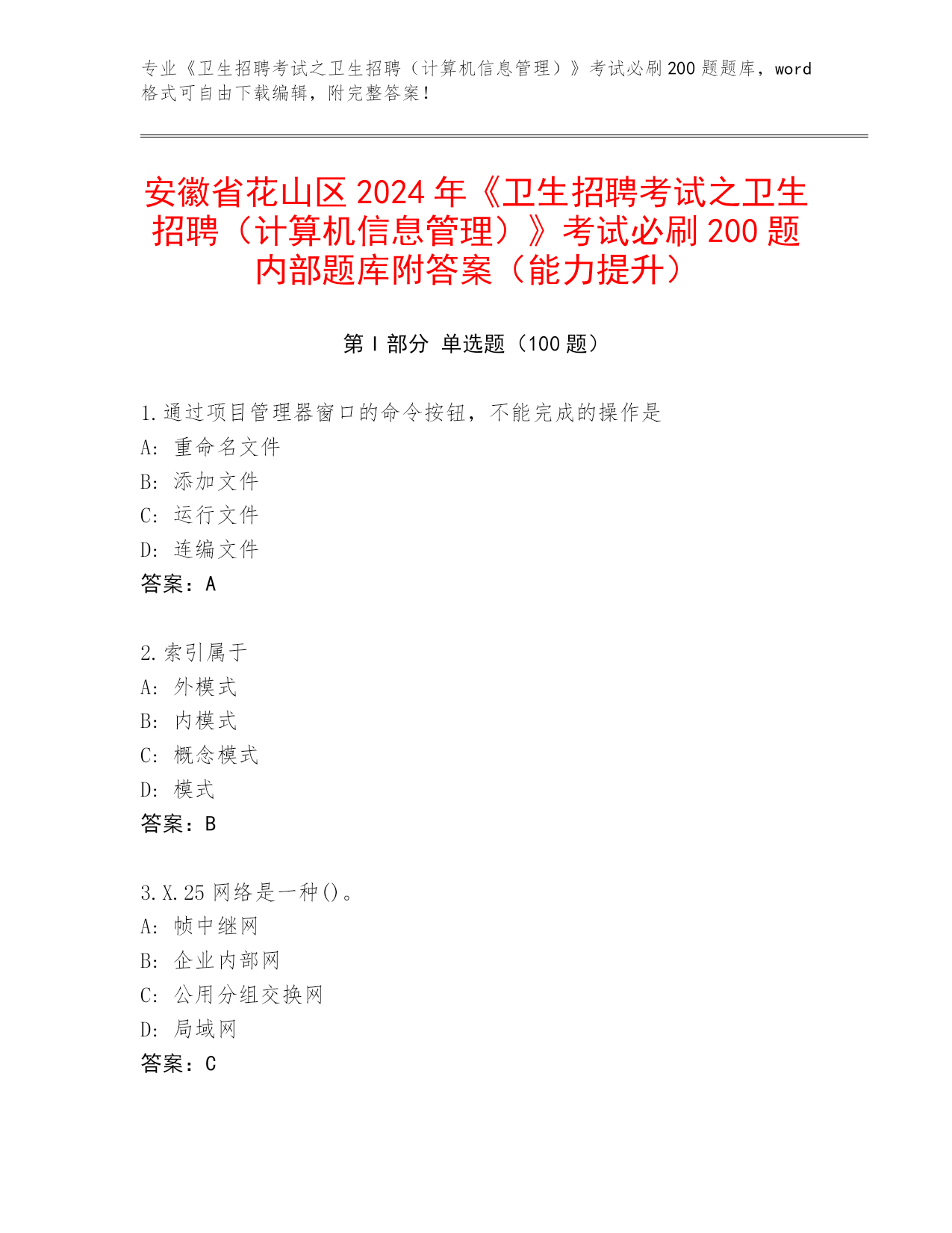 安徽省花山区2024年《卫生招聘考试之卫生招聘(计算机信息管理)》考试必刷200题内部题库附答案(能力提升)