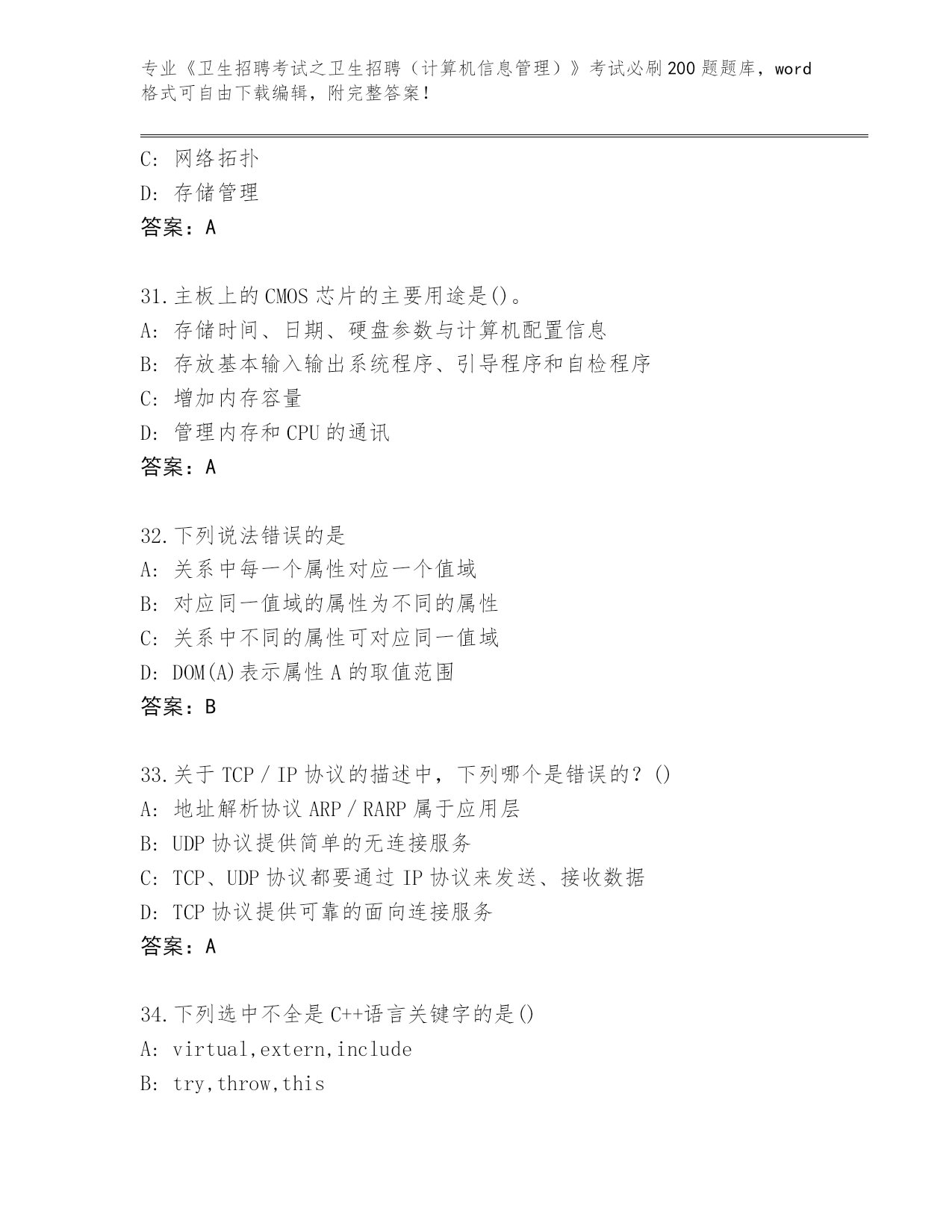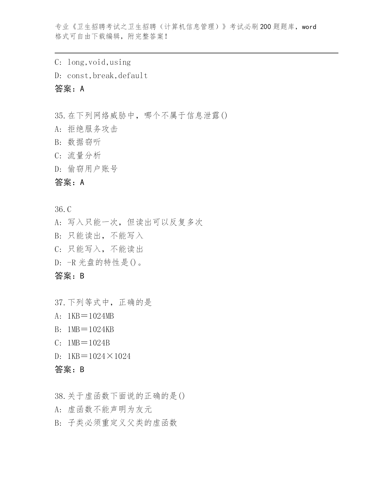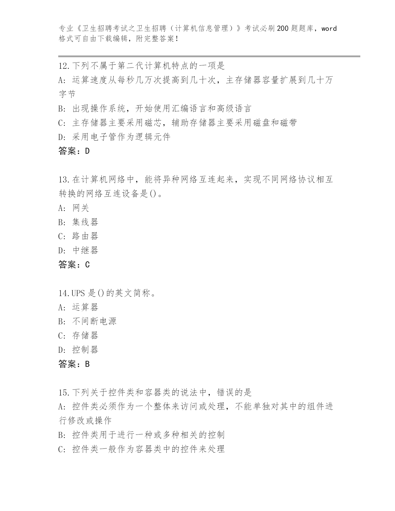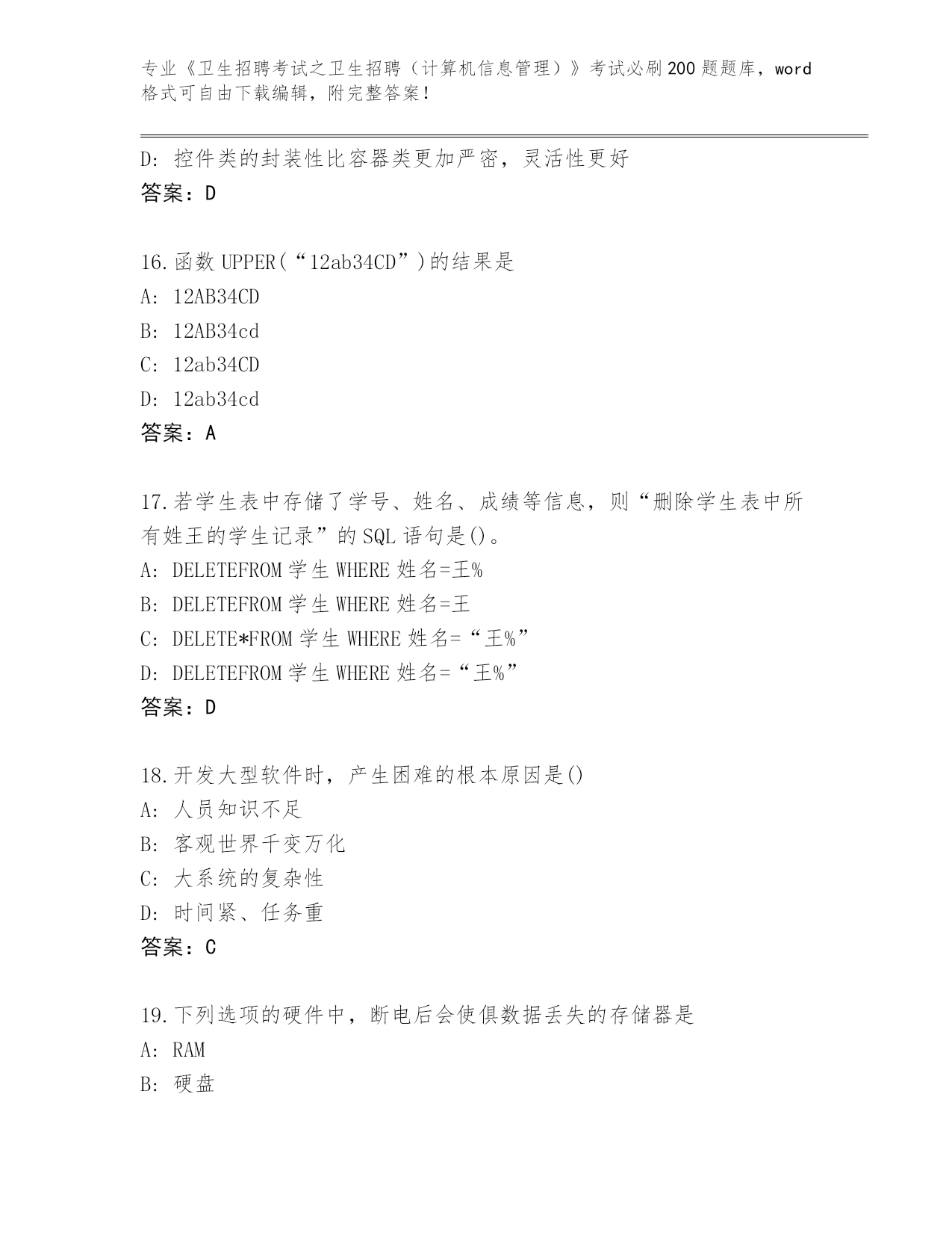 内部使用安徽省杜集区《卫生招聘考试之卫生招聘(计算机信息管理)》资格考试必刷200题内部题库含答案(能力提升)