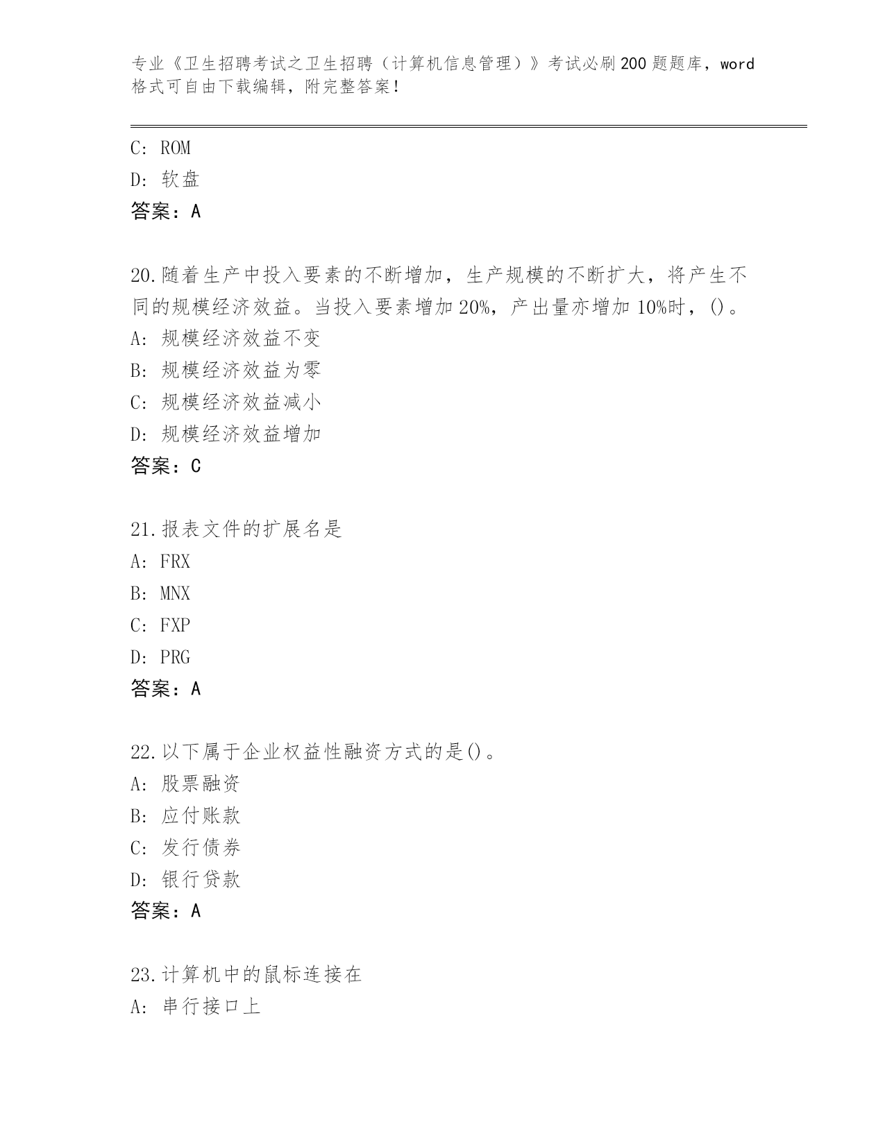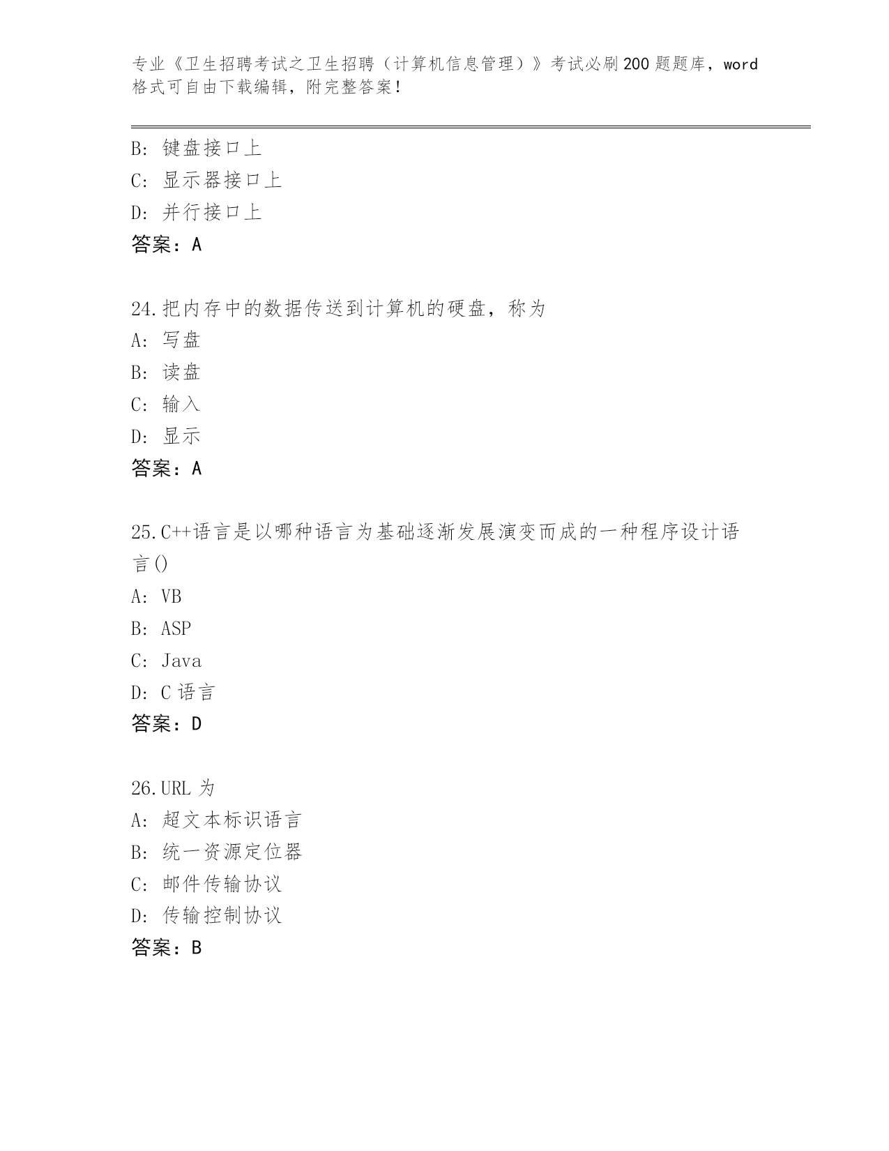 安徽省内部使用《卫生招聘考试之卫生招聘(计算机信息管理)》考试必刷200题内部题库(精练)