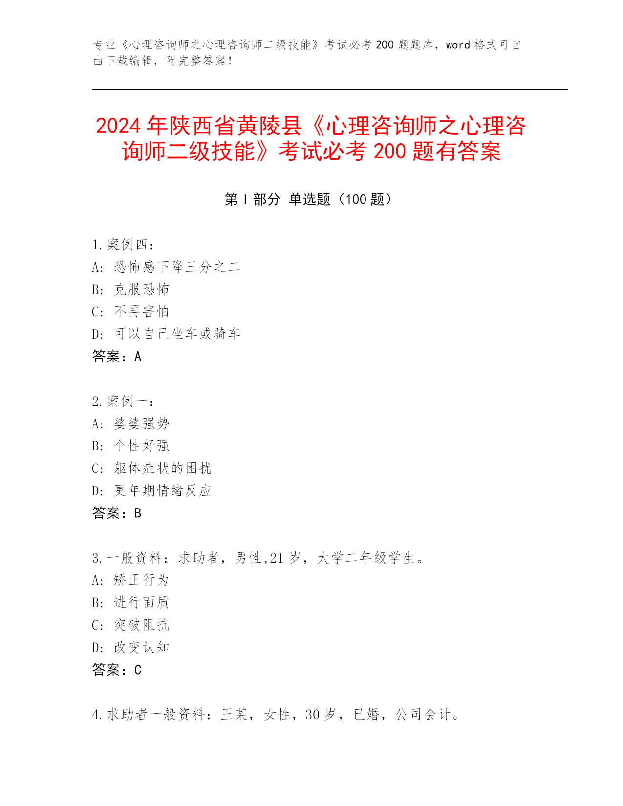 2024年陕西省黄陵县《心理咨询师之心理咨询师二级技能》考试必考200题有答案