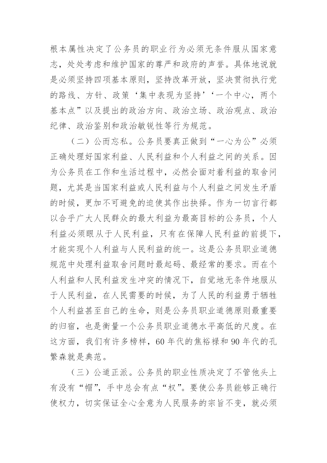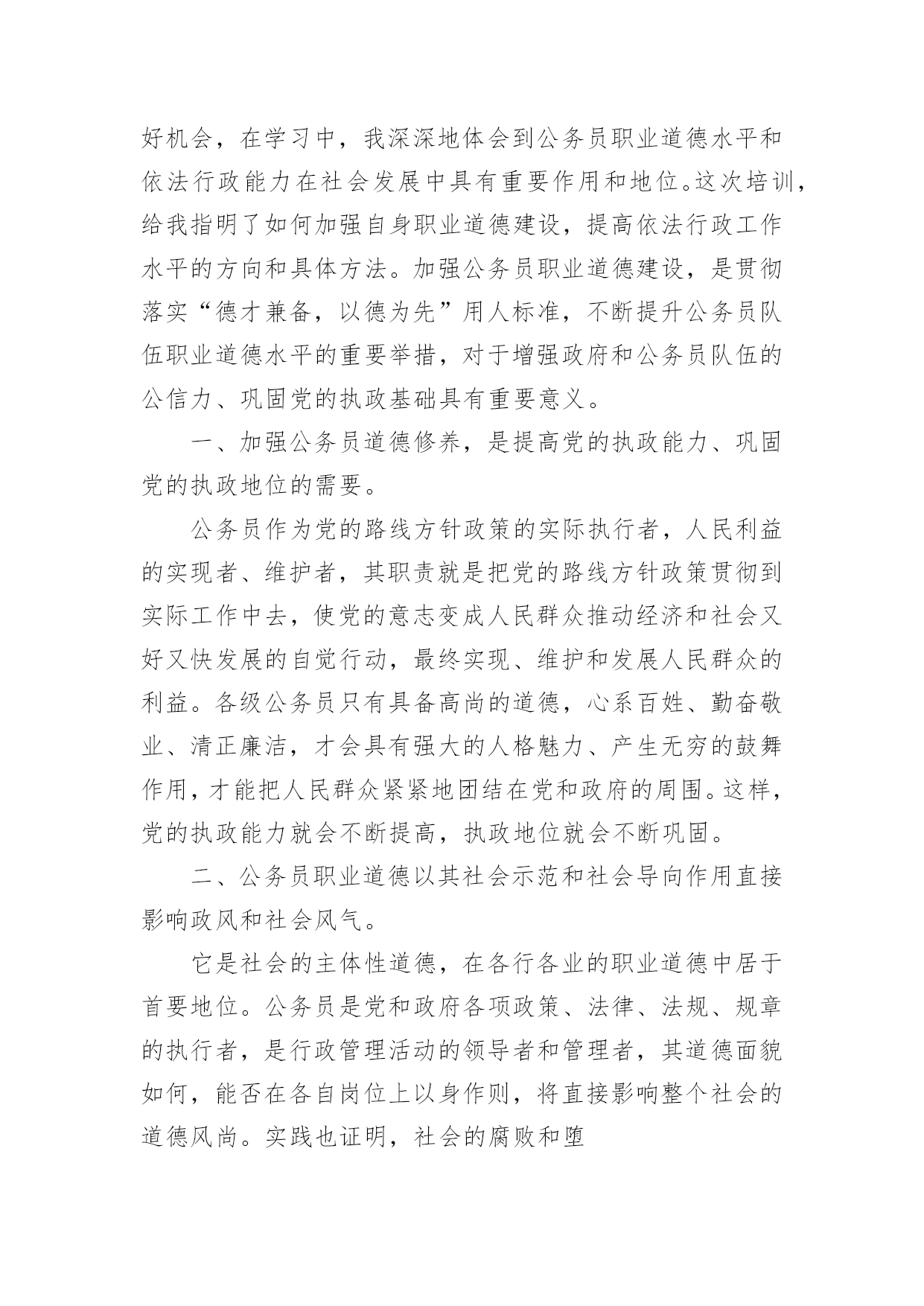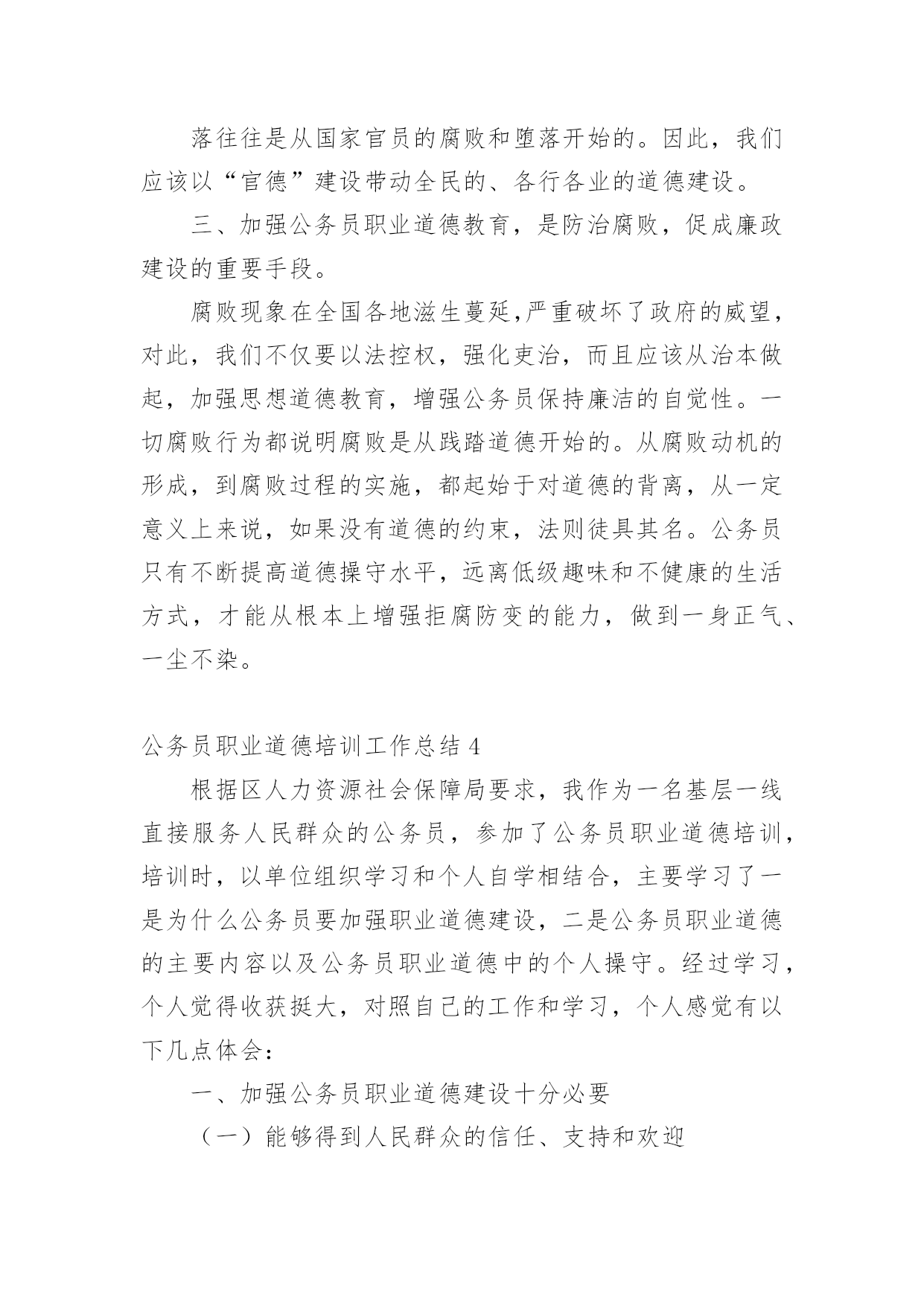 公务员职业道德培训工作总结总结是事后对某一时期、某一项目或某些工作进行回顾和分析,从而做出带有规律性的结论,写总结有利于我们学习和工作能力的提高,是时候写一份总结了。我们该怎么去写总结呢?下面是小编整理的公务员职业道德培训工作总结,供大家参考借鉴,希望可以帮助到有需要的朋友。公务员职业道德培训工作总结1市爱卫办开展按照市人事局和公务员局《关于对全市行政机关公务员开展职业道德教育培训情况考试考核的通知》精神,我办高度重视,认真组织学习培训。现将培训总结如下:一、抓好培训学习我办积极召开全体干部会议,由党组书记组织学习《关于印发在全市行政机关公务员中开展以责随职走心随职走为主题的职业道德教育培训实施方案的通知》,要求全体职工认识到培训学习的重要性,结合实际工作主动学习,合理安排自学时间,要求每名同志在河南省公务员网络培训学院自学公务员职业道德教育培训等必修课程,要求每名同志的学分不得低于96学分。并在每周五下午集中学习《加强公务员职业道德建设读本》在学习过程中互相学习,互相帮助,真正提高身服务素质和工作能力,做一名合格的公务员。二、组织在线考试我办指定一名工作人员专门负责此次培训考试工作,按照《公务员职业道德》培训考试时间,积极督促机关公务员在规定时间内完成在线考试,集中时间,集中人员,于1月22日已全面完成在线考试。三、培训取得效果通过精心组织安排学习,集中时间学习,考试,我办5名公务员在河南省公务员网络培训学院学分均超出96分,在《公务员职业道德》考试中平均成绩78分以上,合格率100%。公务员职业道德培训工作总结2所谓职业道德,即从事一定职业的人们在自己特定的工作中,思想和行为方面应该遵循的道德规范。各行各业都有其特定的职业道德,正如恩格斯所言:“实际上,每一个阶级,甚至每一个行业,都各有各的道德”。而国家公务员(以下简称公务员)由于其地位和作用以及职业活动的特殊性决定了不仅要模范遵守一般群众应该遵守的道德规范,而且还必须践行与其从事的工作性质密切相关的更高层次的职业道德规范。众所周知,公务员职业道德最基本的原则是全心全意为人民服务,由此,笔者认为其最主要的规范应该是“公”、“实’,、“廉”、“俭”。一、“公”即一心为公、公而忘私、公道正派。(一)一心为公。它既是公务员与国家和政府关系的本质体现,也是公务员思想、行为、作风等各方面的最主要的道德规范。国家公务员是中央和地方各级人民政府行使国家行政权力,执行国家公务,实施国家行政行为的主体,这个根本属性决定了公务员的职业行为必须无条件服从国家意志,处处考虑和维护国家的尊严和政府的声誉。具体地说就是必须坚持四项基本原则,坚持改革开放,坚决贯彻执行党的路线、方针、政策‘集中表现为坚持’‘一个中心,两个基本点”以及提出的政治方向、政治立场、政治观点、政治纪律、政治鉴别和政治敏锐性等行为规范。(二)公而忘私。公务员要真正做到“一心为公”必须正确处理好国家利益、人民利益和个人利益之间的关系。因为公务员在工作和生活过程中,必然会面对着利益的取舍问题,尤其是当国家利益或人民利益与个人利益之间发生矛盾的时候,更加不可避免的迫使其作出抉择。作为一切言行都以合乎广大人民群众的最大利益为最高目标的公务员,个人利益必须眼从于人民利益,只有在保障人民利益的前提下,才能实现个人利益与人民利益的统一。这是公务员职业道德规范中处理利益取舍问题时最起码、最经常的要求。而在个人利益和人民利益发生冲突的情况下,自觉地无条件地服从于人民利益,在人民需要的时候,为了人民的利益勇于牺牲个人利益甚至自己的生命,则是公务员职业道德原则最重要的归宿,也是衡量一个公务员职业道德水平高低的尺度。在这方面,我们有许多榜样,60年代的焦裕禄和90年代的孔繁森就是典范。(三)公道正派。公务员的职业性质决定了不管他头上有没有“帽”,手中总会有点“权”。要使公务员能够正确行使权力,切实保证全心全意为人民服务的宗旨不变,就必须具备执政为民、用权为公、奉法1}理、正直无私、公事公办等职业道德规范。也只有这样才能真正做到:处理问题,秉公办事;解决问题,主持公道;遇到干扰,铁面无私。从而杜绝‘“不给好处不办事,给了好处乱办事”等腐败现象。二、“实”即实事求是,一切从实际出发;说实话,办实事,做老实人。(一)实事求是一切从实际出发。这是公务员在行使行政管理权力,执行公务时必须遵循的又一主要的职业道德行为规范。邓小平同志指出:“实事求是,是无产阶级世界观的基础,是马克思主义的思想基础。过去我们搞革命所取得的一切胜利,是靠实事求是,现在我们要实现四个现代化,同样要靠实事求是”。公务员肩负着上传下达以及管理政务的重任,要使政策“从群众中来又到群众中去”真正反映人民的意志,首要的是一切从实际出发,忠于事实,尊重客观规律。只有这样才能从中得出事物中固有的而
