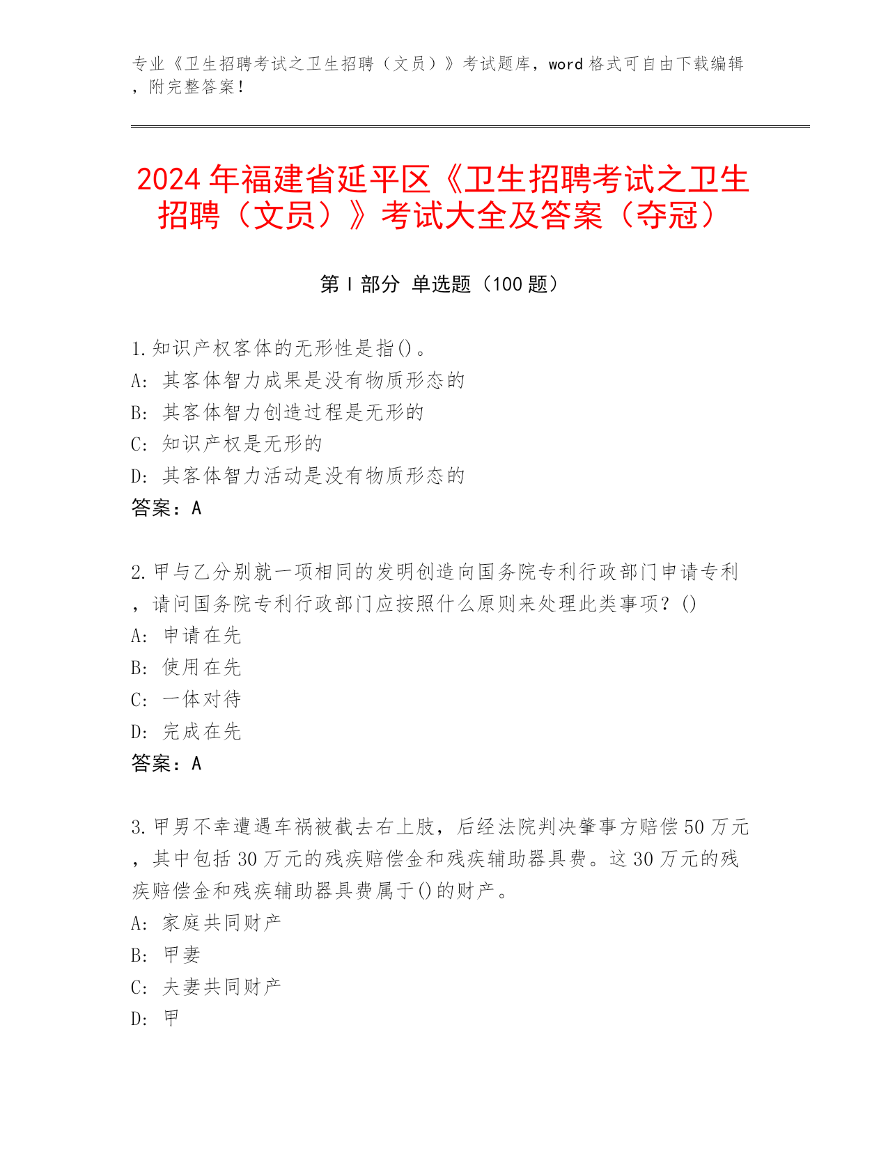 2024年福建省延平区《卫生招聘考试之卫生招聘(文员)》考试大全及答案(夺冠)