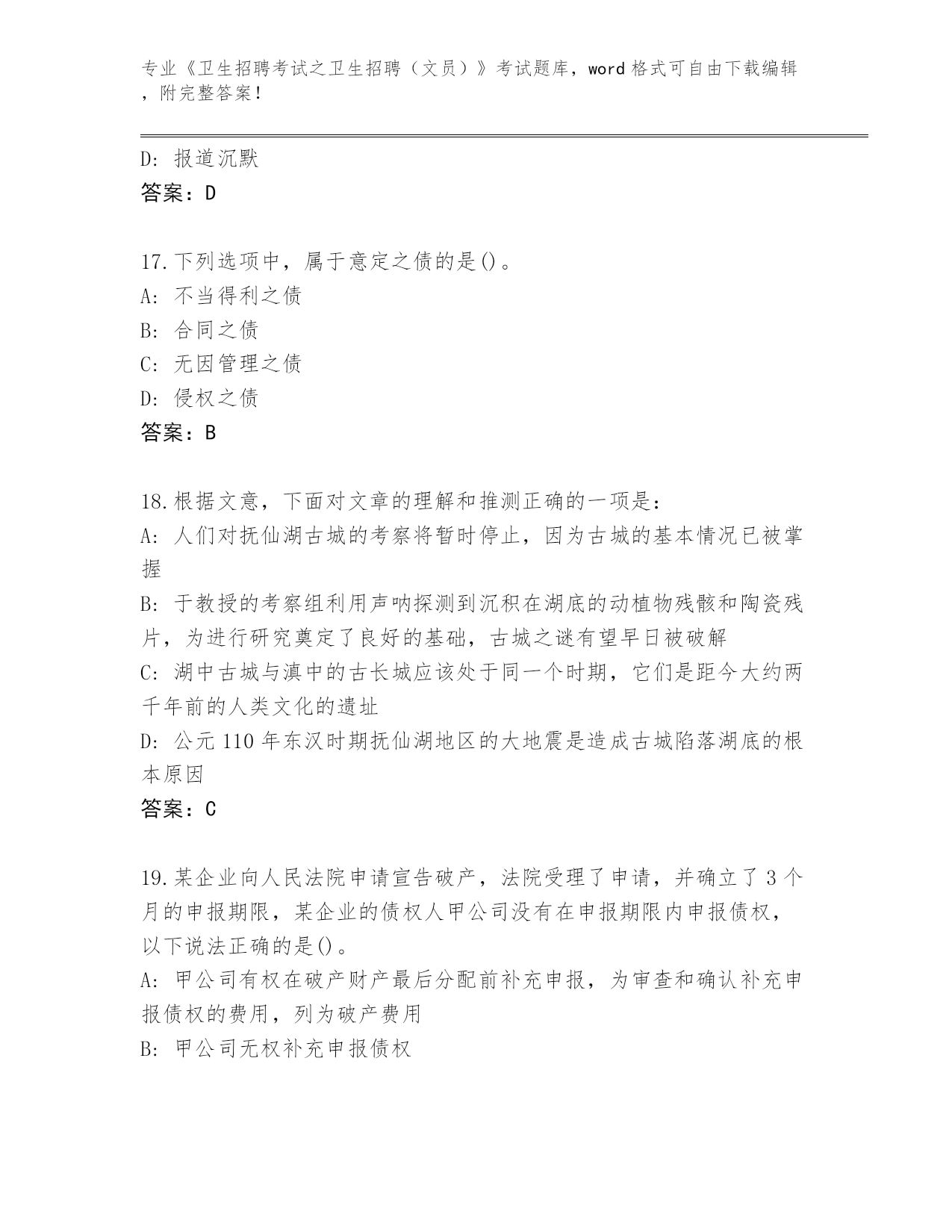 广东省《卫生招聘考试之卫生招聘(文员)》考试大全【夺冠】