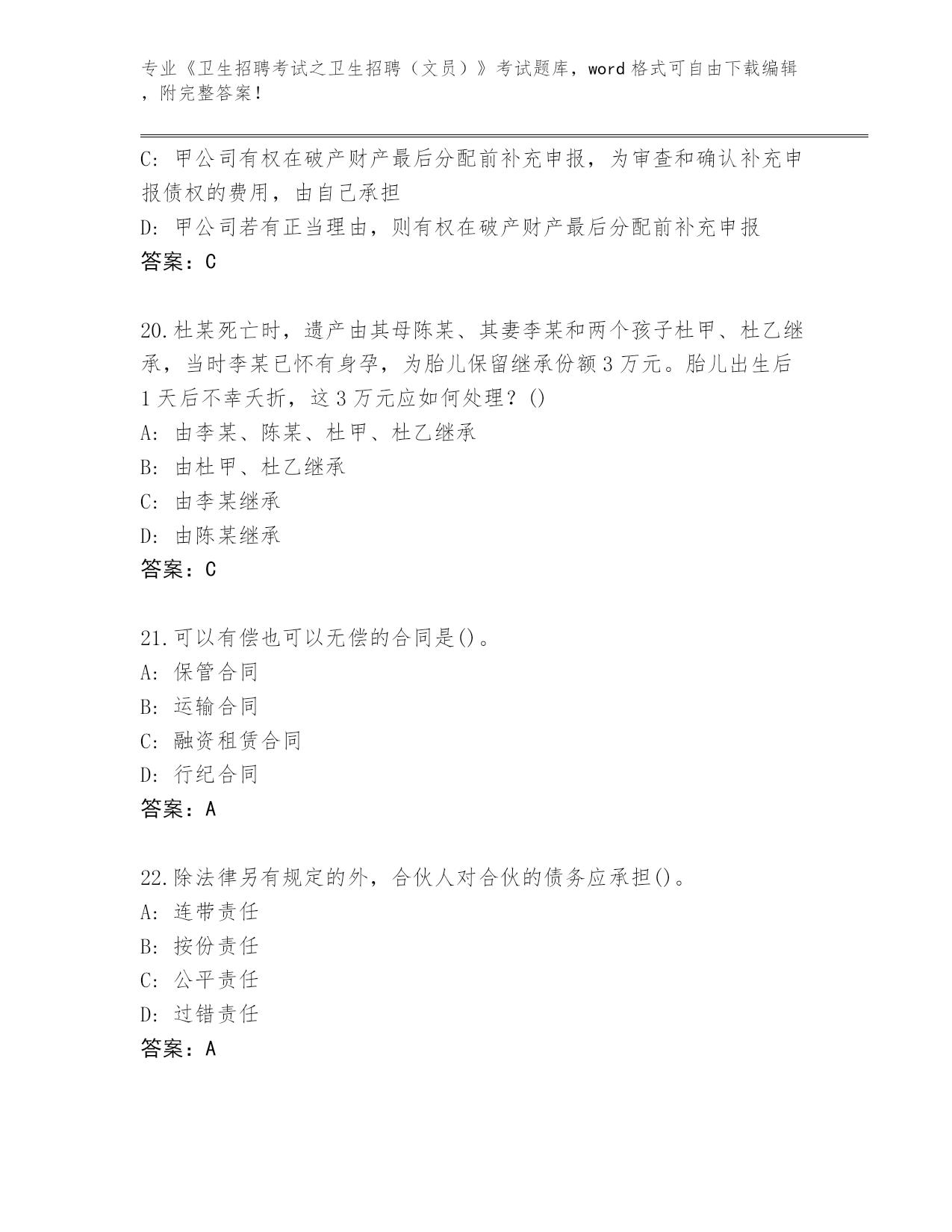 福建省《卫生招聘考试之卫生招聘(文员)》考试大全含答案(培优)