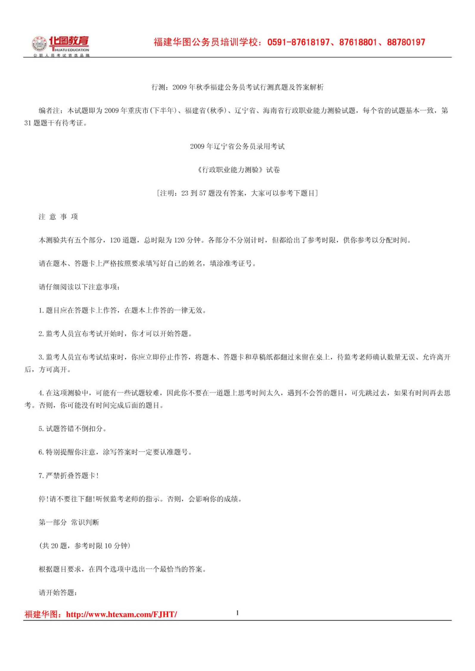 行测:2009年秋季福建公务员考试行测真题及答案解析.pdf