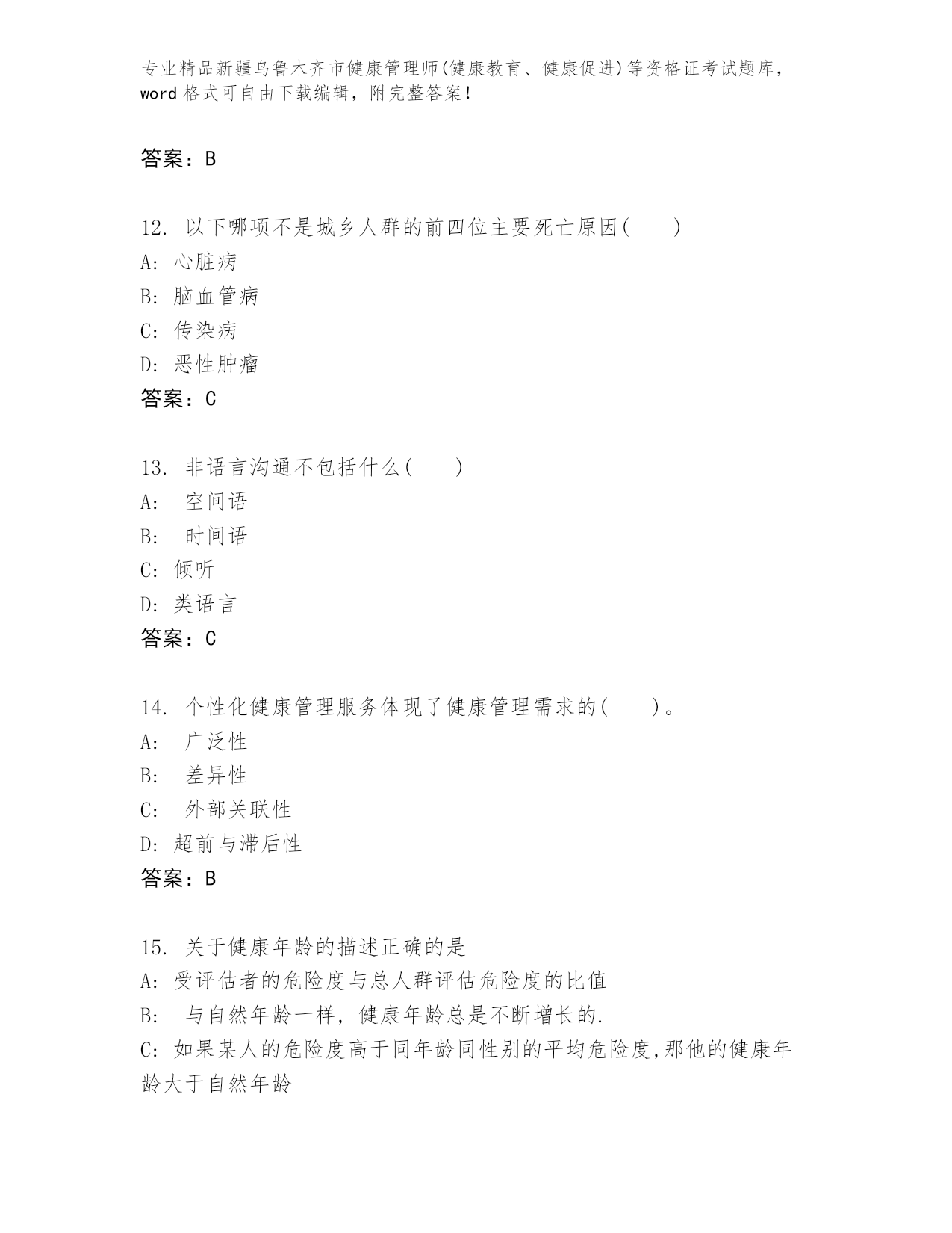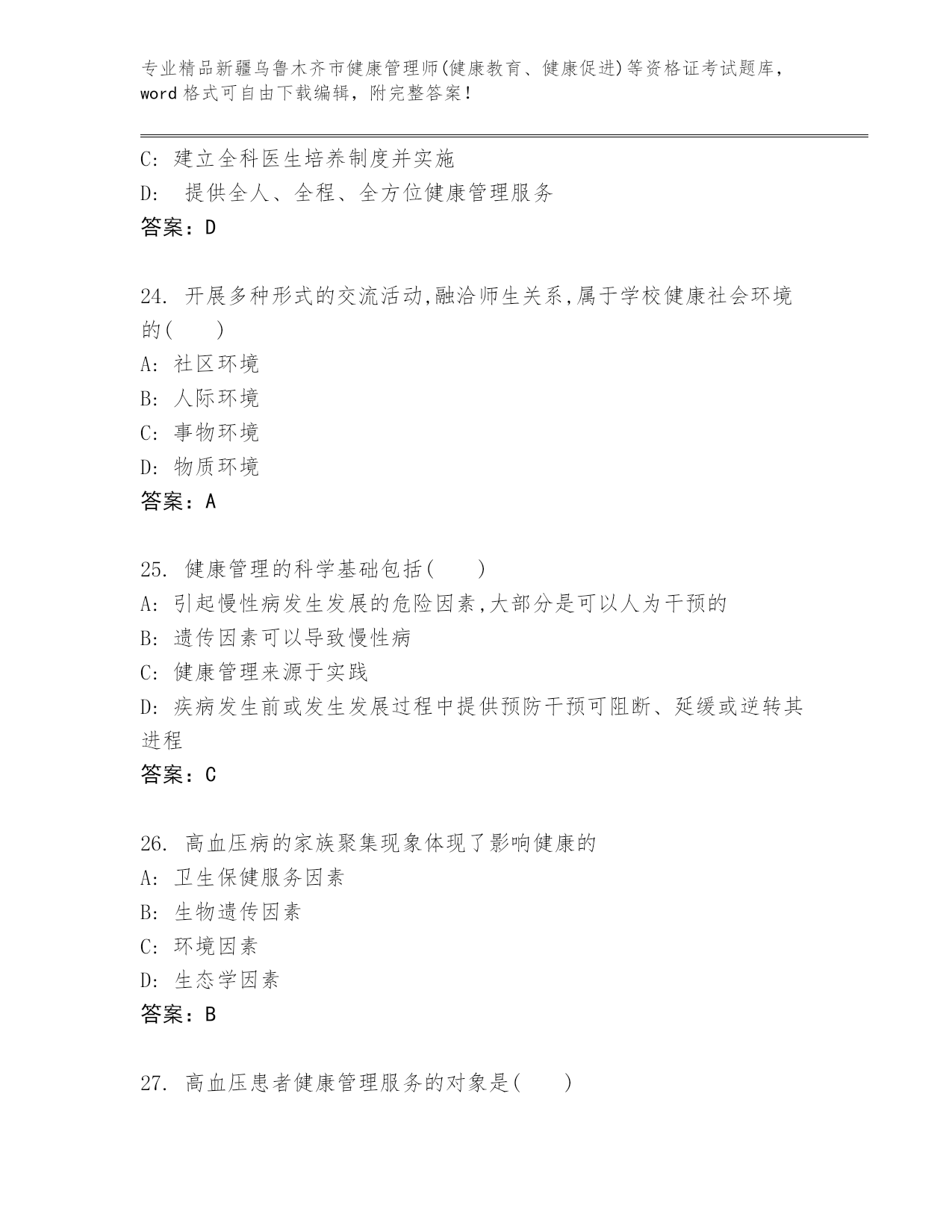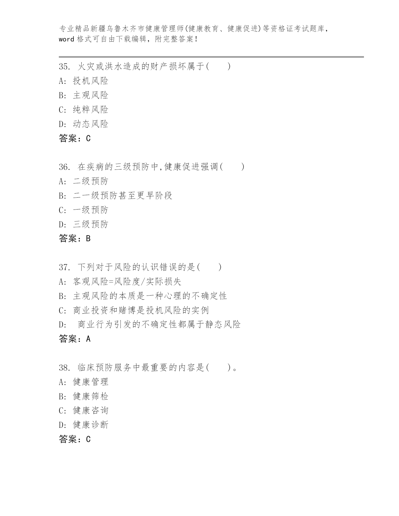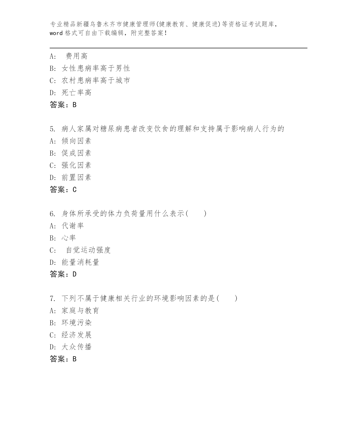 新疆乌鲁木齐市健康管理师(健康教育、健康促进)等资格证考试题库(易错题)