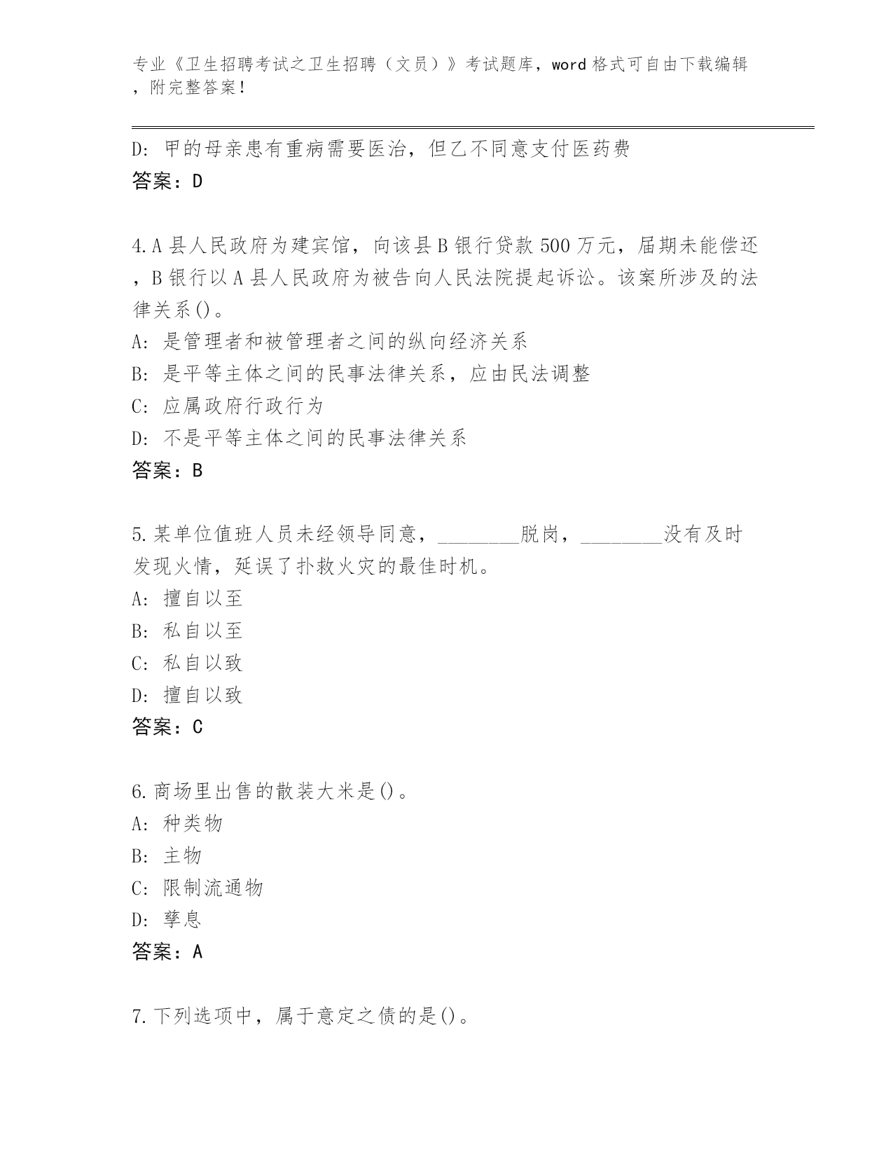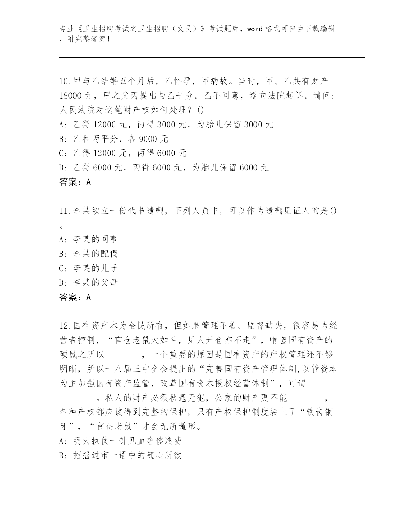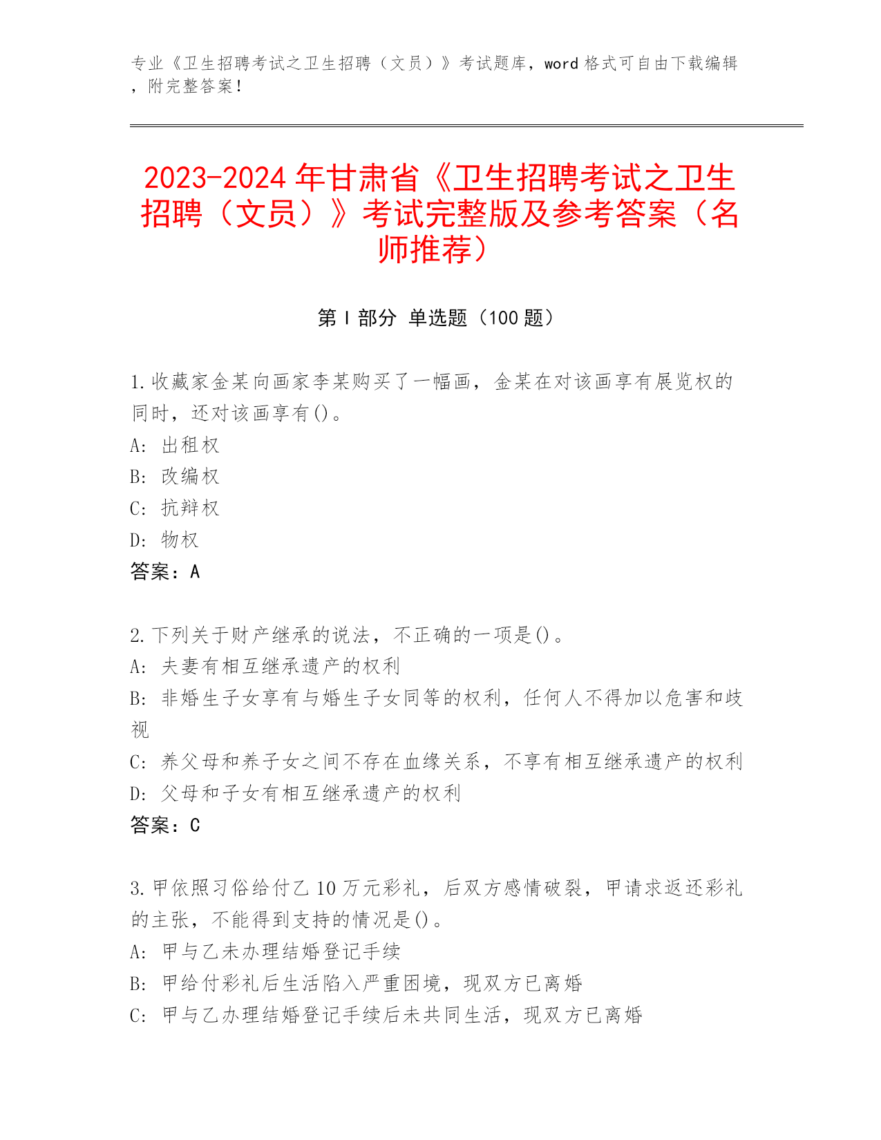 2023-2024年甘肃省《卫生招聘考试之卫生招聘(文员)》考试完整版及参考答案(名师推荐)