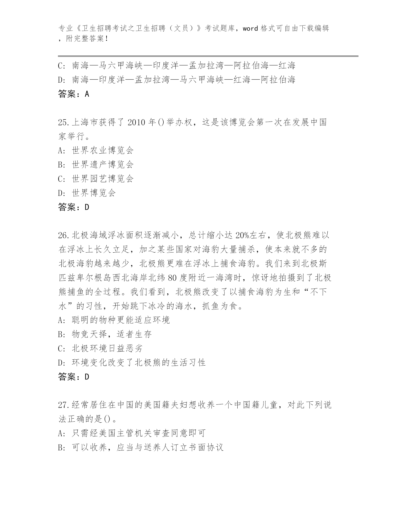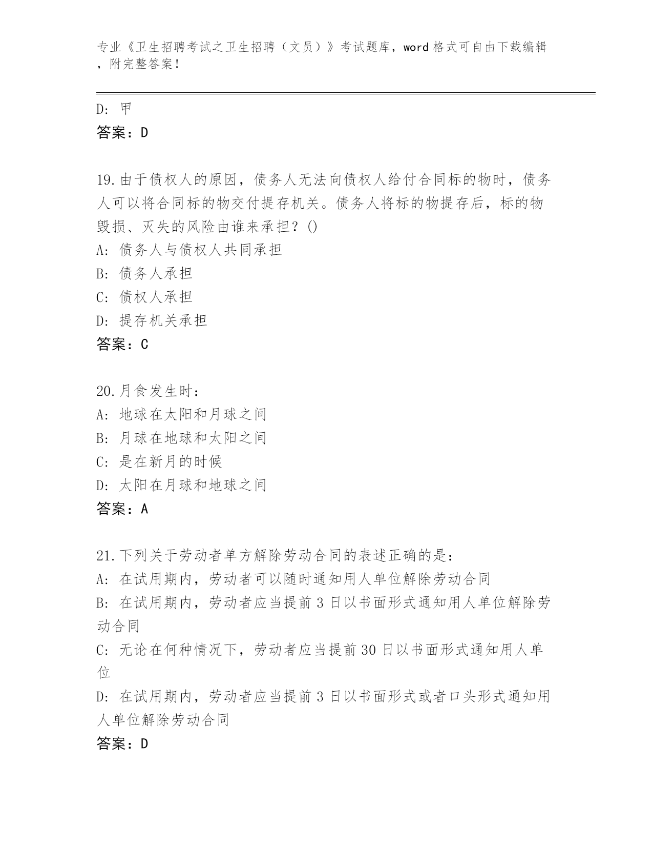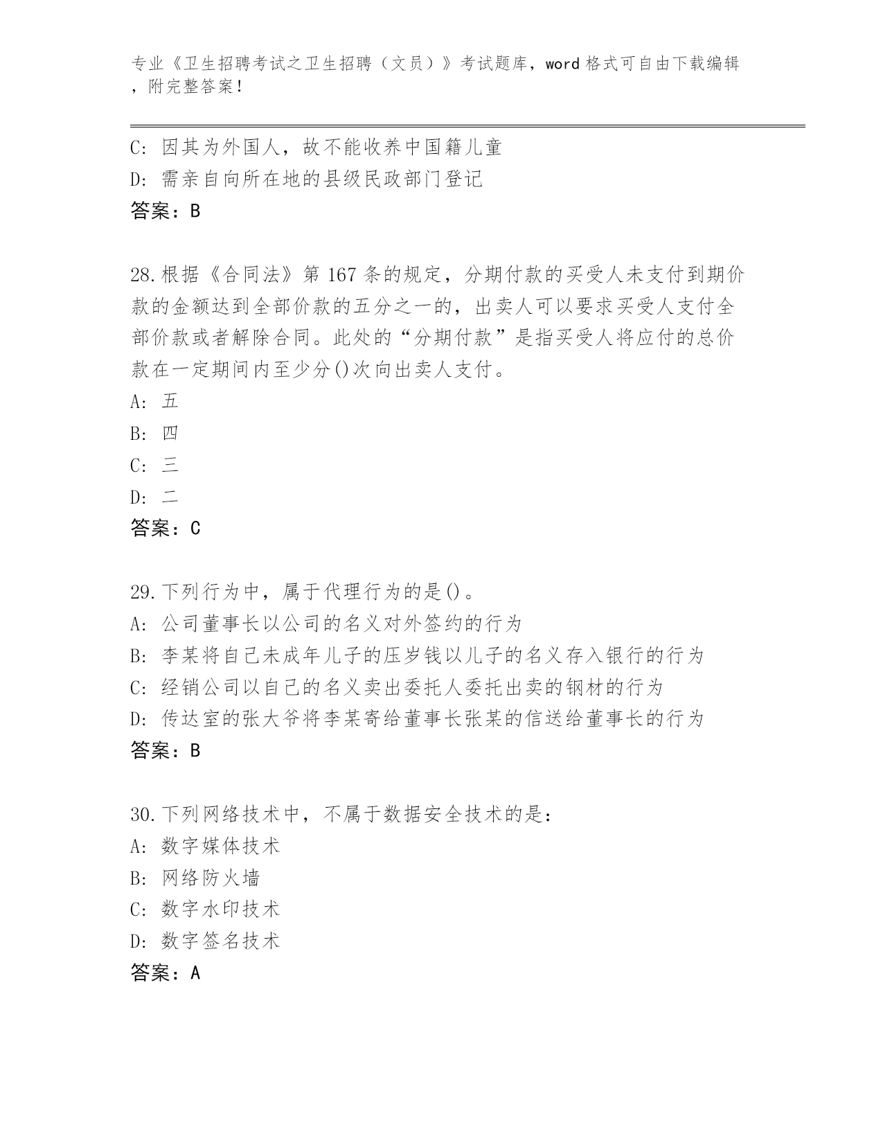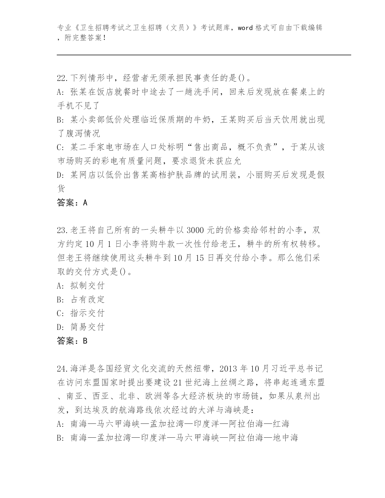 2023-2024年甘肃省《卫生招聘考试之卫生招聘(文员)》考试完整版及参考答案(名师推荐)