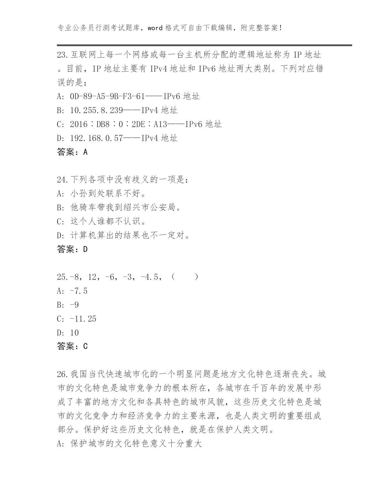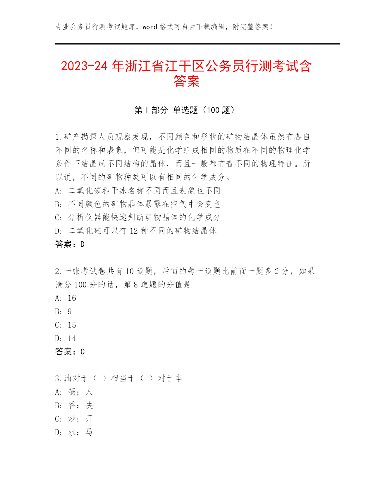 2023-24年浙江省江干区公务员行测考试含答案.docx