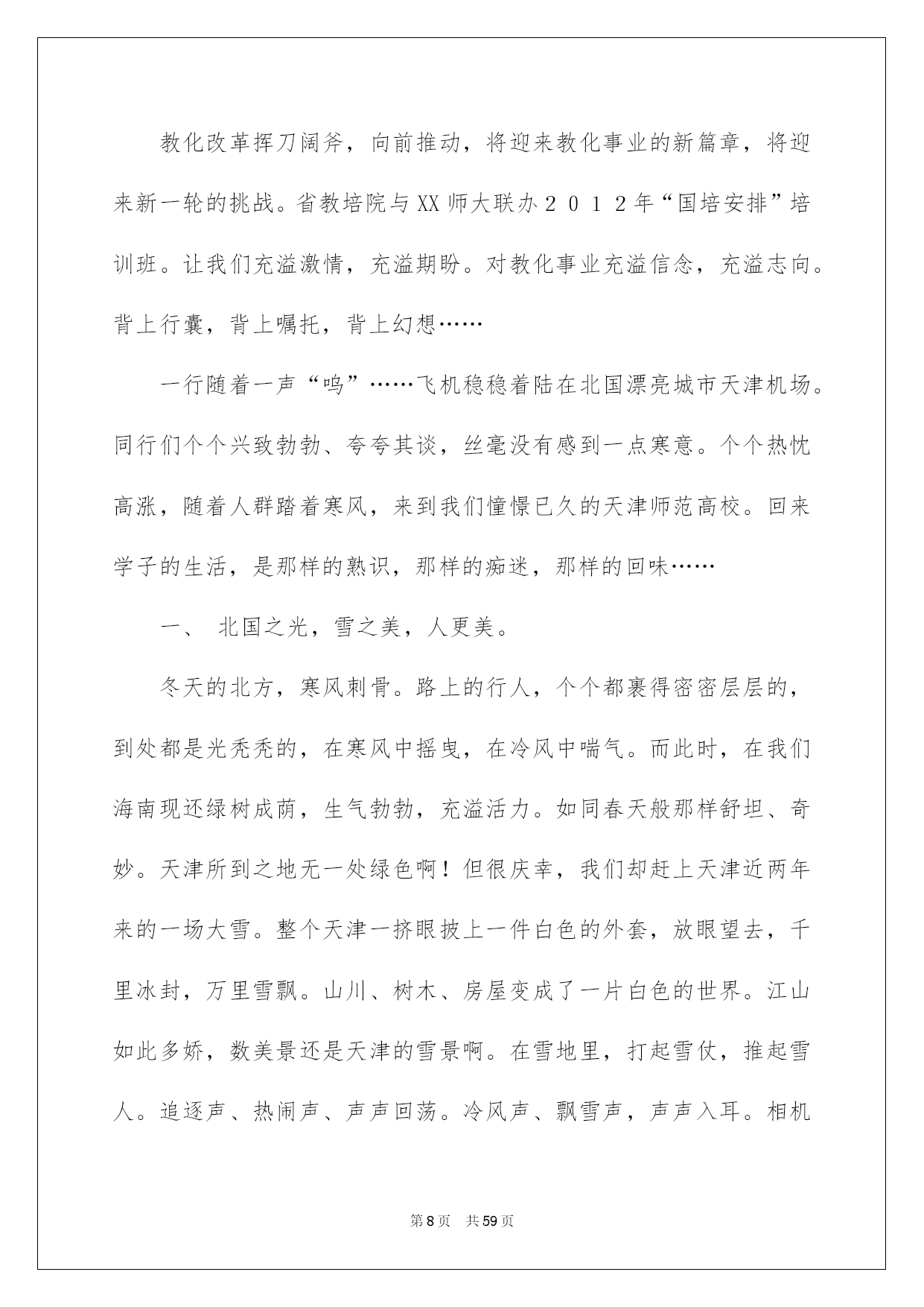 第PAGE\*Arabic\*MERGEFORMAT59页共NUMPAGES\*Arabic\*MERGEFORMAT59页第PAGE\*MERGEFORMAT59页共NUMPAGES\*MERGEFORMAT59页第PAGE\*MERGEFORMAT59页共NUMPAGES\*MERGEFORMAT59页第PAGE\*MERGEFORMAT59页共NUMPAGES\*MERGEFORMAT59页第PAGE\*MERGEFORMAT59页共NUMPAGES\*MERGEFORMAT59页第PAGE\*MERGEFORMAT59页共NUMPAGES\*MERGEFORMAT59页第PAGE\*MERGEFORMAT59页共NUMPAGES\*MERGEFORMAT59页第PAGE\*MERGEFORMAT59页共NUMPAGES\*MERGEFORMAT59页第PAGE\*MERGEFORMAT59页共NUMPAGES\*MERGEFORMAT59页第PAGE\*MERGEFORMAT59页共NUMPAGES\*MERGEFORMAT59页第PAGE\*MERGEFORMAT59页共NUMPAGES\*MERGEFORMAT59页2022培训心得体会培训心得体会当我们备受启迪时,可以通过写心得体会的方式将其记录下来,它可以帮助我们了解自己的这段时间的学习、工作生活状态。一起来学习心得体会是如何写的吧,以下是我为大家整理的培训心得体会,供大家参考借鉴,希望可以帮助到有须要的挚友。培训心得体会1在凯里培训两天,听了贲有友林、赵震、刘劲苓三位特级老师的六节示范课及讲座,我学到了很多。其中,贲友林老师的《十年反思的力气》讲座,使我受到了很深的启发。贲老师的诞生和我们一样,同样是农村的孩子,通过努力读书,考上师范,在村小教过四年书。与我们不同的是,他能够十年如一日地坚持写反思,擅长思索并总结,因此走上名师的道路。贲老师就是把上课之余自己的想法写出来。如他在教学四年级学生相识角时,奇妙地引导学生相识角。平常老师们都运用两根小棒来作一个活动角,来演示角的大小,即角的大小与两条边叉开的大小有关。但学生在相识角的时候有一个难点,就是角的大小与两条边所画的长短无关,怎样解决这个问题呢?贲老师在一次看电视机的时候想到了一个方法,利用电视的天线作了一个活动角,这样它即保留了原来活动角的功能,在天线一拉出来,推动去的过程中,能直观地使学生明白角的大小与两条边的长度无关。在教二十年前的学生相识播种机的作业宽度时,贲老师想到了在黑板上演示的方法:在黑板上用粉笔涂了一大片,把这一大片被涂的黑板当作一块要播种的地,拿黑板擦当播种机,在黑板上擦出一个长方形,用粉笔把长方形描出来,并标明宽1.2米,长200米,怎么求播种机播种的面积,什么叫作业块,学生一看立刻就明白了。一节课是否具有现代的理论,并不是由我们的教学媒来确定,而是由我们的教学理念来确定,不用课件照样可以上好公开课。课堂肯定要从学生的角度动身,探讨解决学生的问题,让学生在他原有的基础上得到发展,课堂教学应当以学生的学习为重心。一堂课不肯定根据老师的教学设计完成教学任务,只要上课能够解决学生不理解的问题并使学生弄明白,这样的理论就是现代的理念。贲老师二十年前使的教学手段到今日来演示,仍旧不过时。粉笔+黑板擦同样可以体现现代的教学理念——直观教学。用一筒卷纸,就可以形象地表示压路机的轮子,打开卷纸,同样可以表示圆柱体的表面,解决表面积问题??用这些简洁而又好用的教具向学生出示,让学生觉得,数学其实很好玩,数学其实就在我们身边,我们学习数学就须要我们用数学的眼光去谛视万物。文字是记忆的保险柜。写文章就是写教学时出现的问题,我们应当在实践中发觉别人没有发觉的问题并延着这些问题解决这些问题。把发觉和解决的过程用文字记录下来,便成为了文章。贲老师的第一篇文章就他在教学四年级数学时出现问题。十年以来,贲老师每天都坚持写教学反思。最初他在笔记本上记录,后来在笔记本电脑中写。20xx年他们出版了他的第一本书《此岸与彼岸》。这本书写道:“从20xx年x月x日起先,我每一在上完课后就写。每次,或几十字或几百字或几千字,无论繁忙与悠然、乏累与轻松。这是我给自己布置的作业。”这本书是他对教学手记的凝炼与提升。这些文字是不折不扣真实记录与切肤之感。十多年来,他每天记录、思索,因此而成为名师。其实,我们每位老师都在反思着,更多的表现为行动中的反思,或许,行动后的反思,不是持续、系统,间或为之。我们经常缺失的是:反思,没有留下文字的痕迹。我们想过了就过了,时间长了就忘了。俗话说“好