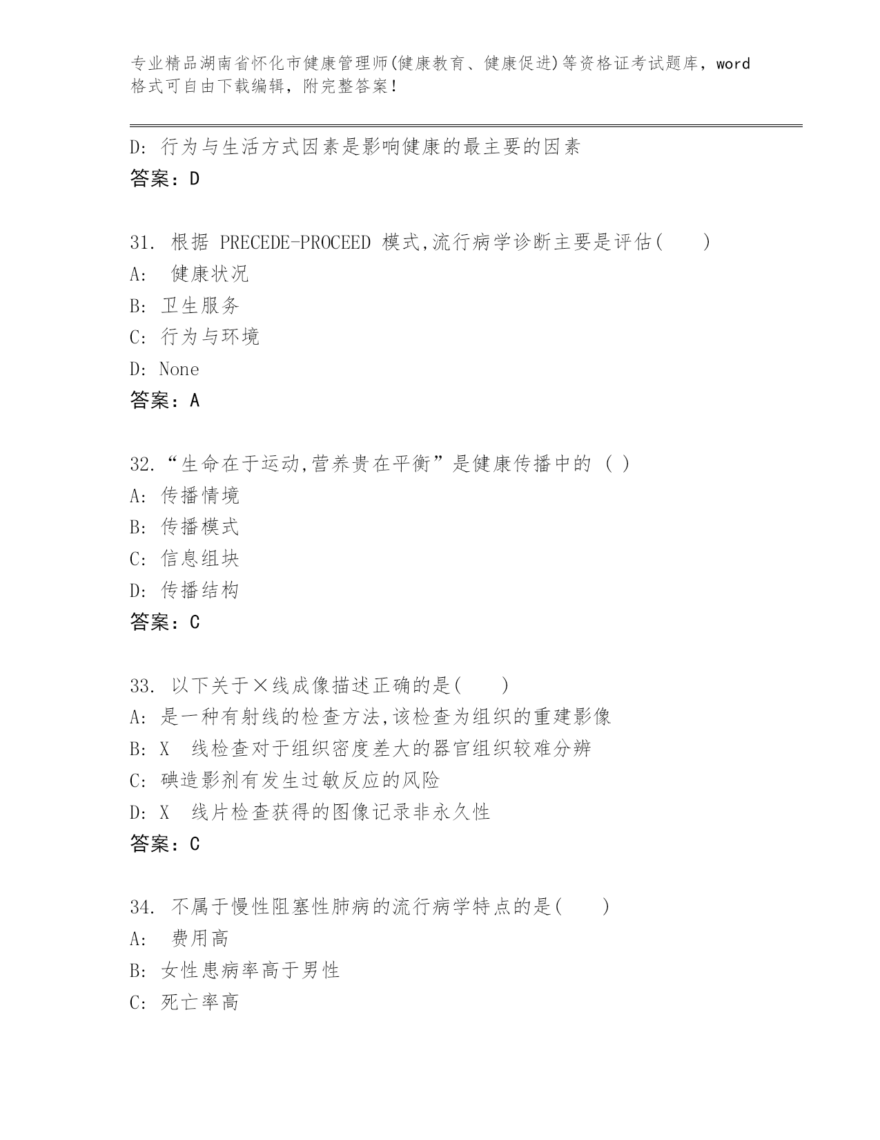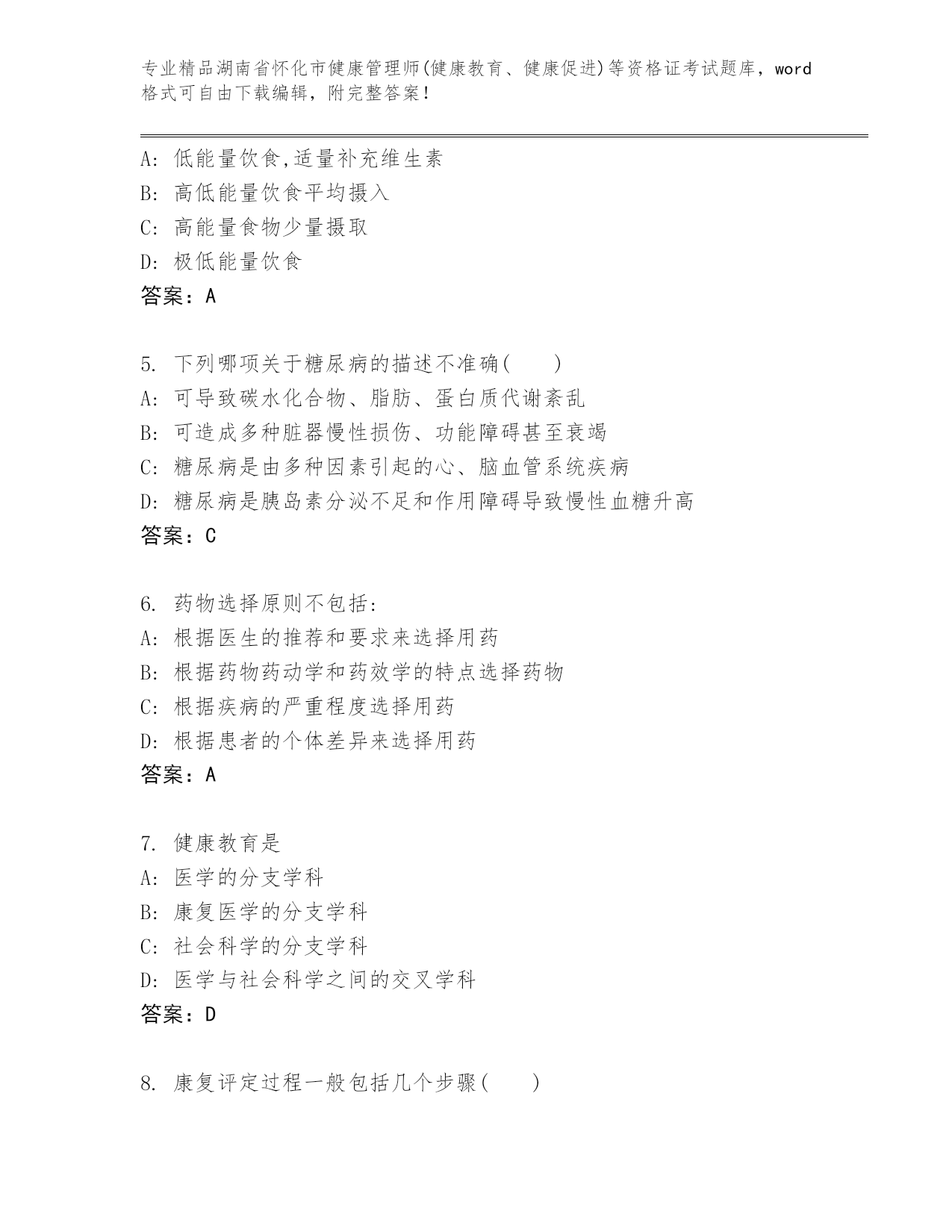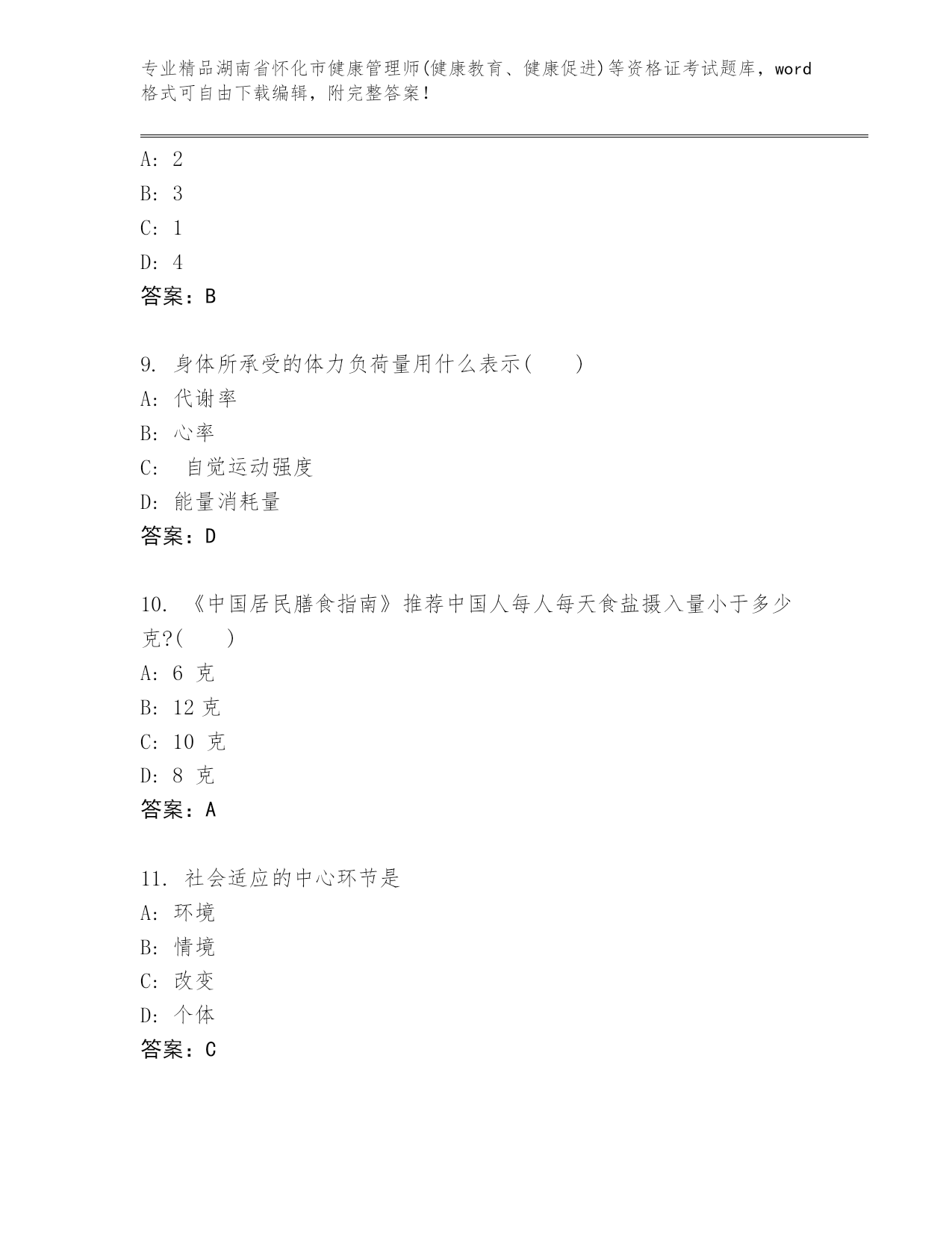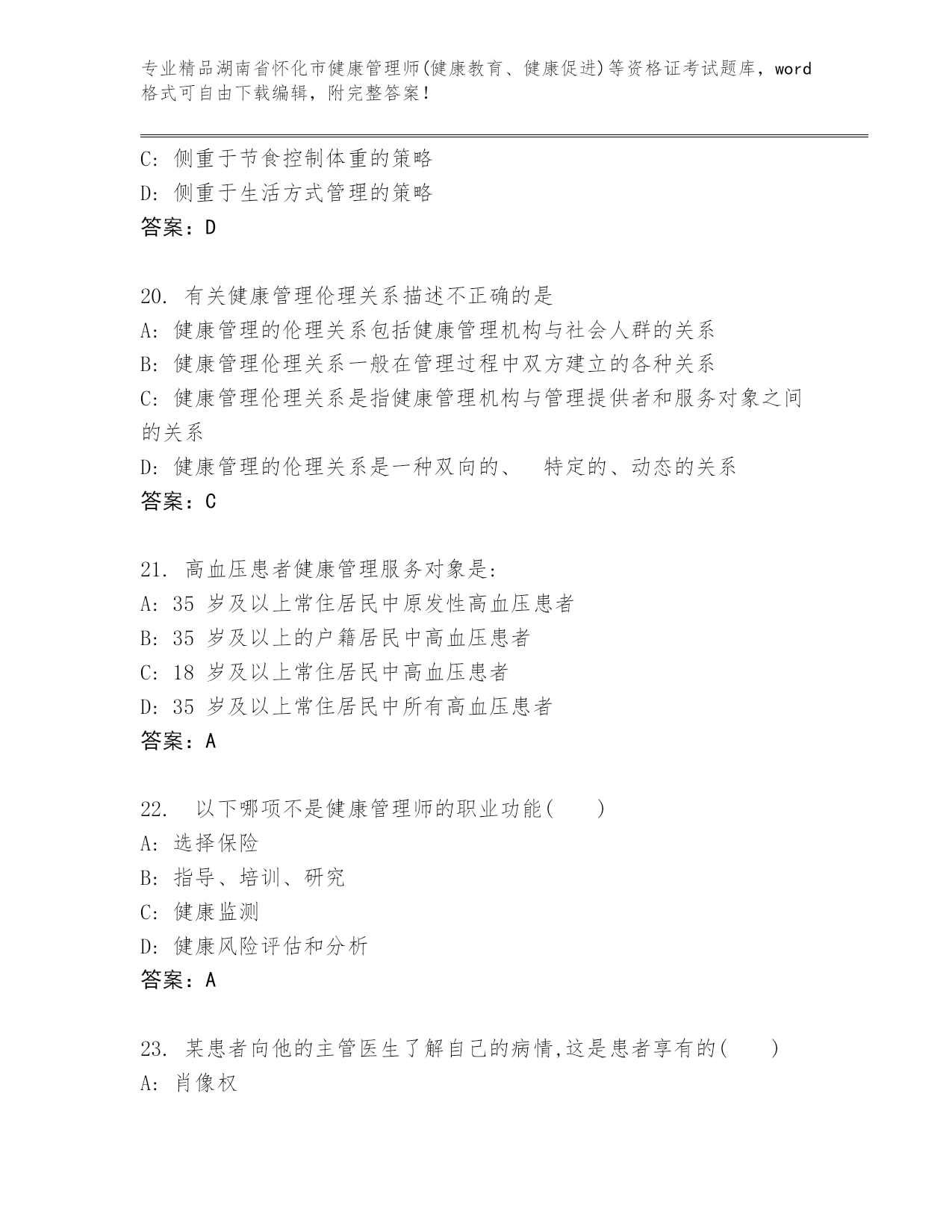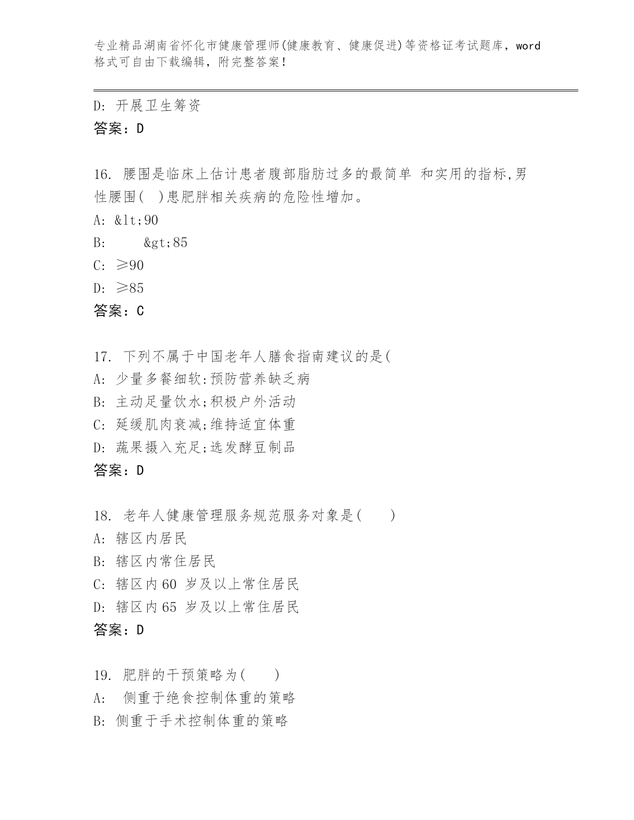 内部培训湖南省怀化市健康管理师(健康教育、健康促进)等资格证考试大全(典优).docx