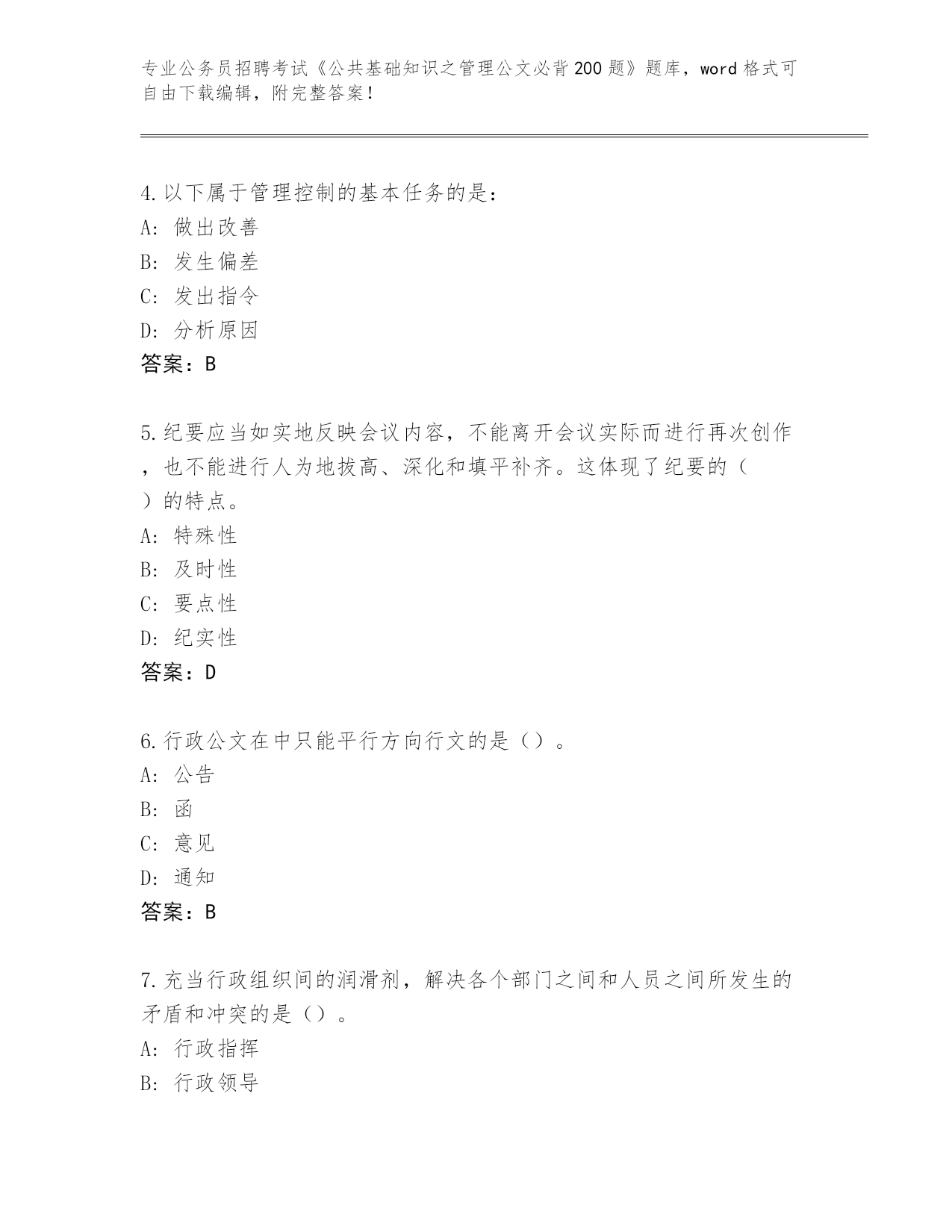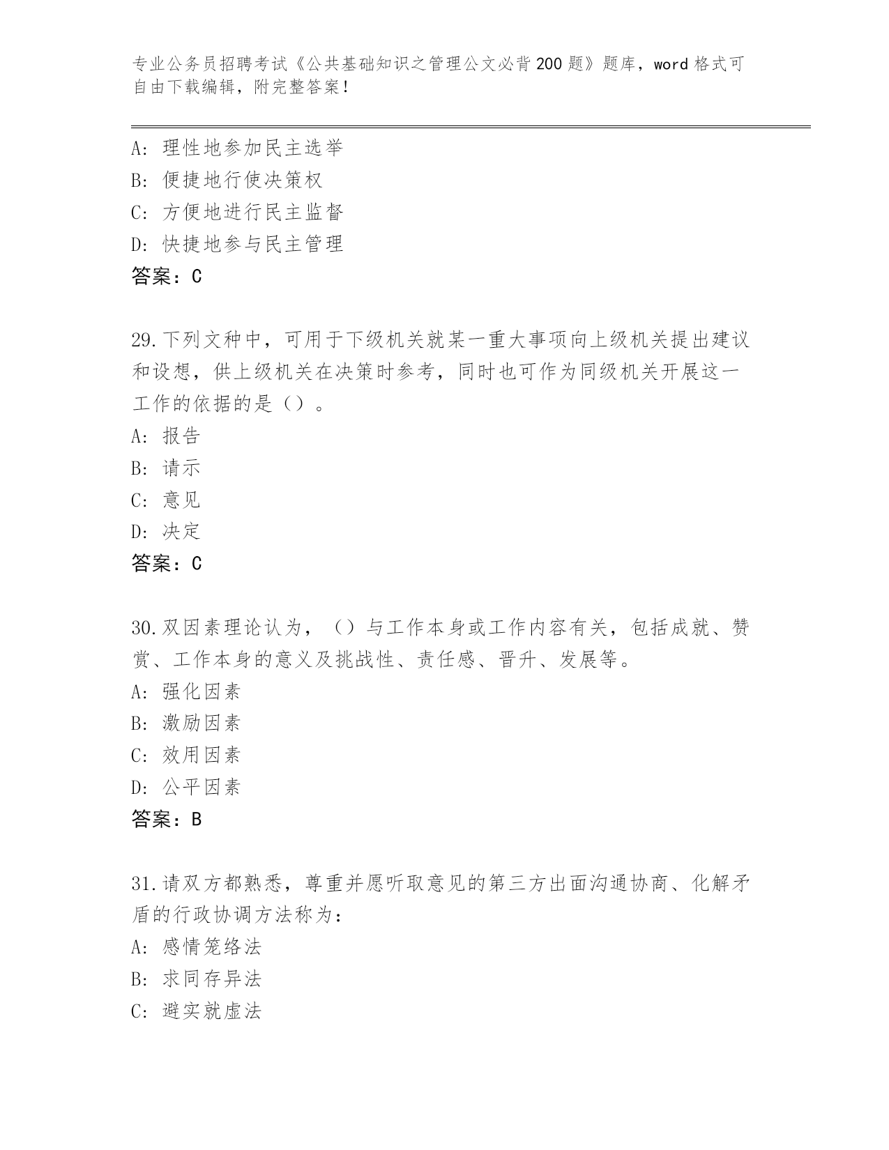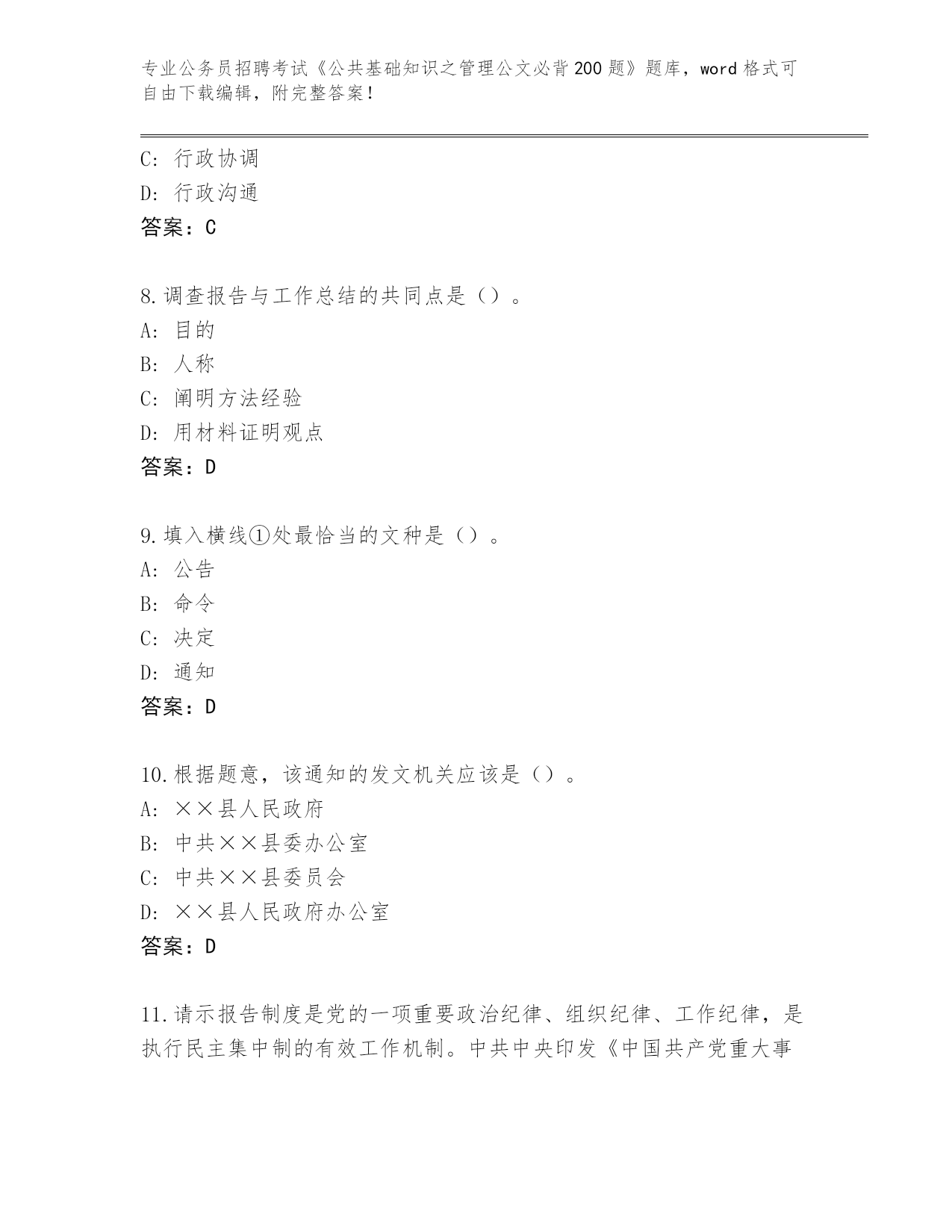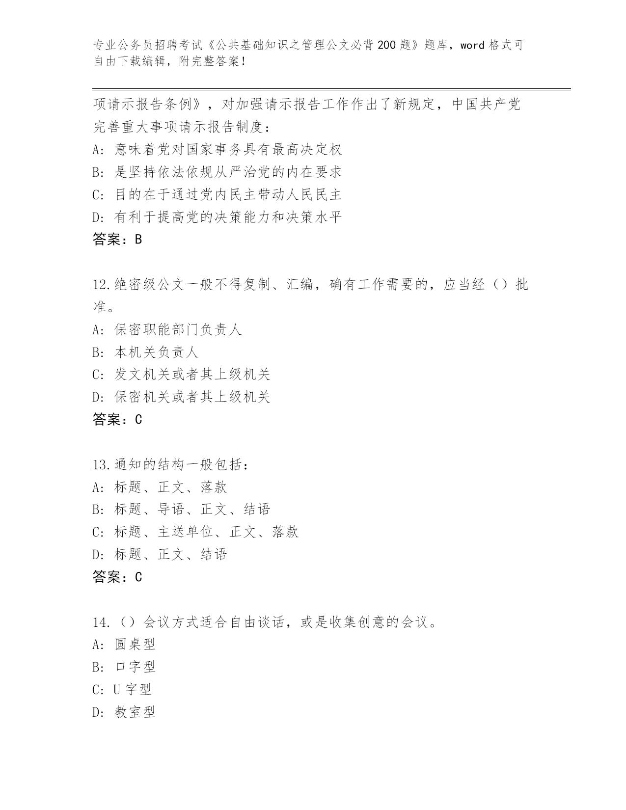 历年陕西省吴堡县公务员招聘考试《公共基础知识之管理公文必背200题》大全及答案【新】.docx