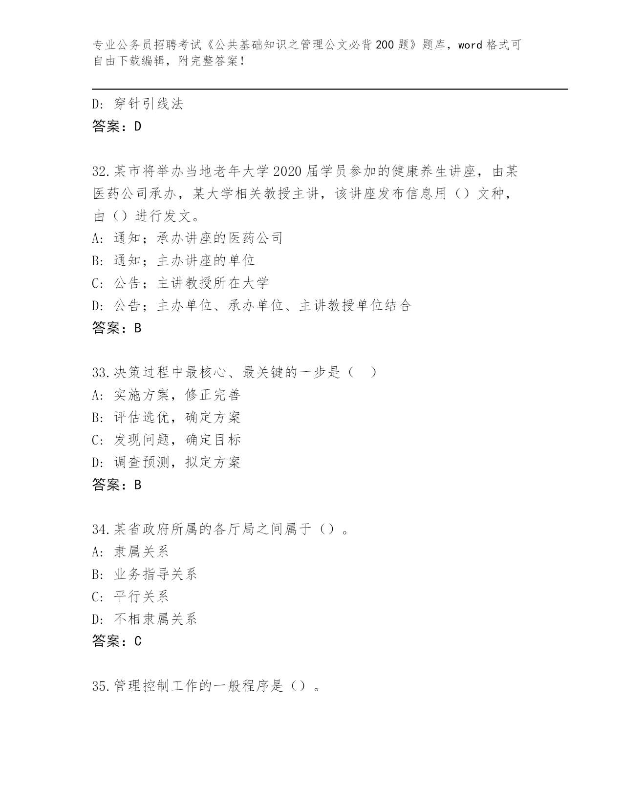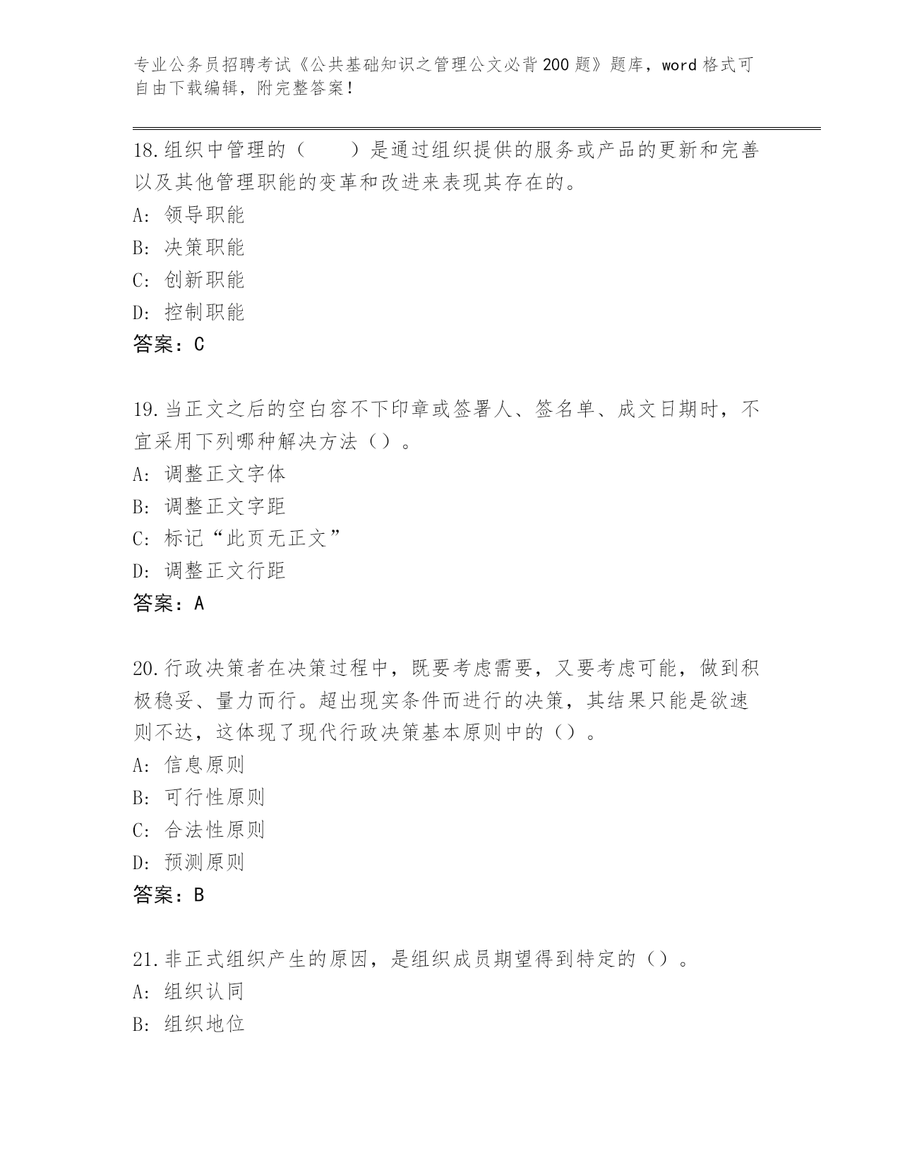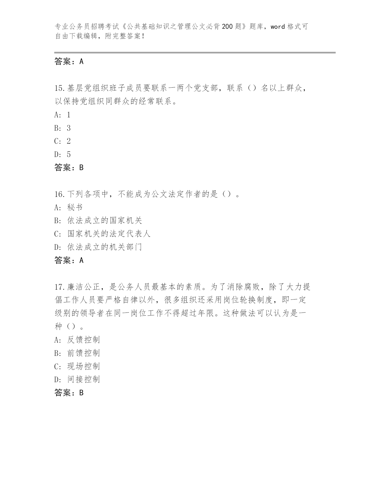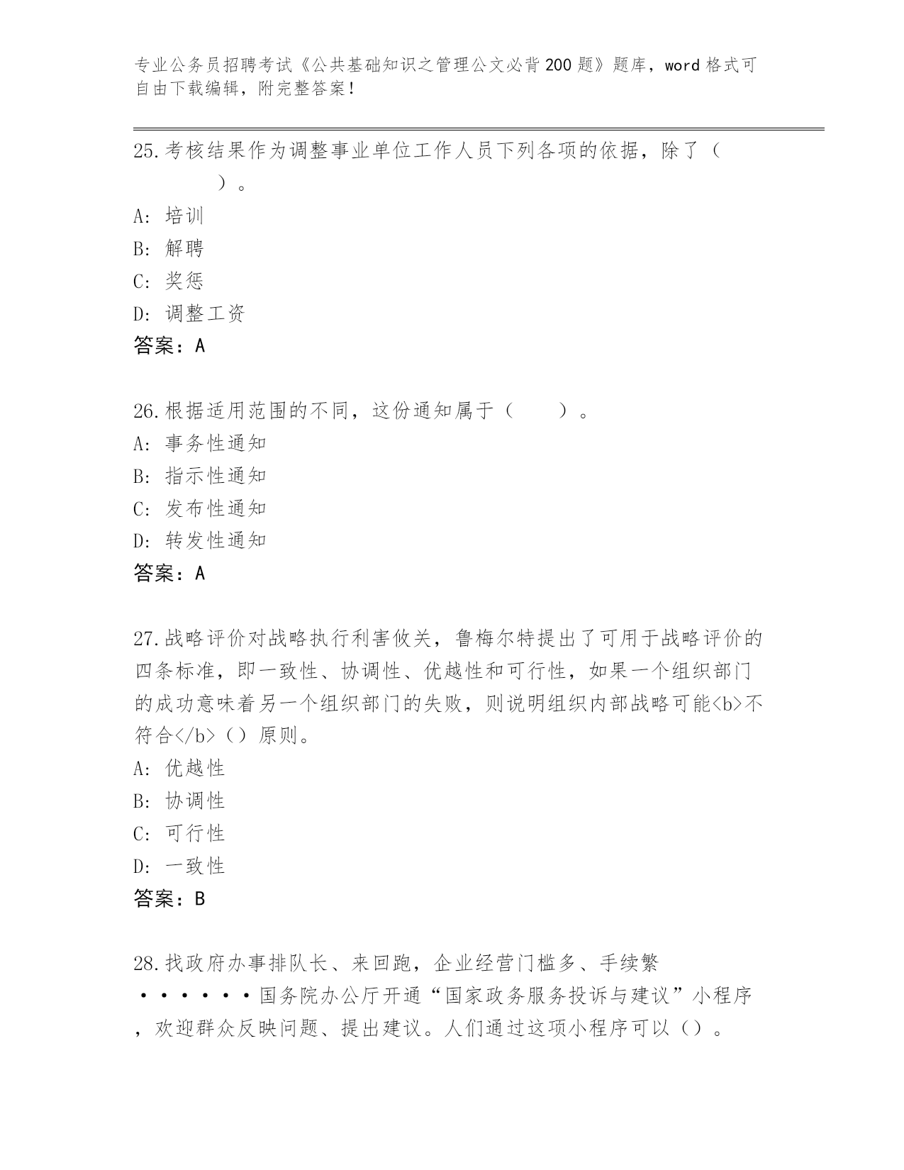 历年陕西省吴堡县公务员招聘考试《公共基础知识之管理公文必背200题》大全及答案【新】.docx