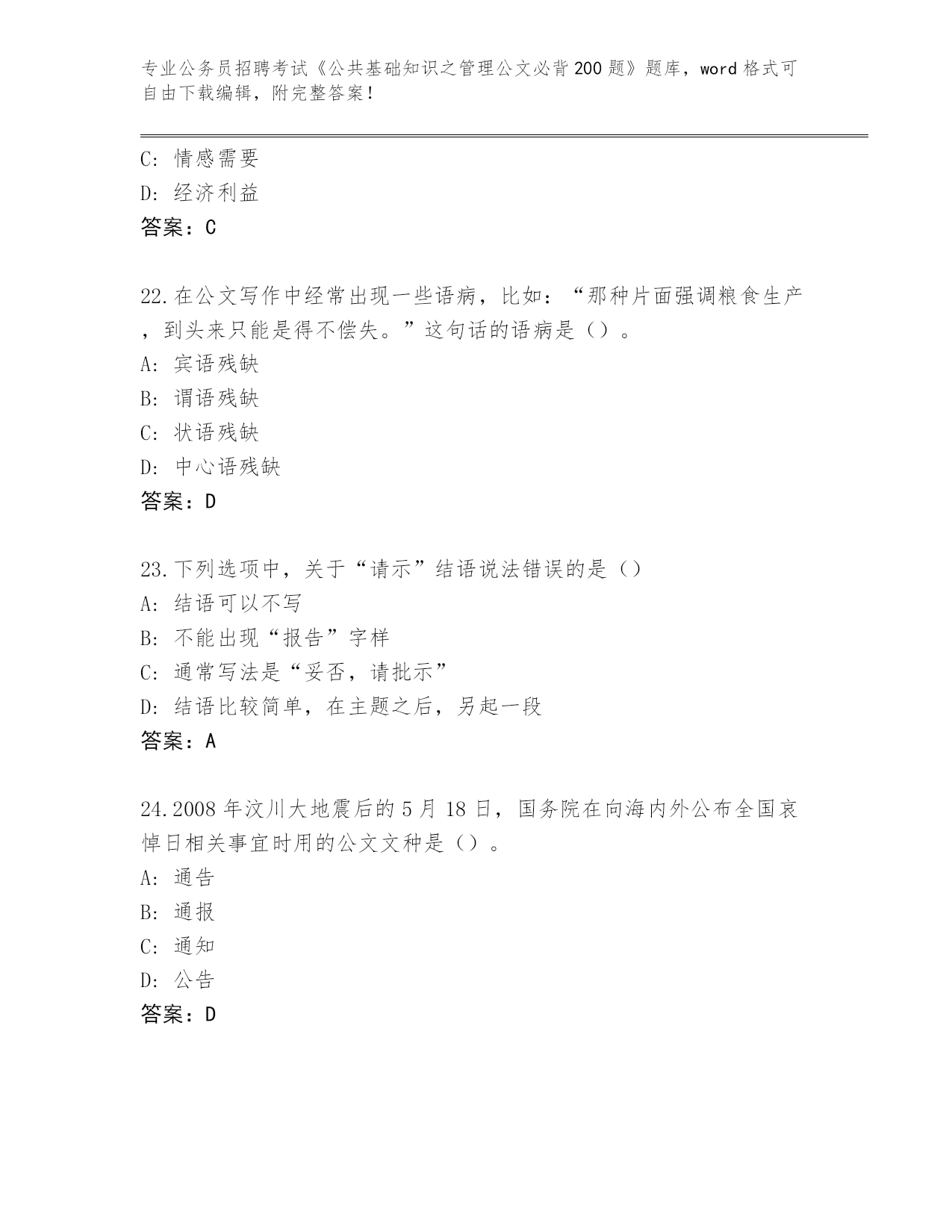 历年陕西省吴堡县公务员招聘考试《公共基础知识之管理公文必背200题》大全及答案【新】