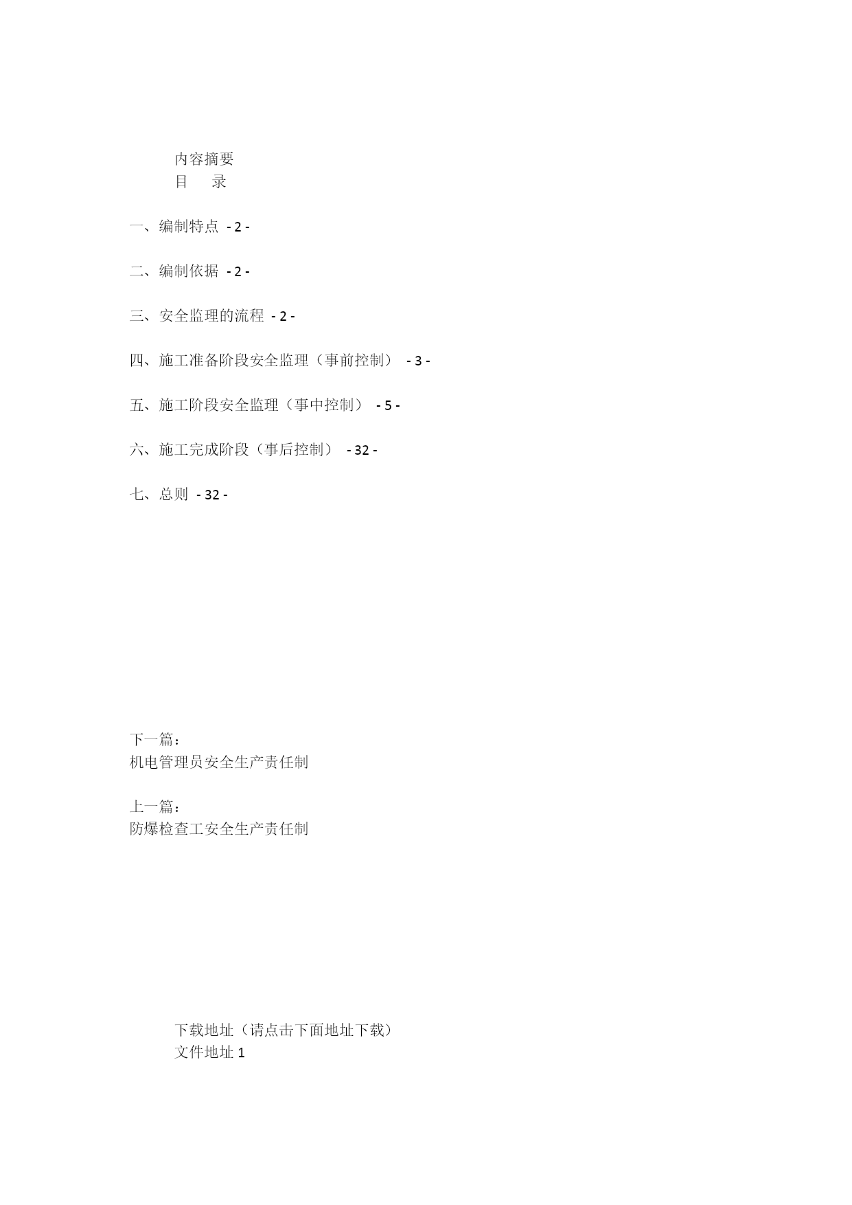 机电安装工程安全监理实施细则?机电安装工程安全监理实施细则-安全管理网安全管理网会员中心加入VIP微信安全管理网微信号用户名:密码:Cookie:不保存保存一天保存一月保存一年忘记密码安全新闻安全法规安全管理安全技术事故案例操作规程安全标准安全教育安全文化应急预案安全评价工伤保险职业卫生环保|健康管理体系文档|论文安全常识工程师安全文艺培训课件管理资料煤矿化工建筑机械电力冶金消防交通特种论坛活动视频问答投稿MSDS培训超市招聘动态法规管理技术案例超市标准预案课件教育规程评价工伤职业卫生环保健康体系文档论文常识工程师文艺视频functionqgSearch(){varkeyword=encodeURI(document.getElementById('qkeyword').value);if(keyword==''||keyword==null){window.open('http://so.safehoo.com/cse/search?q='+keyword+'s=13671738433058352942nsid=0');}else{window.open('http://so.safehoo.com/cse/search?q='+keyword+'s=13671738433058352942nsid=0');}}导航:安全管理网>>安全管理安全管理制度电力安全>>正文机电安装工程安全监理实施细则文件大小:102.59KB文件格式:WORD文档点击数:更新时间:2016年12月25日下载地址:点击这里下载点数:1点(VIP会员免费)文件作者:安全管理网文件来源:安全管理网部分内容预览[文件]本文件,只能预览部分内容,查看全部内容需要下载。注:预览效果可能会出现部分文字乱码(如口口口)、内容显示不全等问题,下载是正常的。内容摘要目录一、编制特点-2-二、编制依据-2-三、安全监理的流程-2-四、施工准备阶段安全监理(事前控制)-3-五、施工阶段安全监理(事中控制)-5-六、施工完成阶段(事后控制)-32-七、总则-32-下一篇:机电管理员安全生产责任制上一篇:防爆检查工安全生产责任制下载地址(请点击下面地址下载)文件地址1Tag:机电.安全监理.管理制度相关内容关于防止钢、铁水发生爆炸的规定关于高温液态金属吊运过程的安全管理规定外委项目(工程)安全管理规定塔楼区域作业的安全管理规定除尘设施运行效果管理规定网友评论more电力安全热点内容144824企业安全用电管理制度41034配电房安全管理制度26965工作票和操作票管理制度25590停送电安全管理制度22502安全风险分级控制管理实施细则21733变电所的管理制度20617电动车充电安全管理制度20137变配电室安全管理规定电力安全推荐内容08-30洁净车间电工安全职责08-26井上电修工岗位安全生产责任制08-26地面变电所配电工岗位安全生产责任制08-26灯房充电工岗位安全生产责任制08-26大班电修工岗位安全生产责任制08-26小班电修工岗位安全生产责任制08-26电气设备防爆检查员安全生产责任制08-25下电修工岗位安全生产责任制创想安科网站简介会员服务广告服务业务合作提交需求会员中心在线投稿版权声明友情链接联系我们function$getE(obj){returndocument.getElementById(obj);}functioncommentInit(){varx=newAjaxRequest('XML','commentForm');x.labelname="内容评论标签";x.para=['itemId=468322','nodeId=1315'];x.currentpage=1;x.post('updatelabel','/ajax.aspx',funct