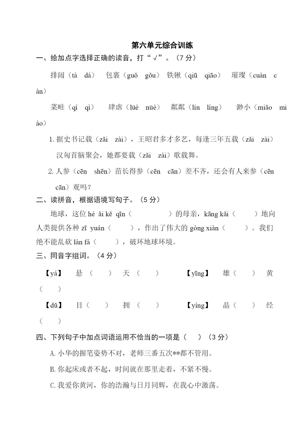 第六单元综合训练(附参考答案)-最新经典通用教辅资料