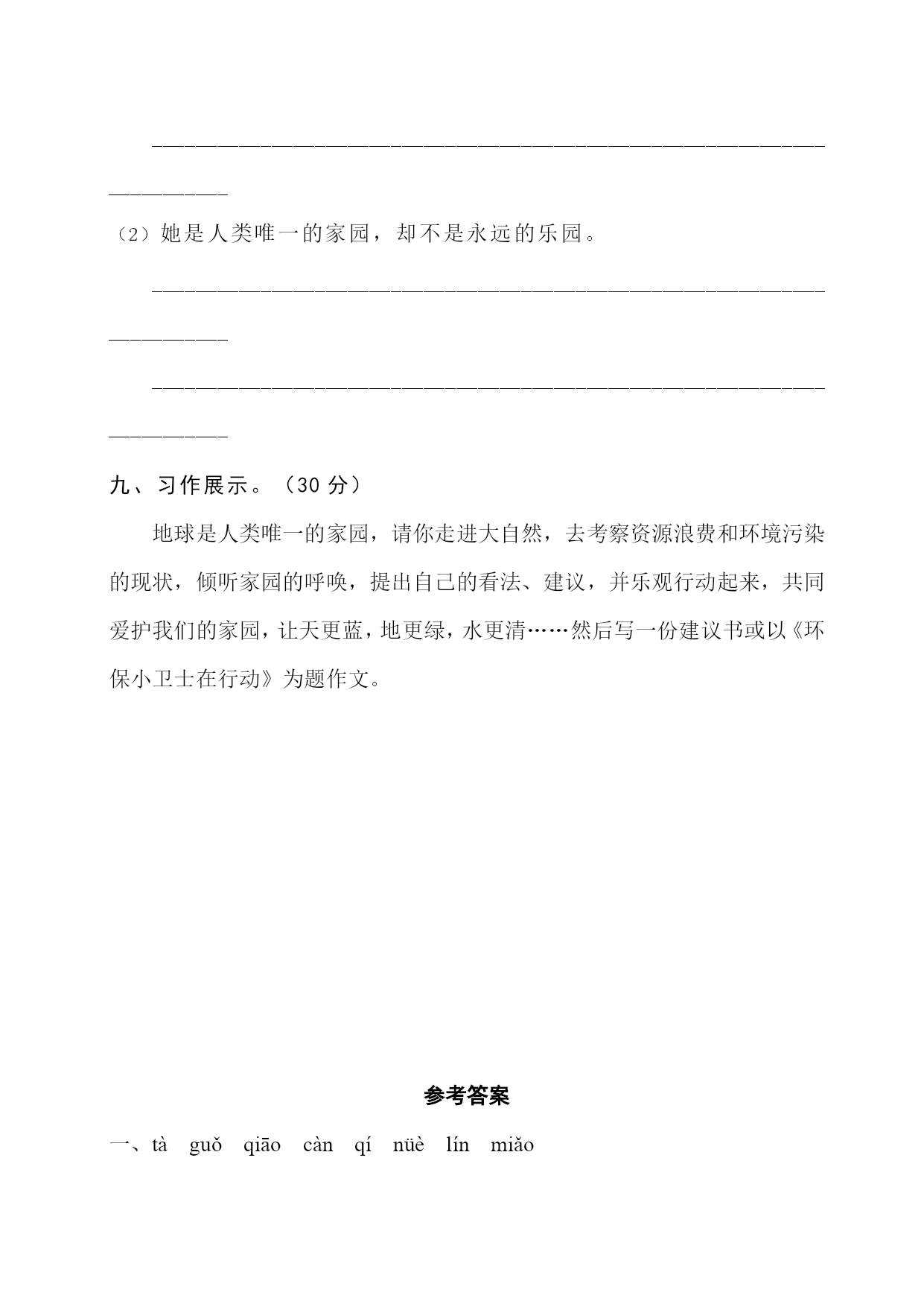 第八单元综合训练(附参考答案)-最新经典通用教辅资料