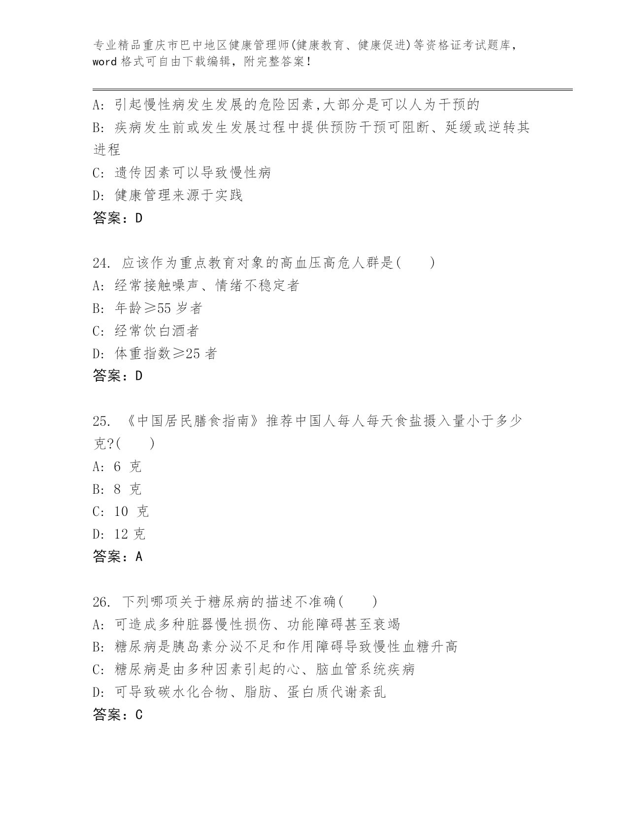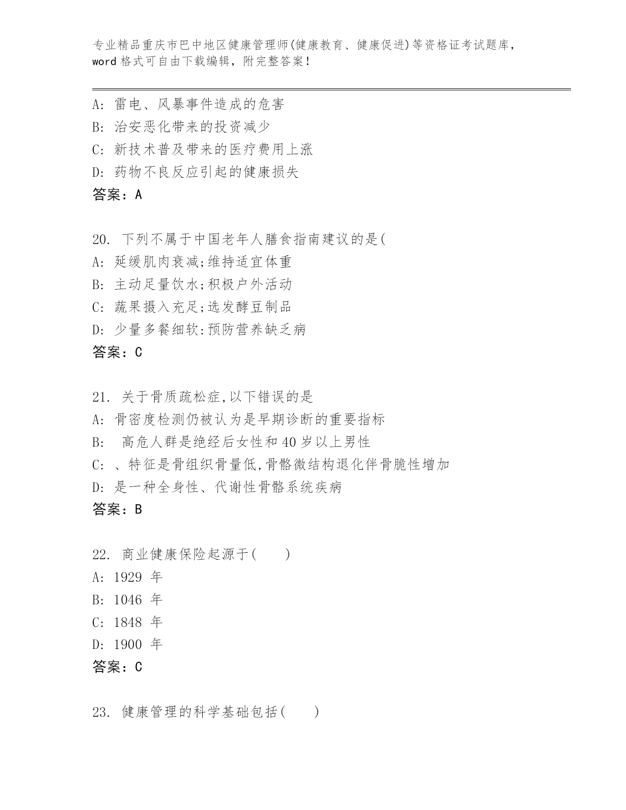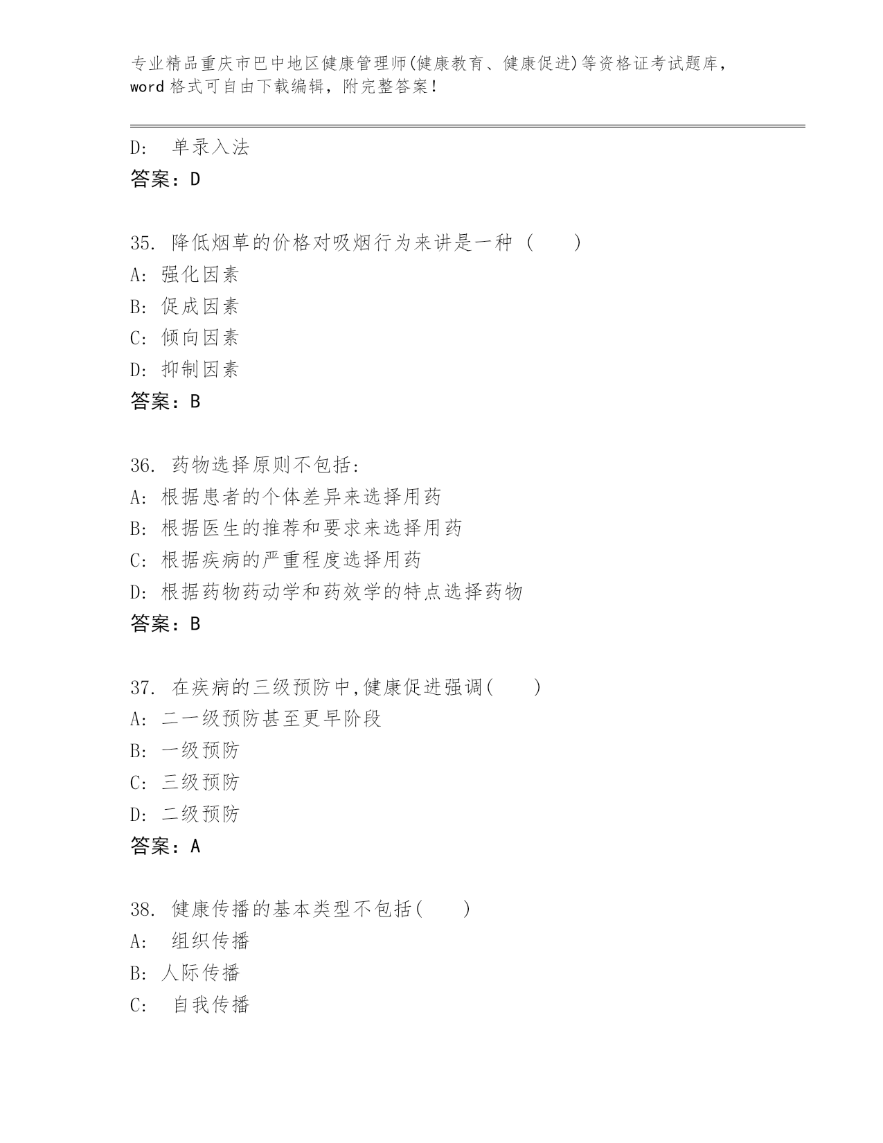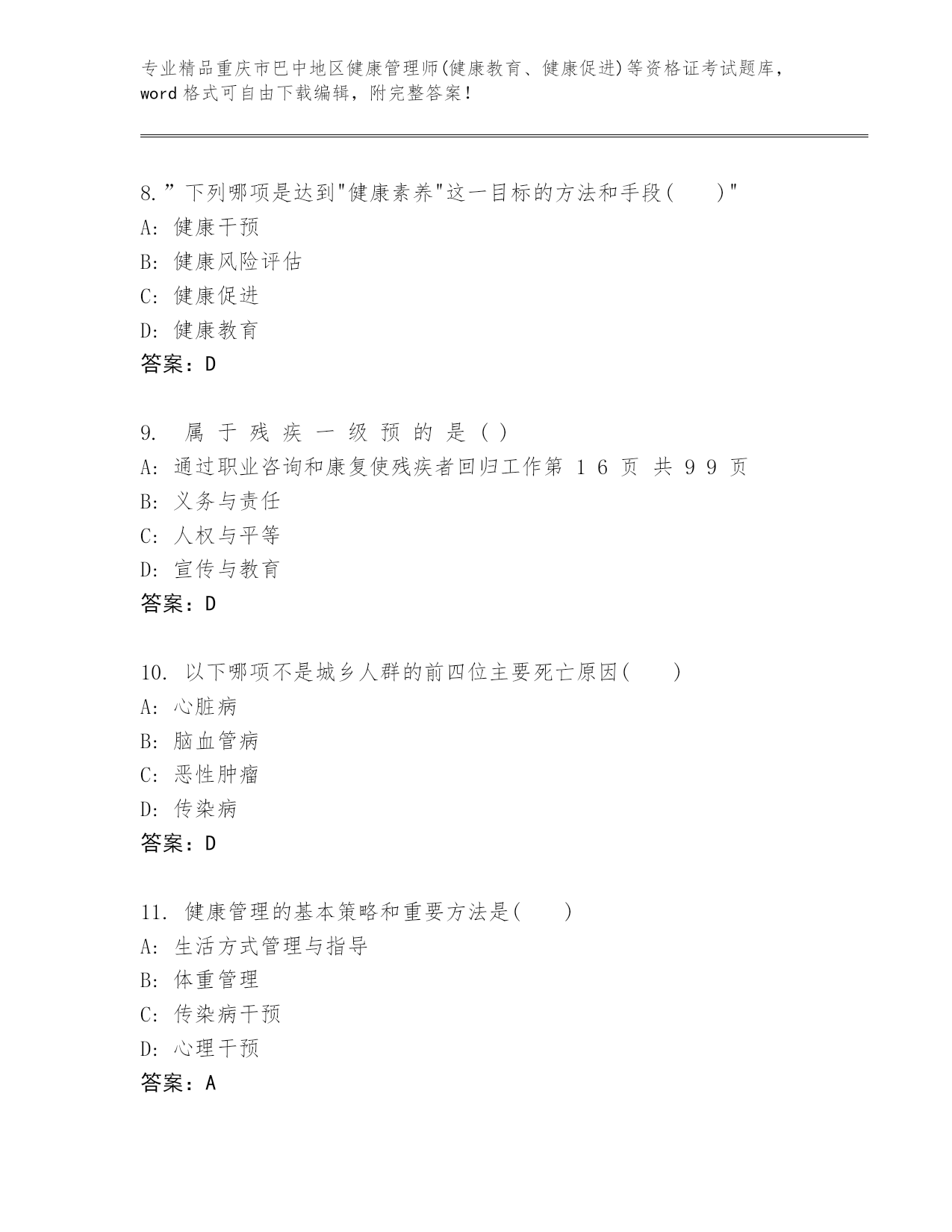 优选重庆市巴中地区健康管理师(健康教育、健康促进)等资格证考试大全【考点梳理】
