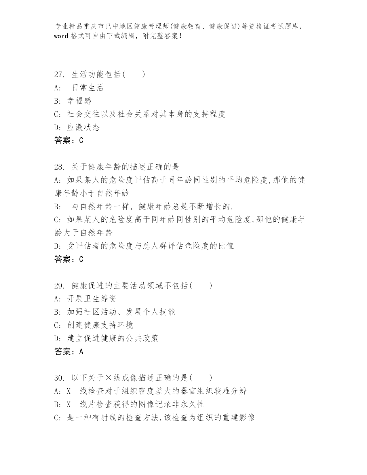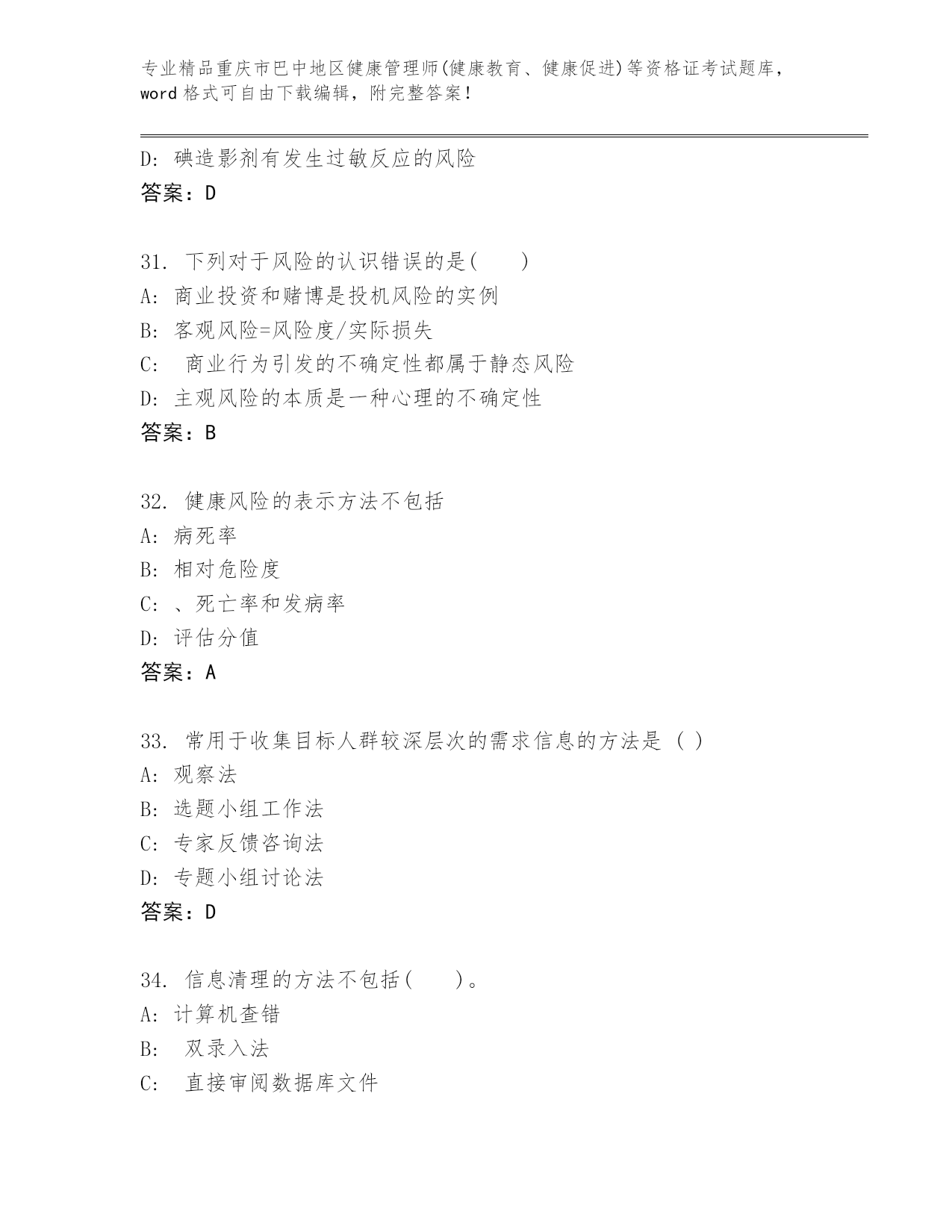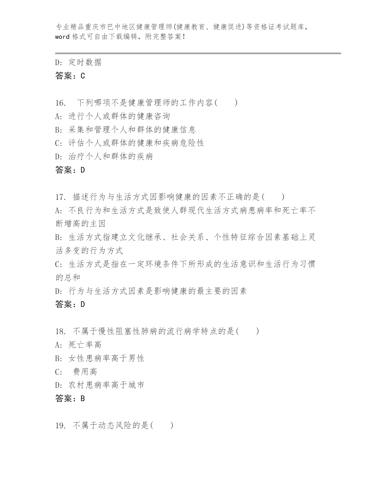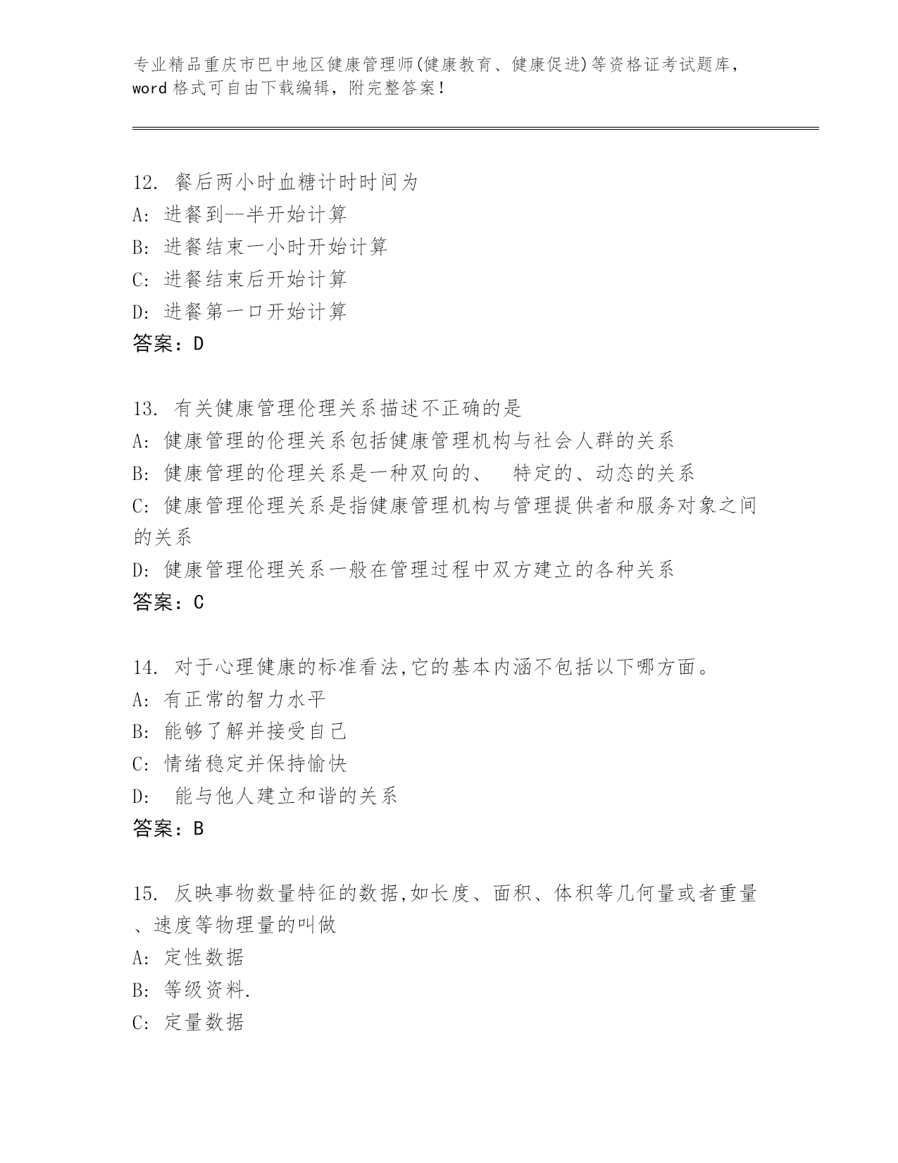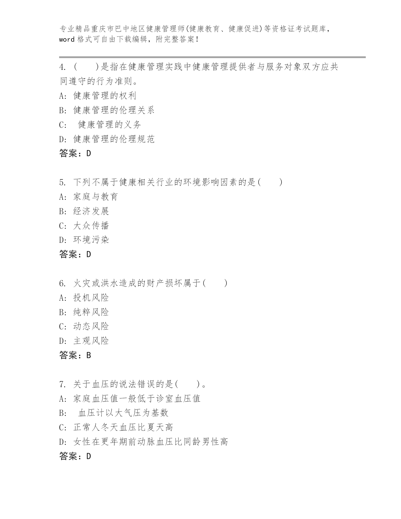 优选重庆市巴中地区健康管理师(健康教育、健康促进)等资格证考试大全【考点梳理】
