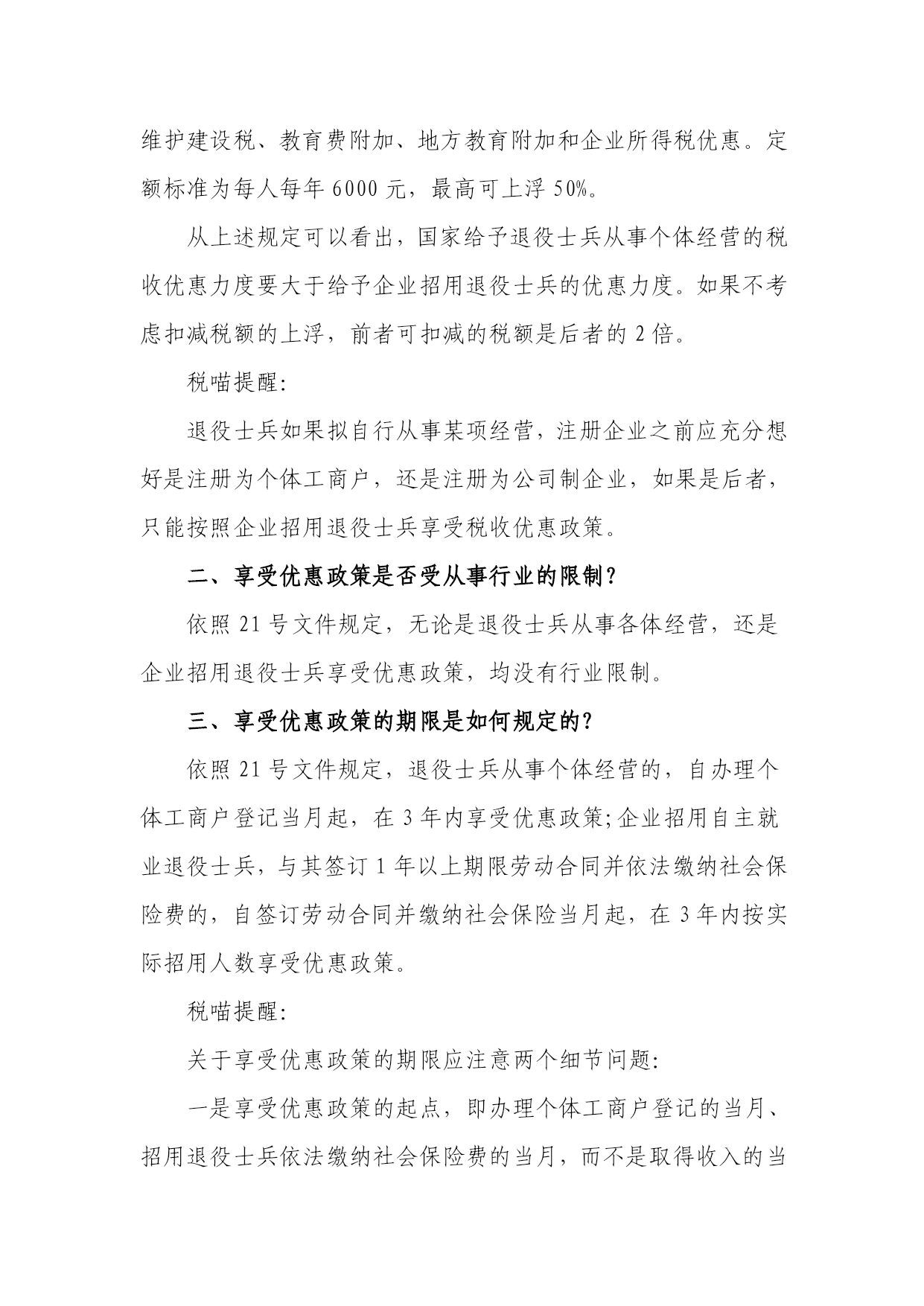 退役士兵创业就业享受税收优惠政策应厘清的几个问题