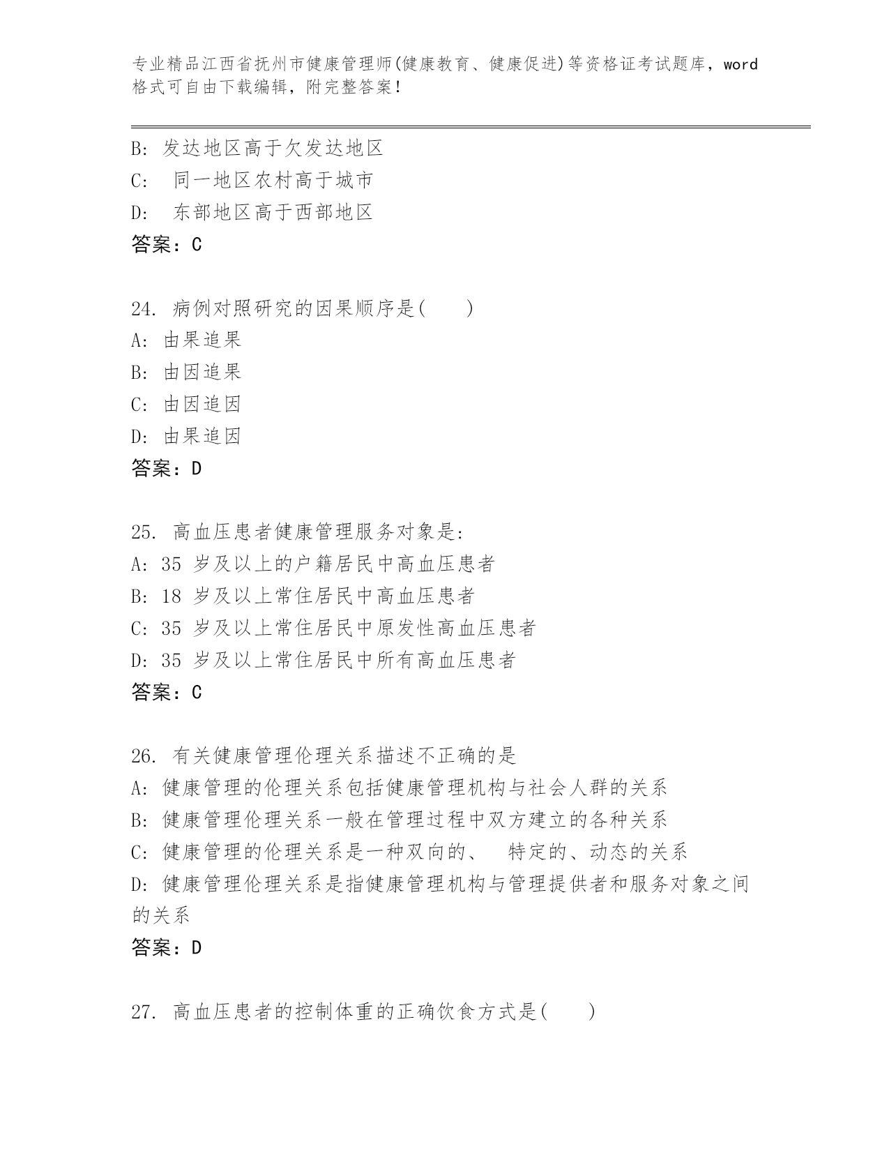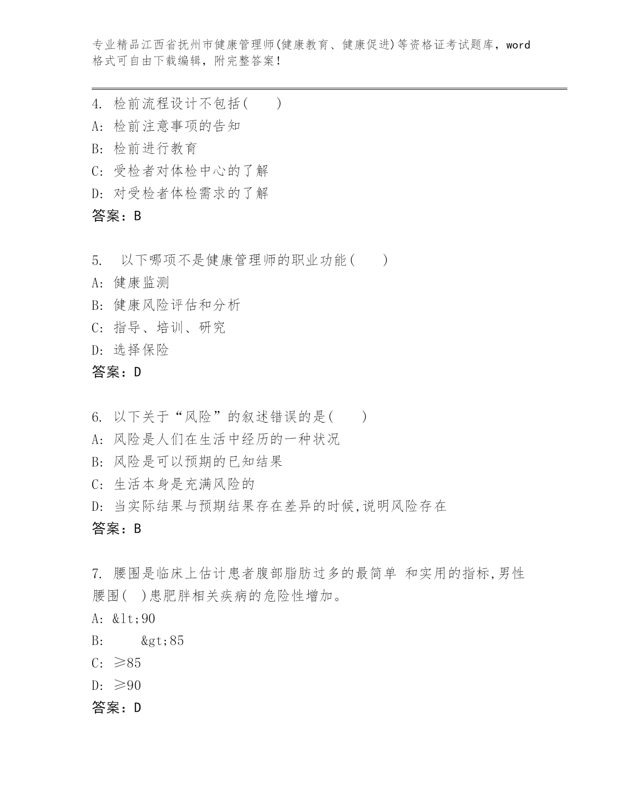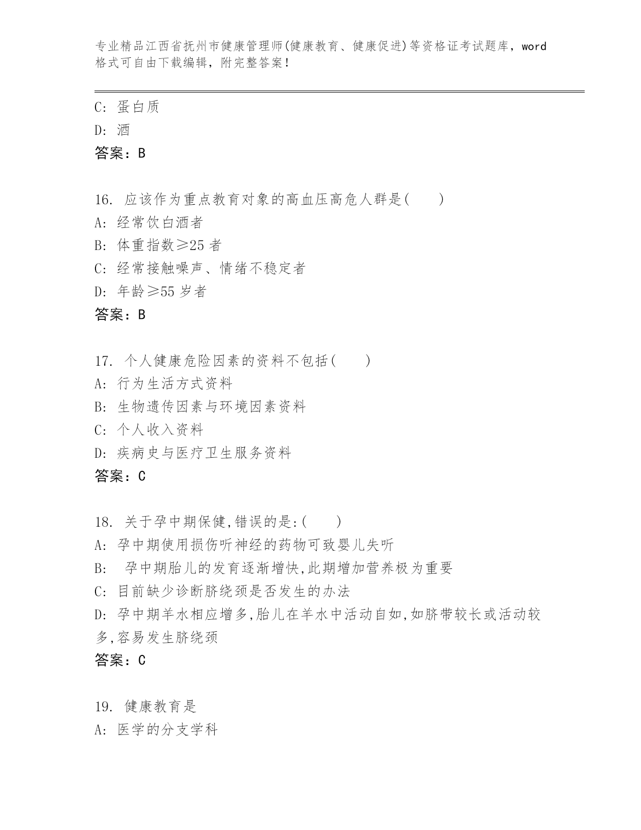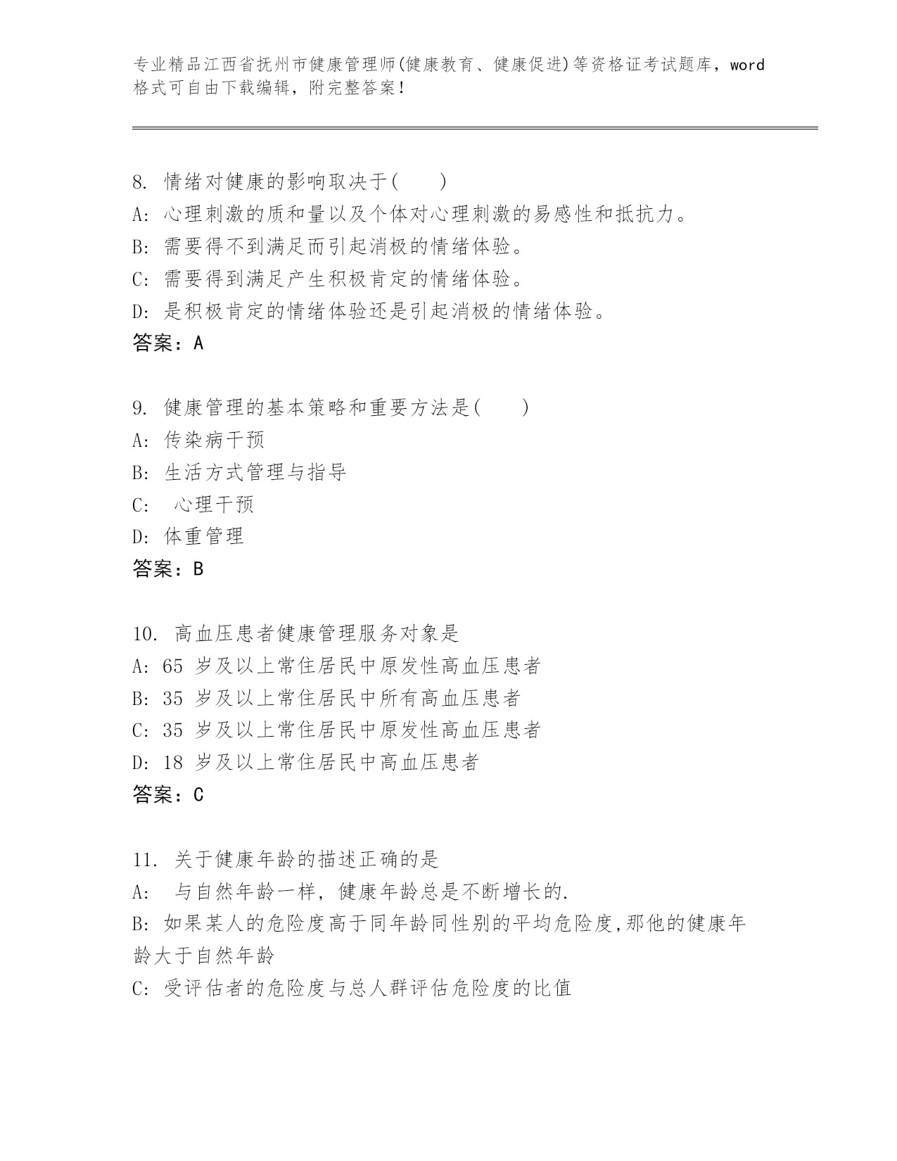 江西省抚州市健康管理师(健康教育、健康促进)等资格证考试含答案【实用】.docx