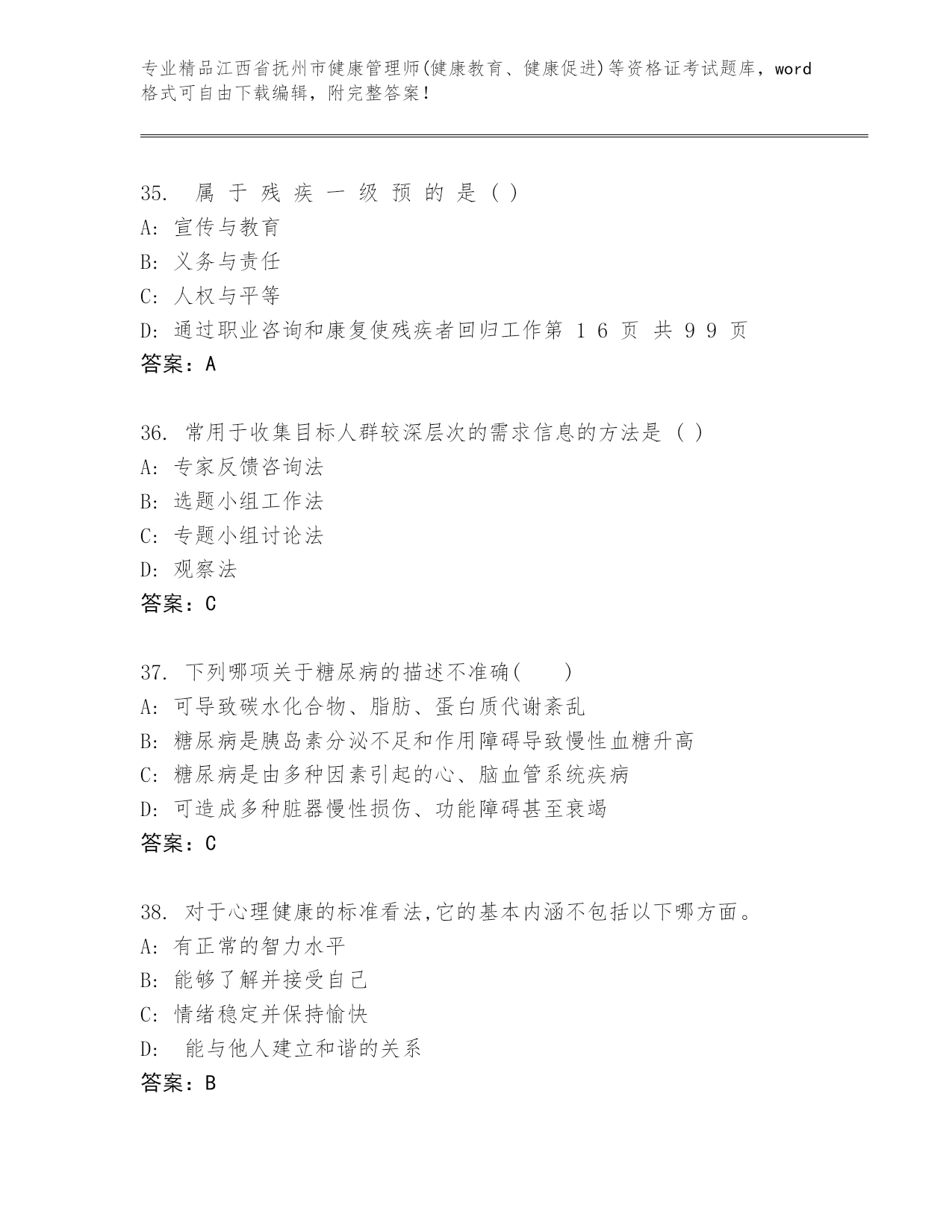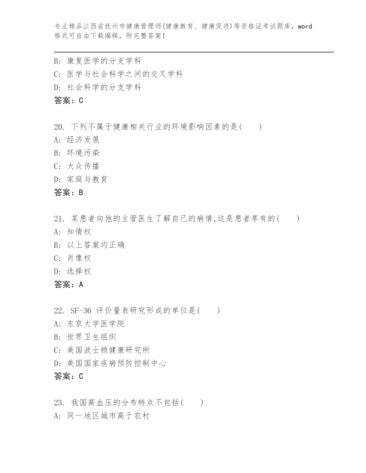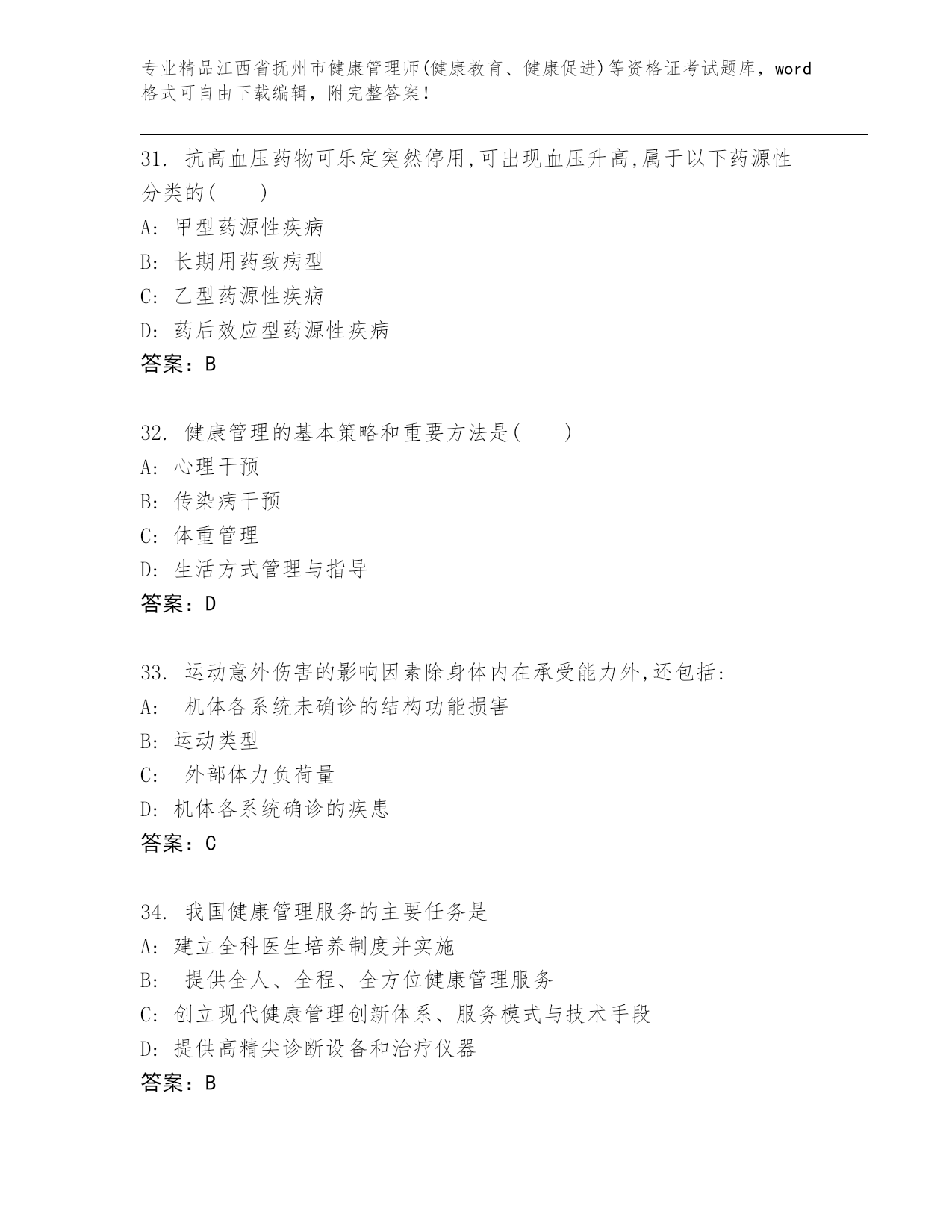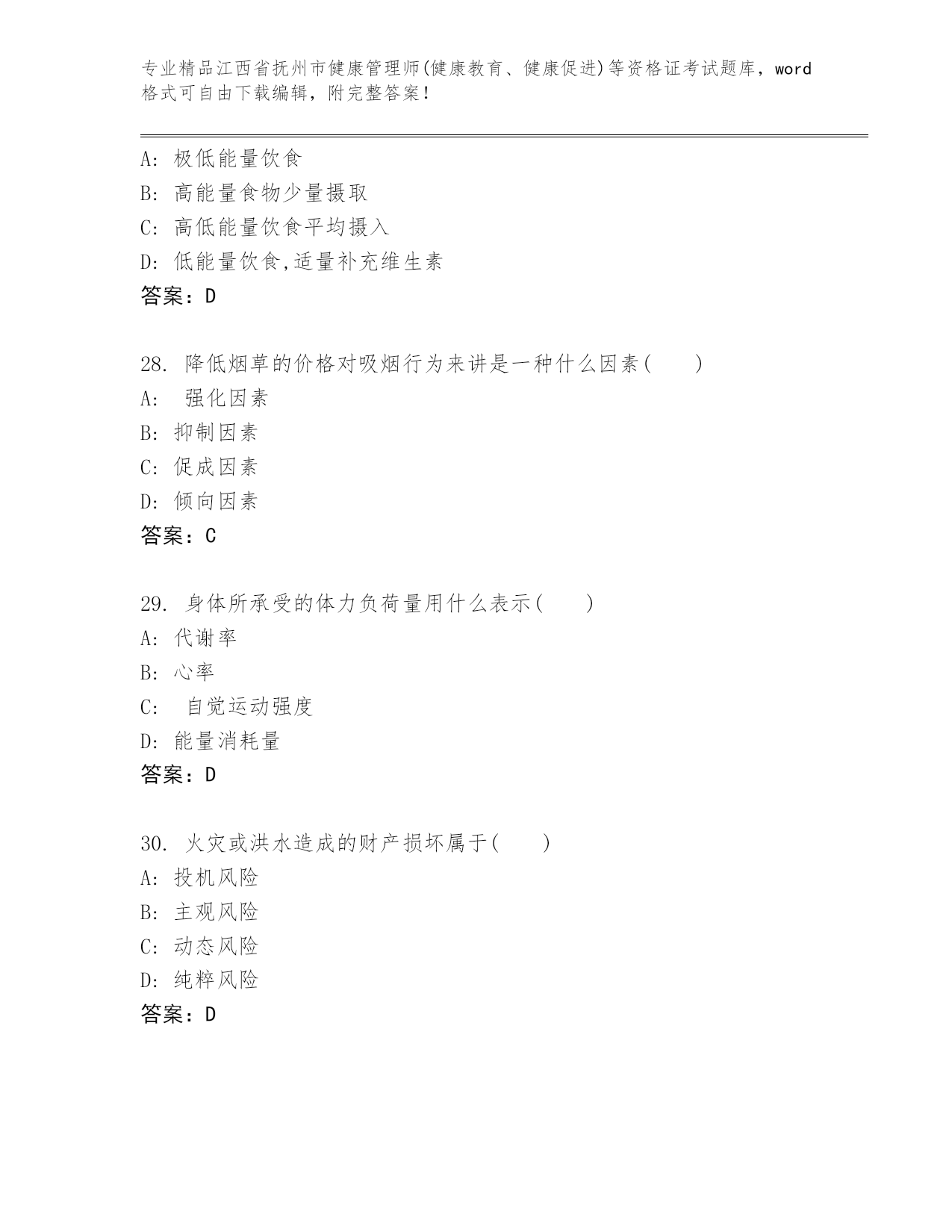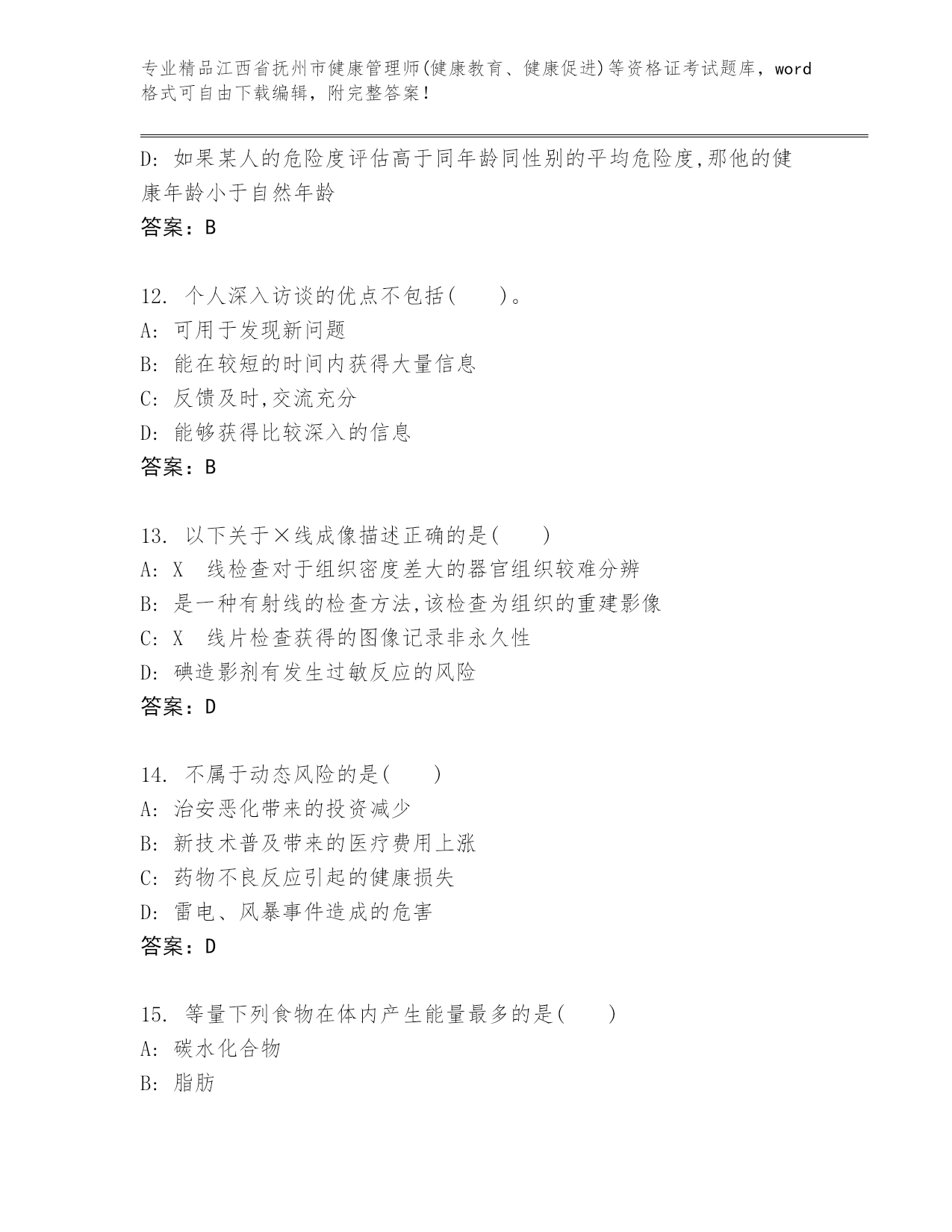 江西省抚州市健康管理师(健康教育、健康促进)等资格证考试含答案【实用】.docx