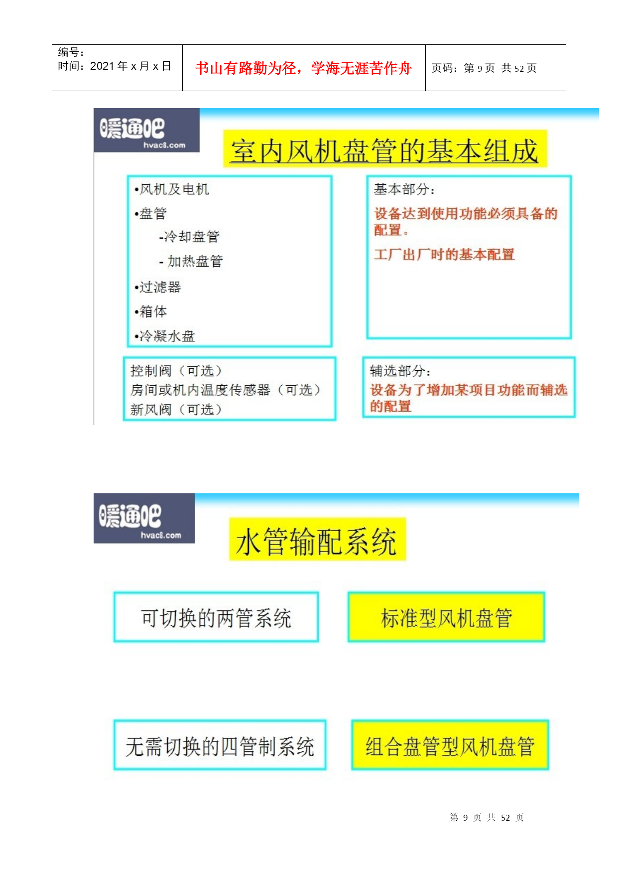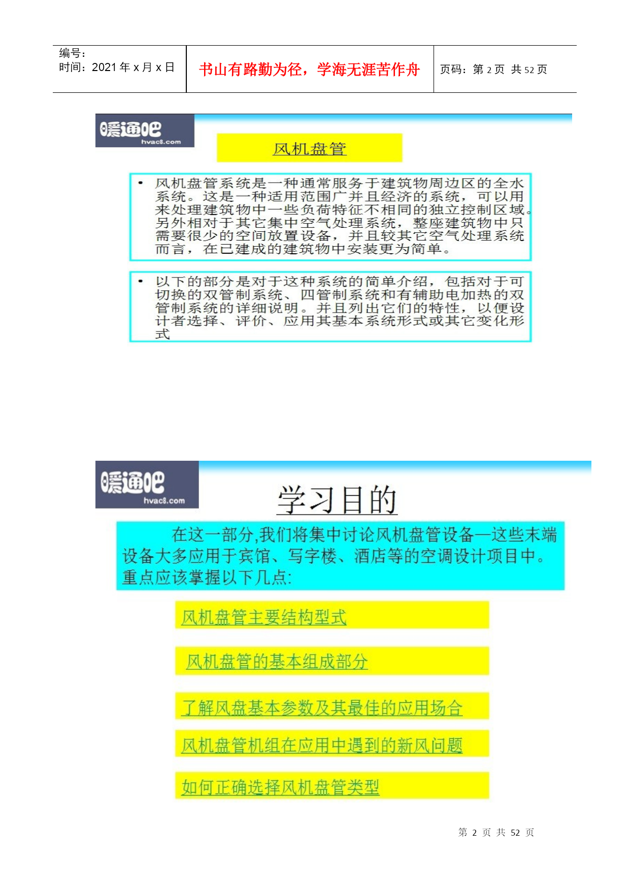 编号:时间:2021年x月x日书山有路勤为径,学海无涯苦作舟页码:第PAGE52页共NUMPAGES52页第PAGE\*MERGEFORMAT52页共NUMPAGES\*MERGEFORMAT52页中央空调末端设备选型教程HYPERLINK"http://mp.weixin.qq.com/javascript:void(0);"暖通吧一、风机盘管机组产品介绍及应用二、空气处理机组产品介绍及应用三、组合式空气处理机组产品介绍及应用四、末端产品售后问题的讨论