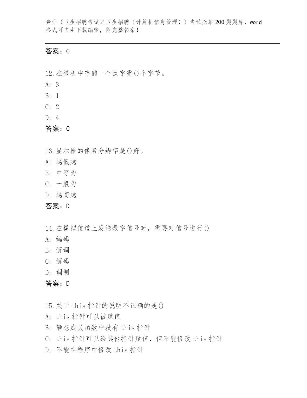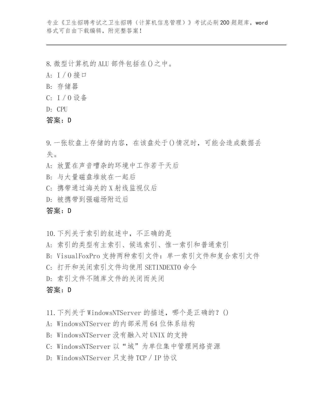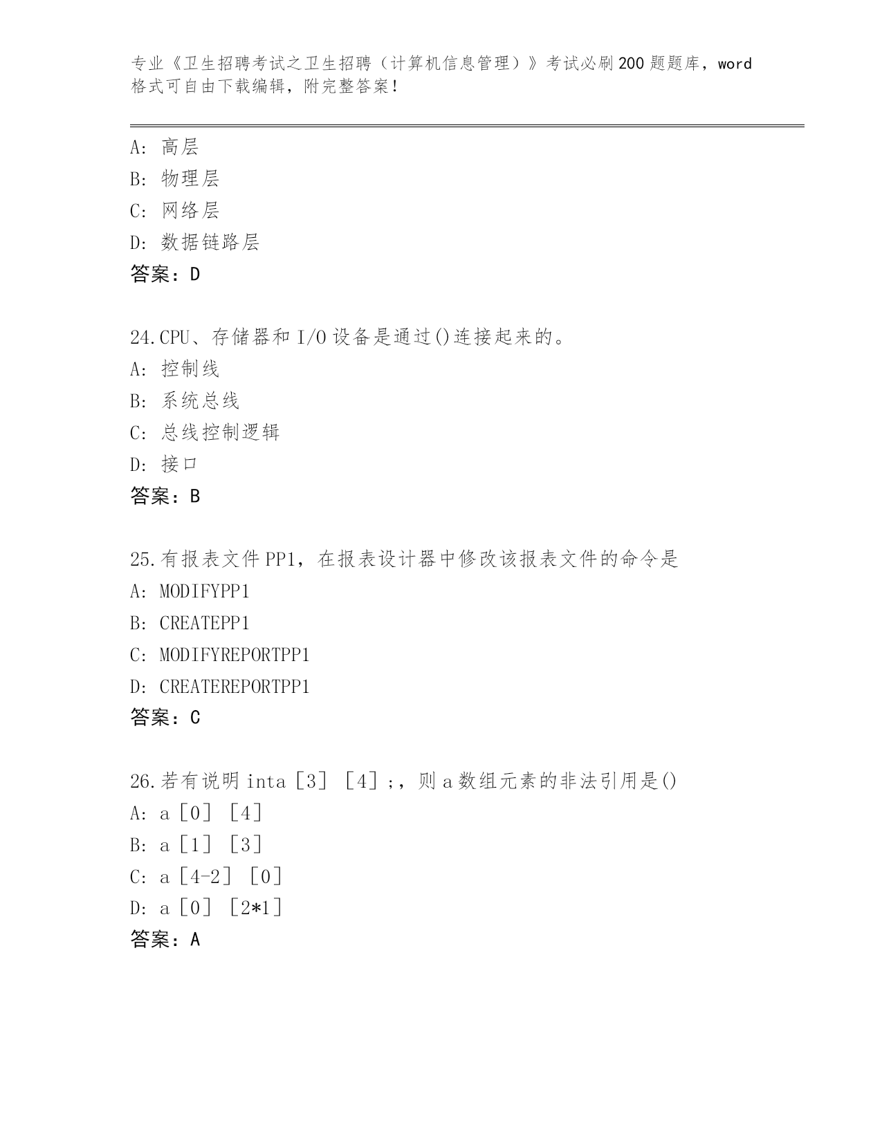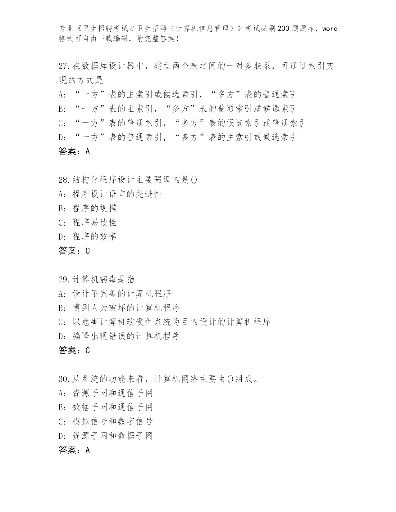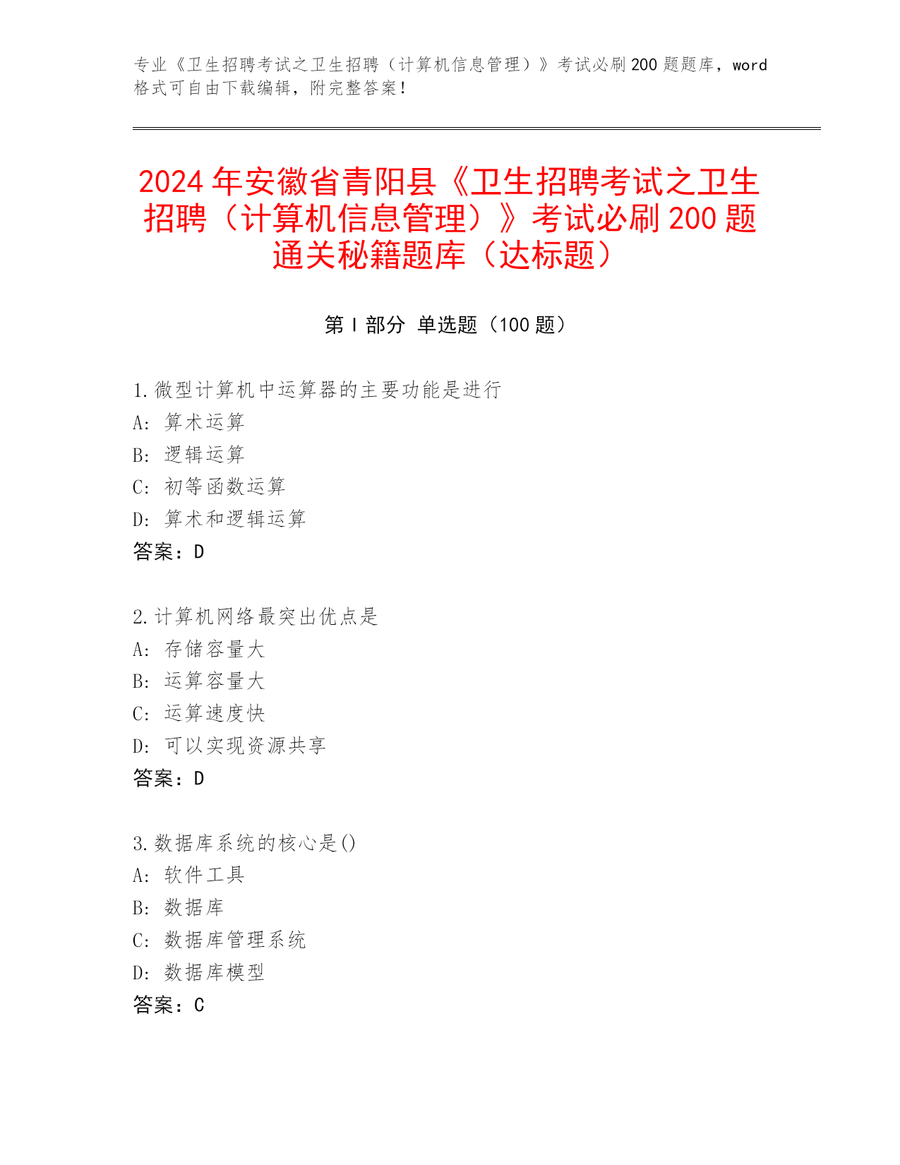 2024年安徽省青阳县《卫生招聘考试之卫生招聘(计算机信息管理)》考试必刷200题通关秘籍题库(达标题)