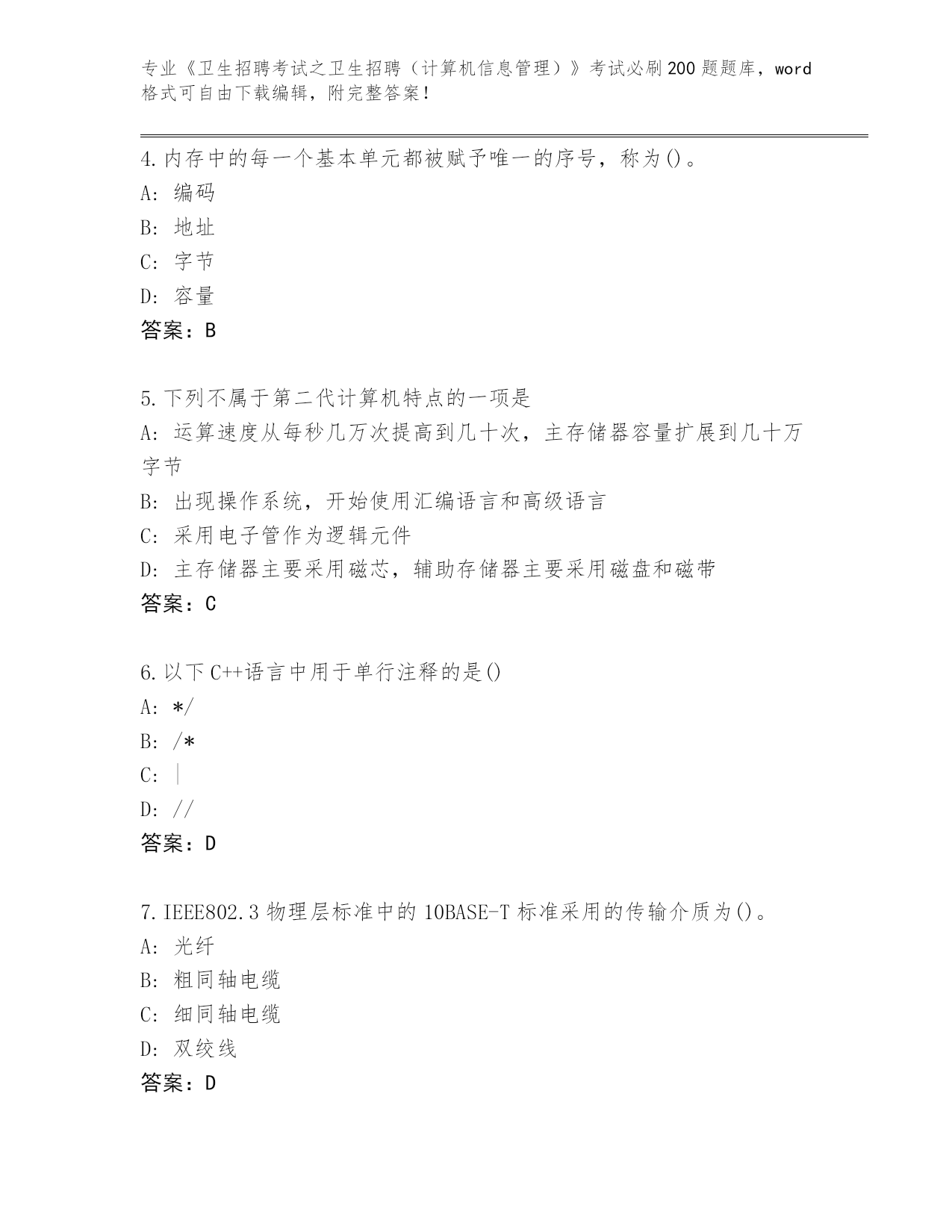 安徽省2024年《卫生招聘考试之卫生招聘(计算机信息管理)》考试必刷200题通关秘籍题库附答案