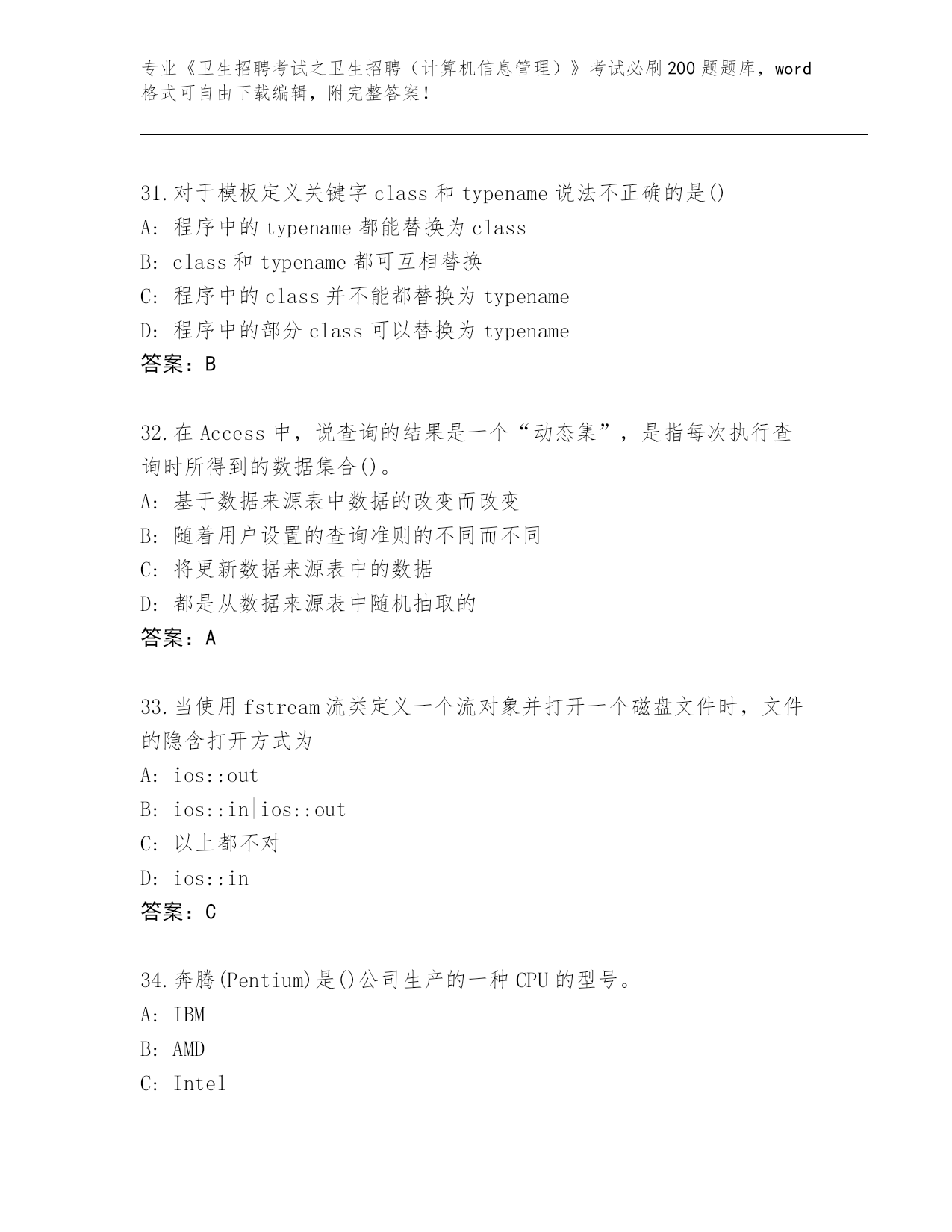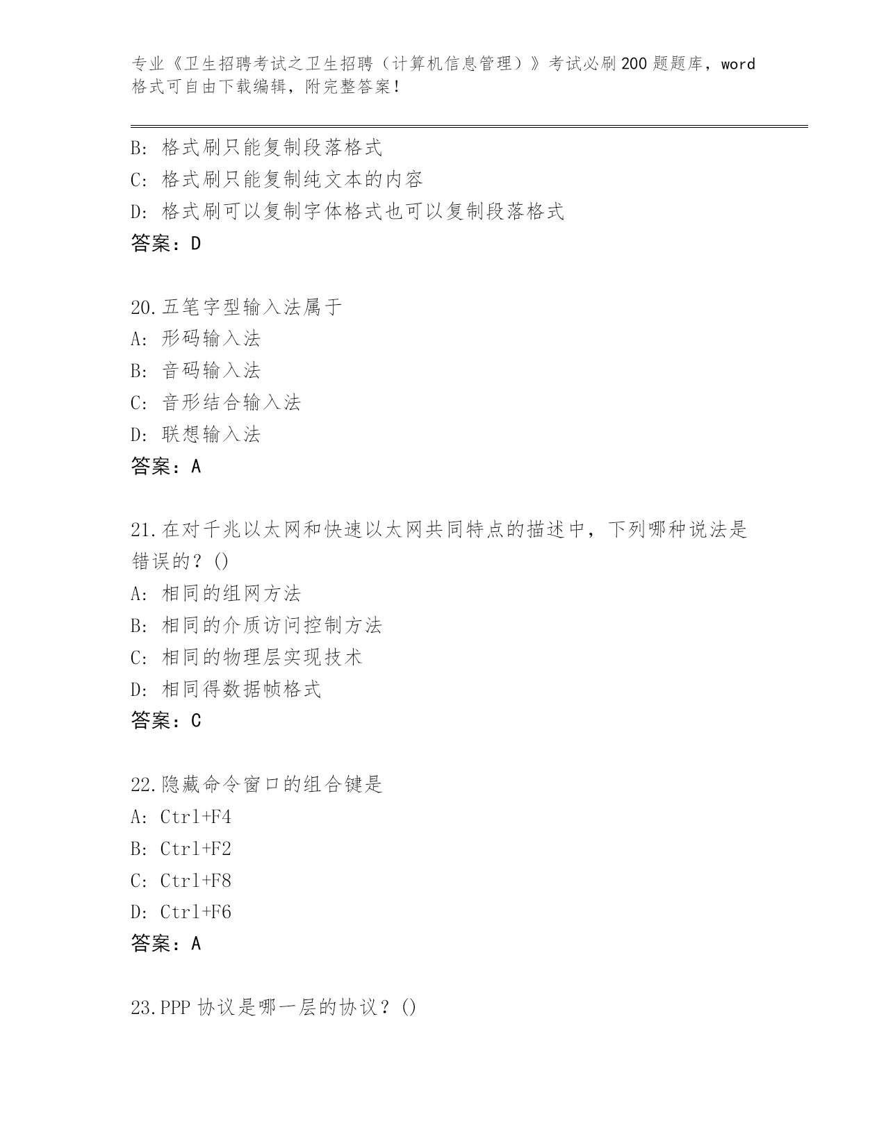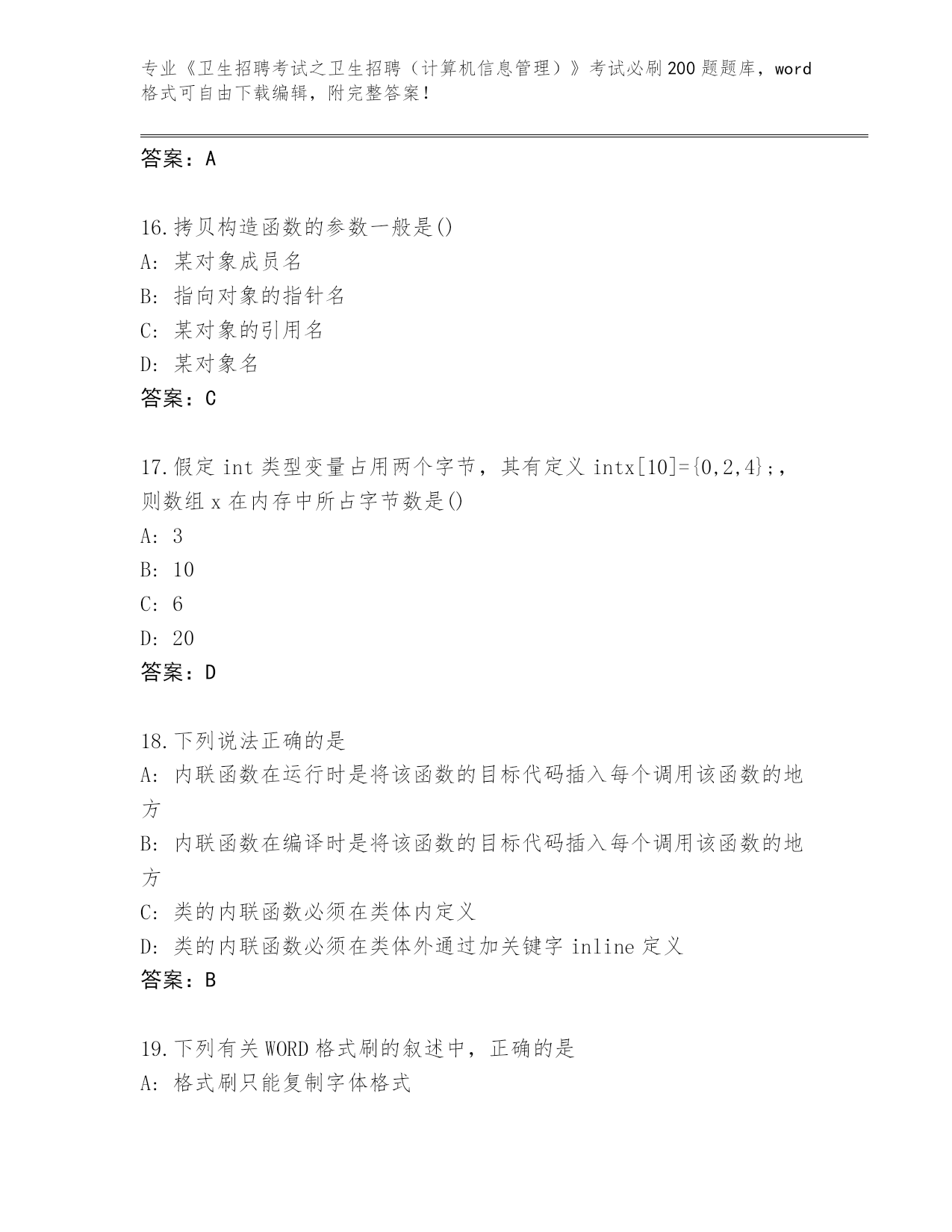 整理安徽省《卫生招聘考试之卫生招聘(计算机信息管理)》考试必刷200题通关秘籍题库(黄金题型)