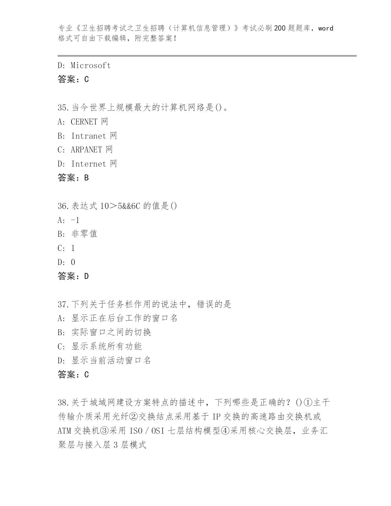 2024安徽省《卫生招聘考试之卫生招聘(计算机信息管理)》考试必刷200题通关秘籍题库及答案【最新】