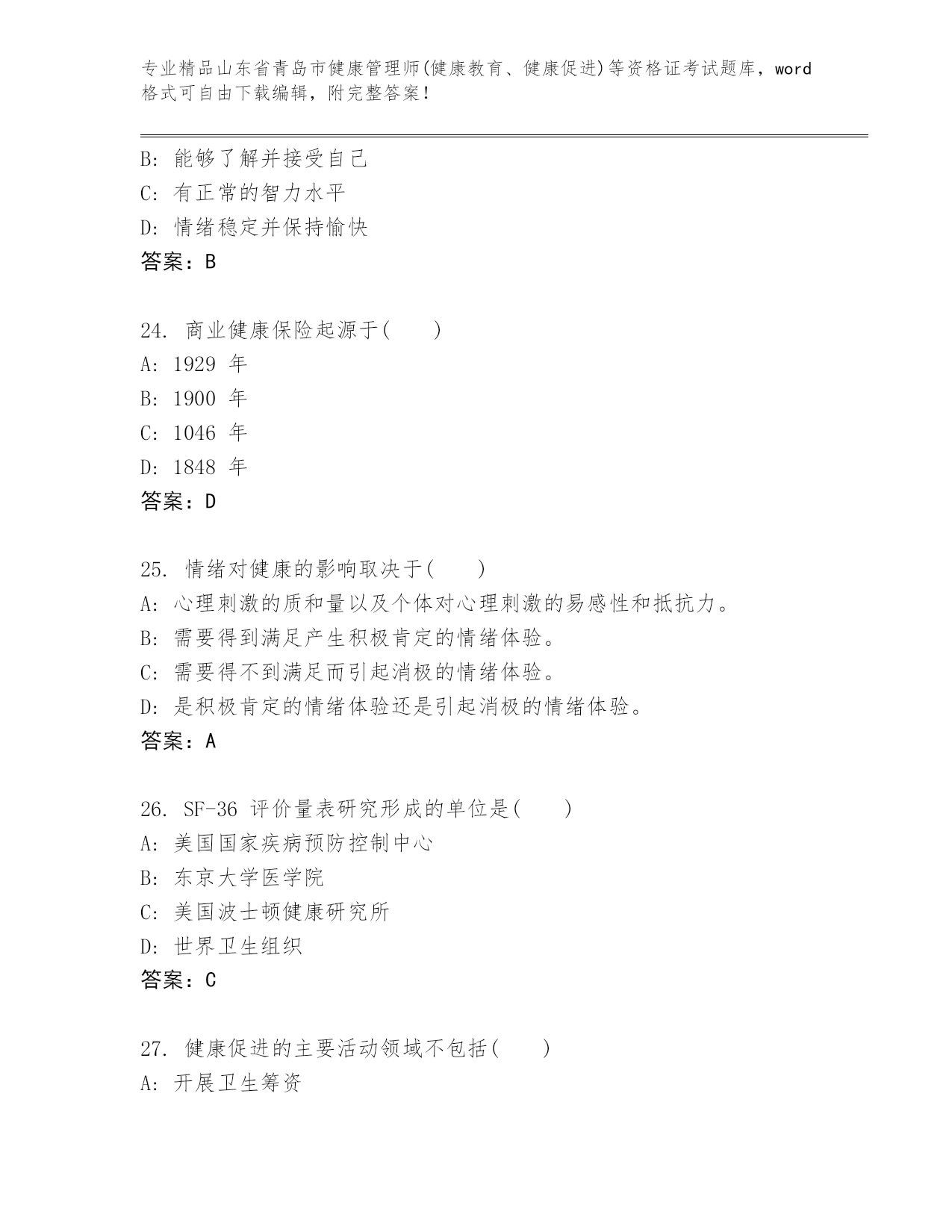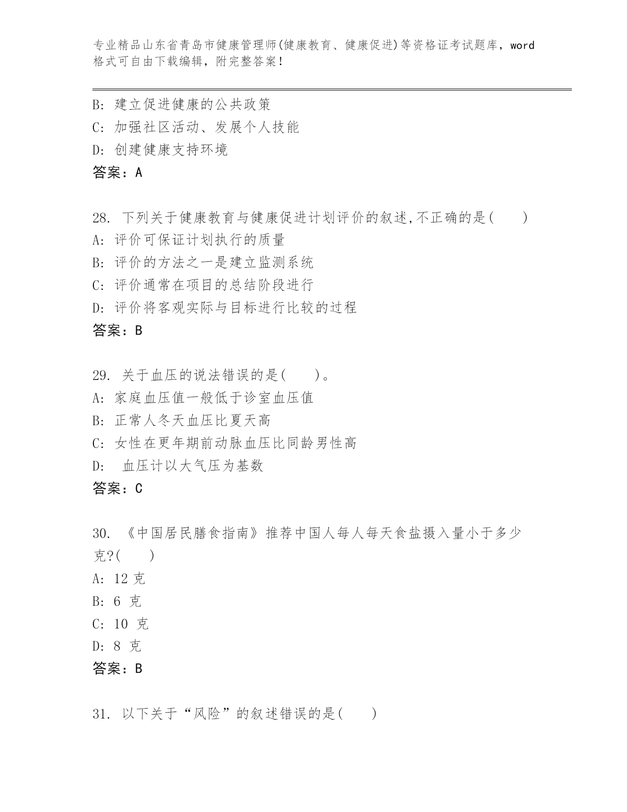 山东省青岛市健康管理师(健康教育、健康促进)等资格证考试真题(含答案).docx