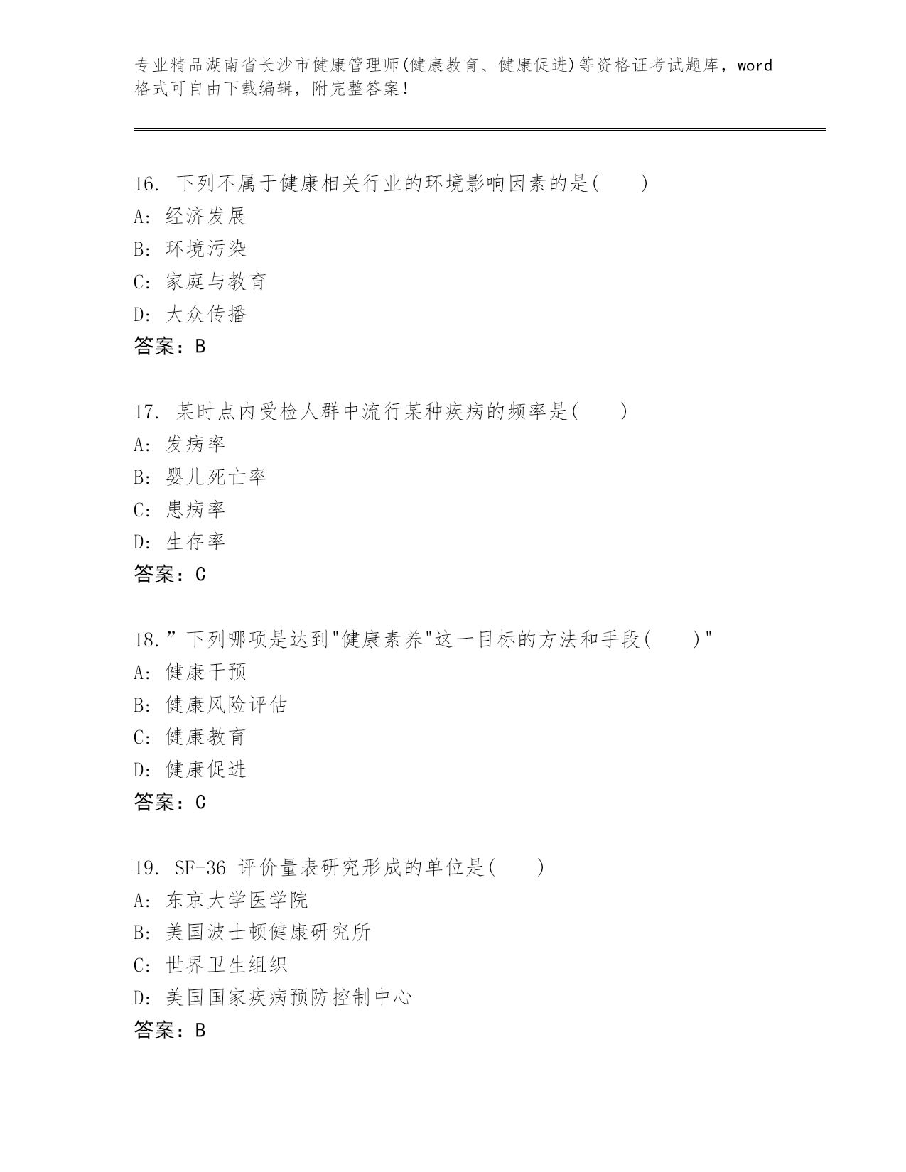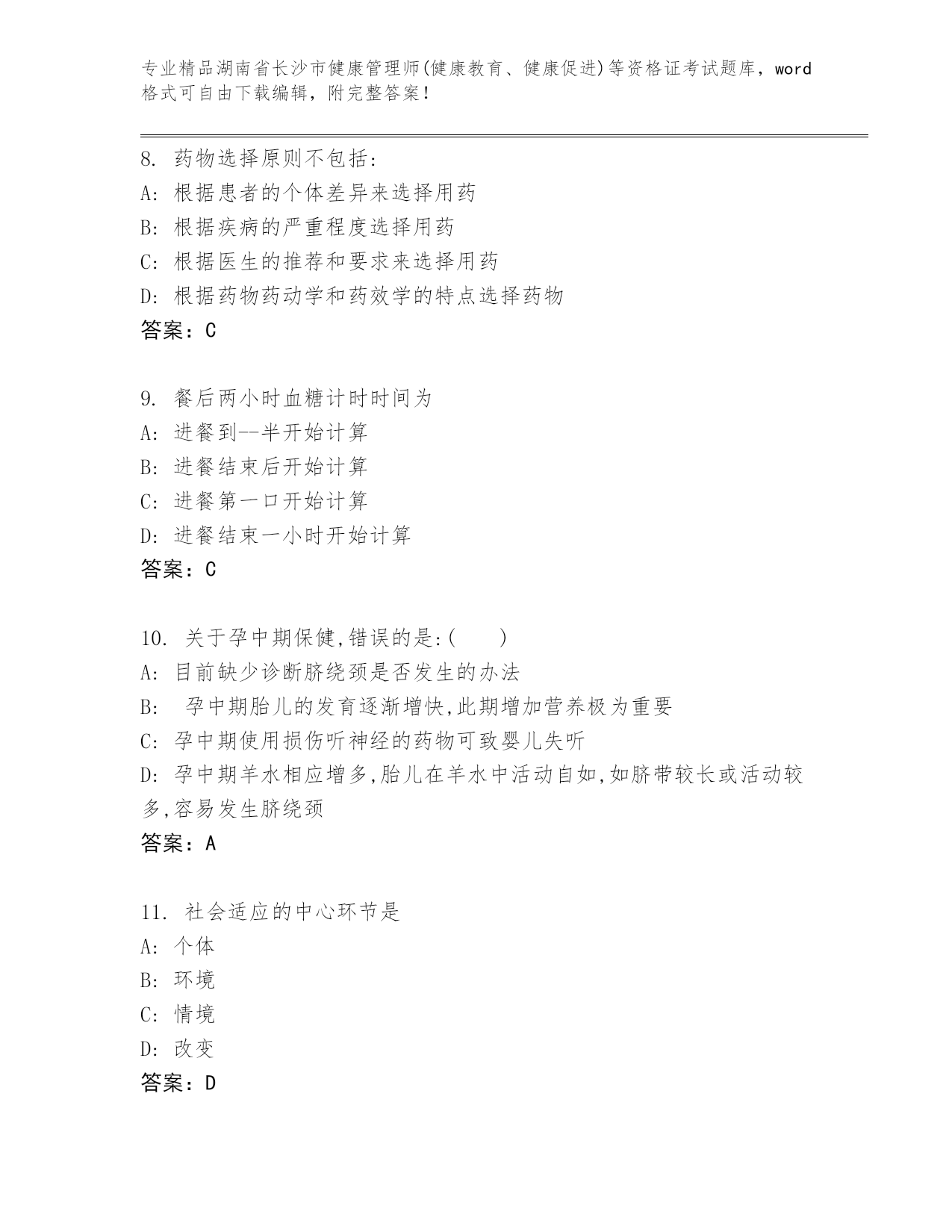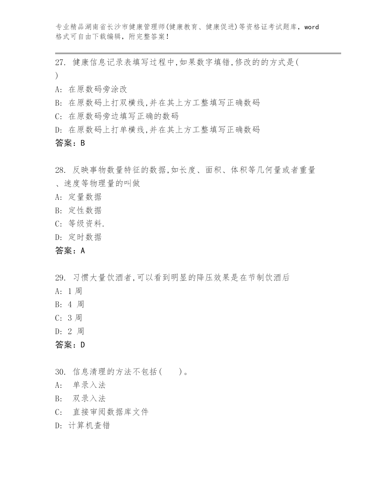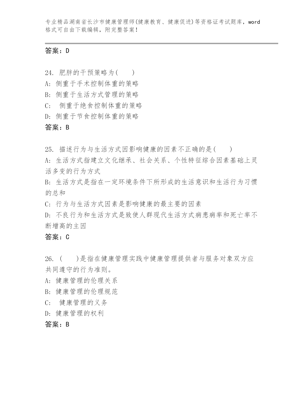 优选湖南省长沙市健康管理师(健康教育、健康促进)等资格证考试及答案参考