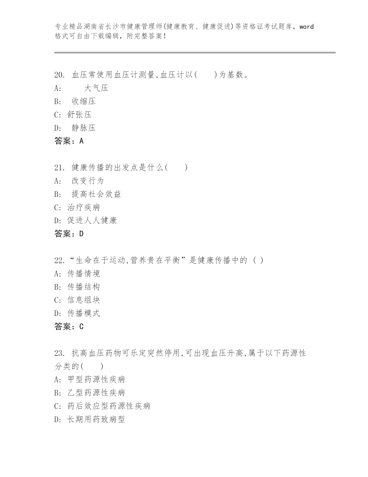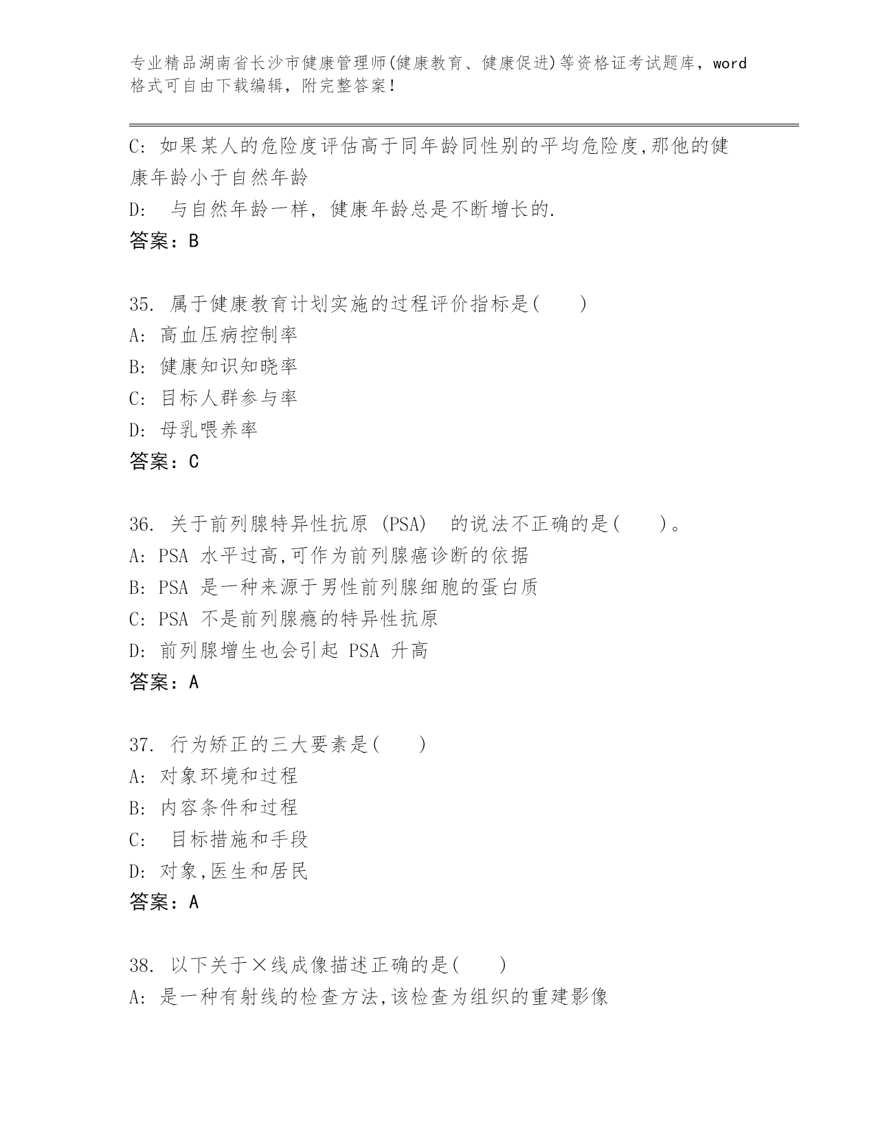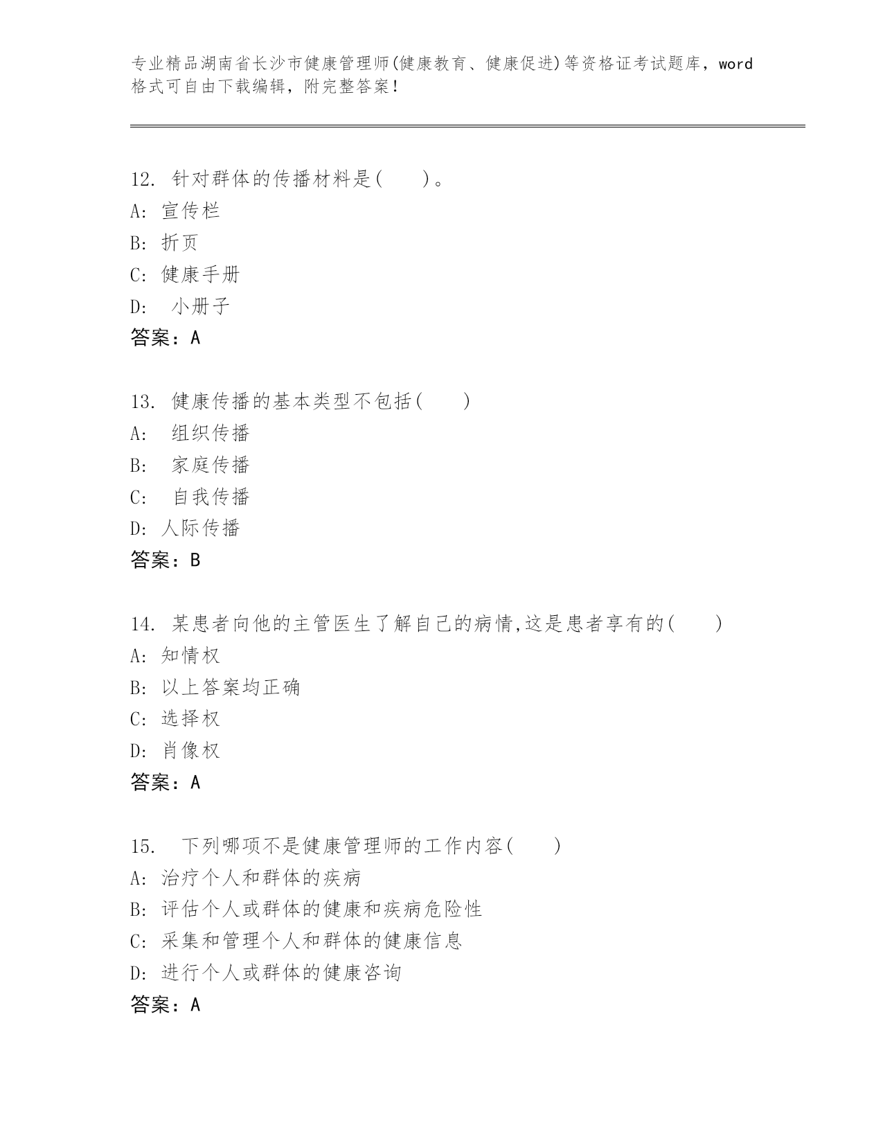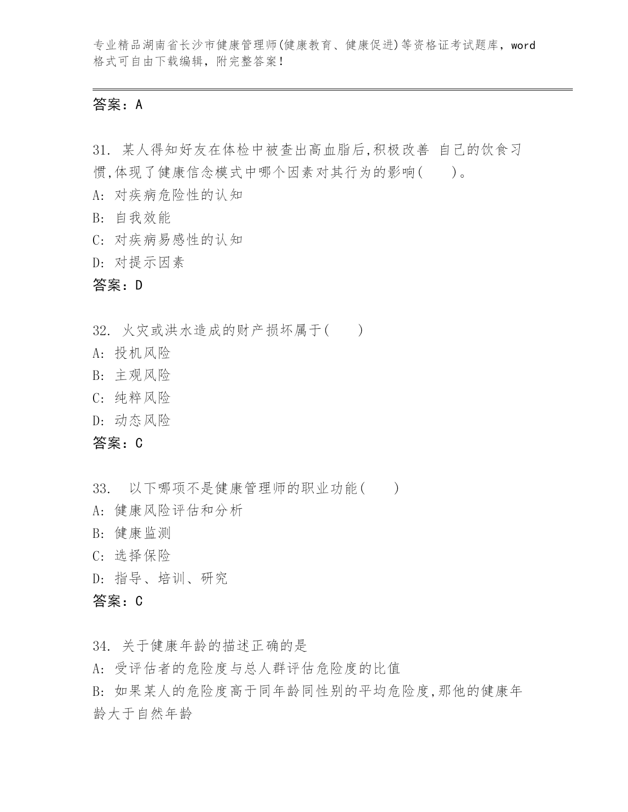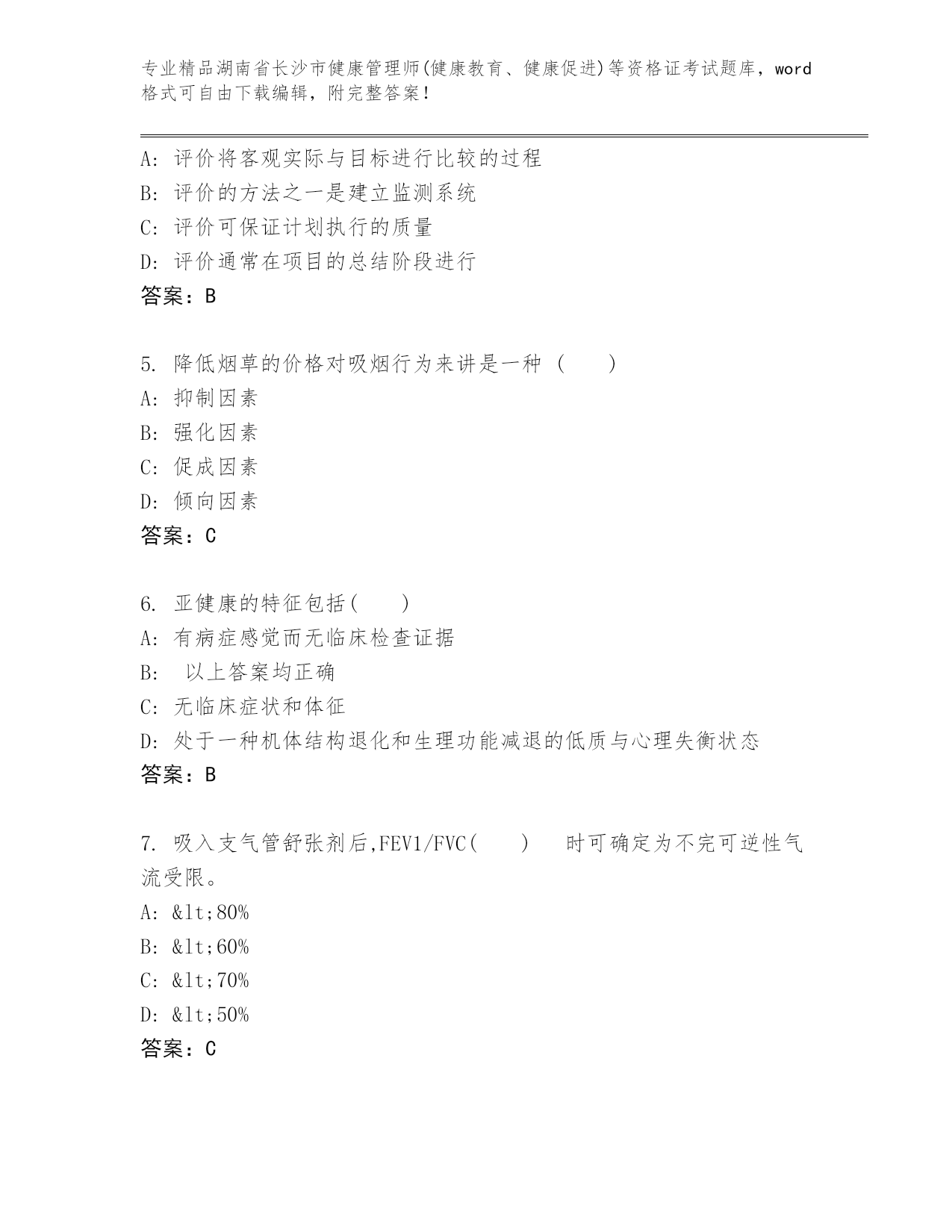 优选湖南省长沙市健康管理师(健康教育、健康促进)等资格证考试及答案参考