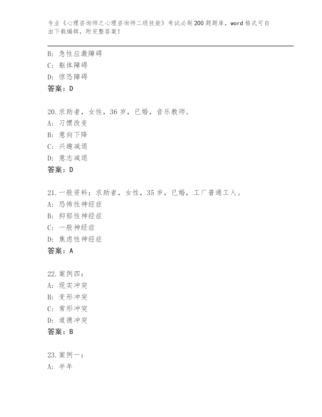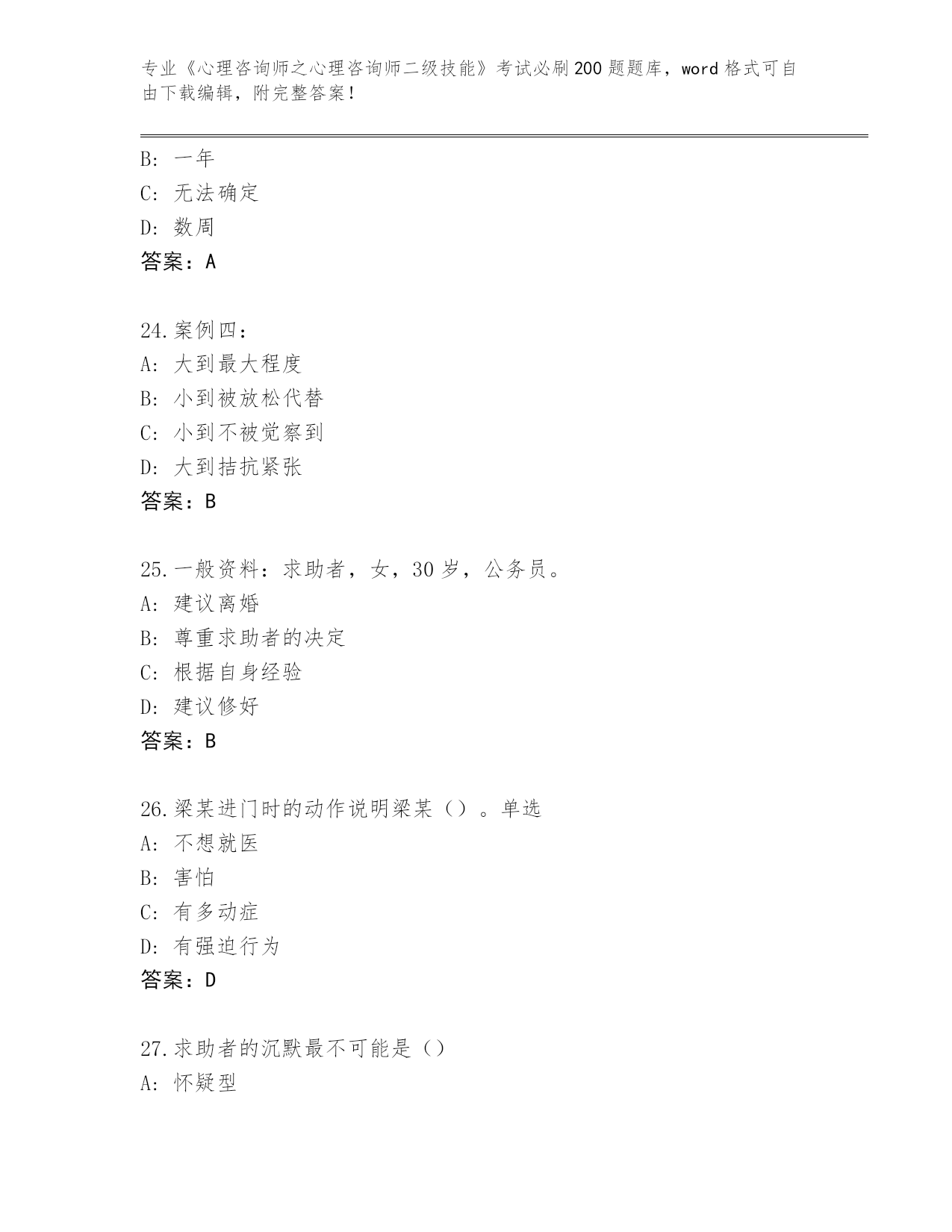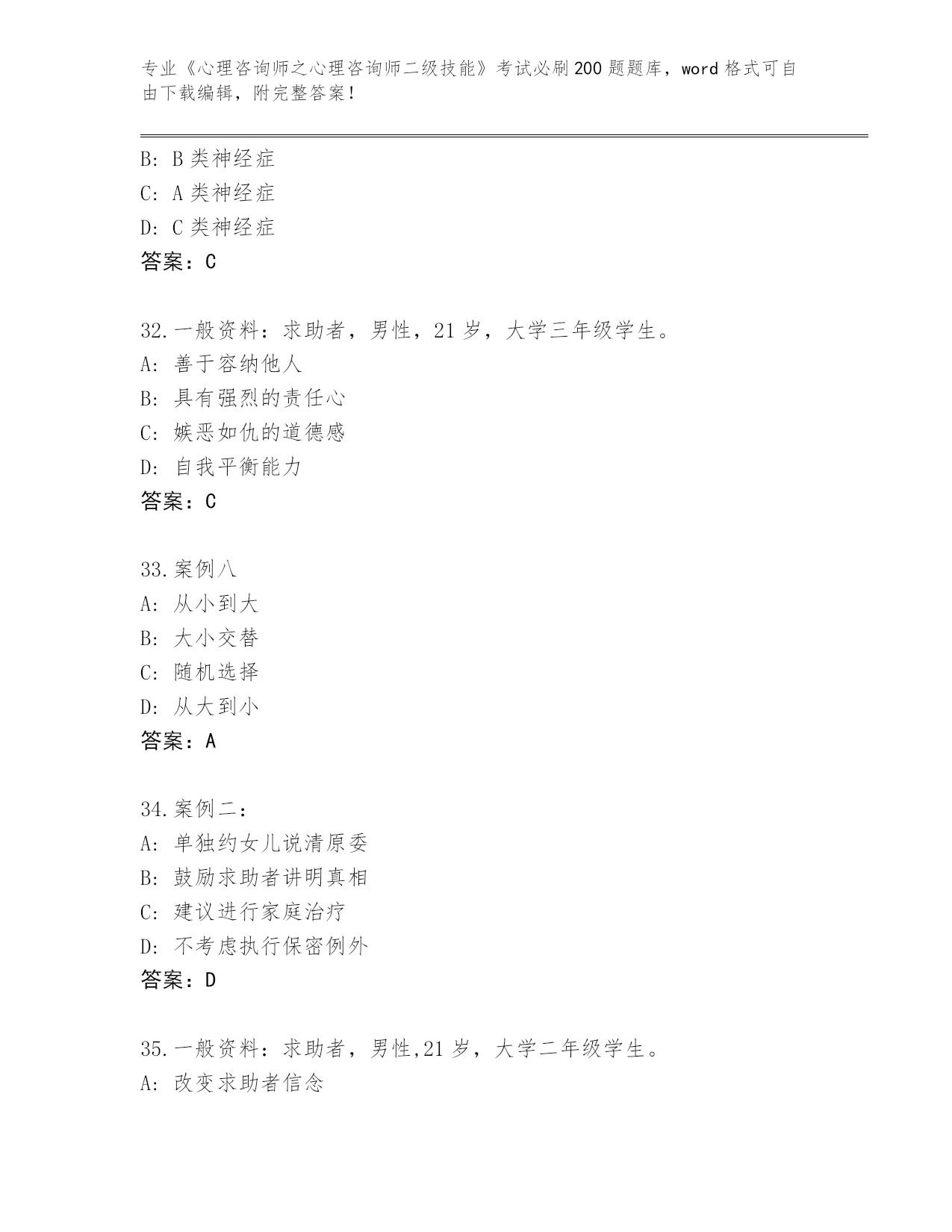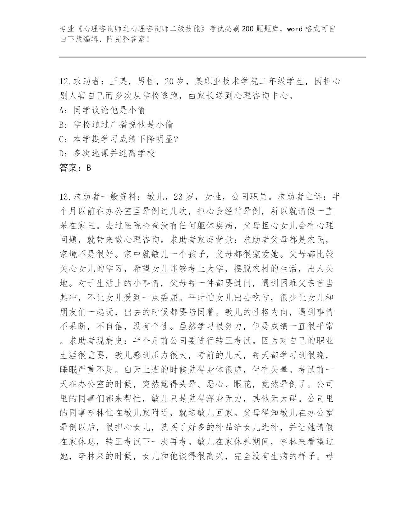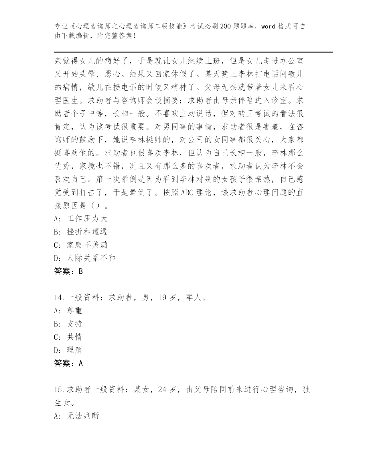 云南省历年《心理咨询师之心理咨询师二级技能》考试必刷200题大全答案下载