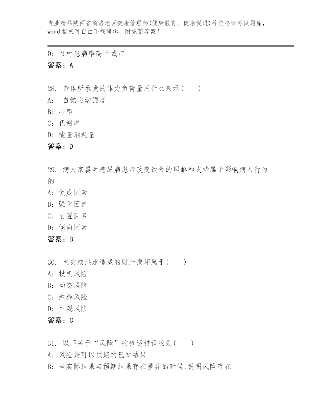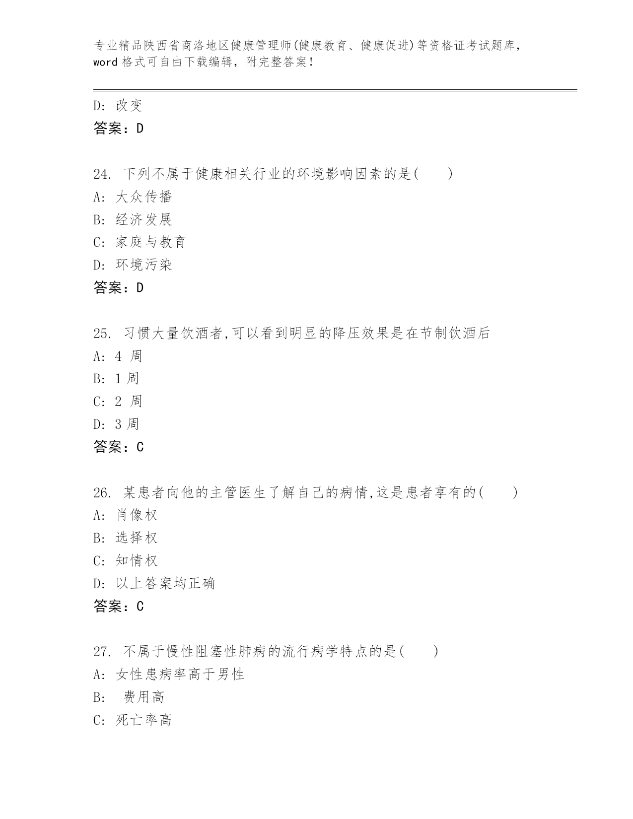 完整版陕西省商洛地区健康管理师(健康教育、健康促进)等资格证考试及答案【全国通用】