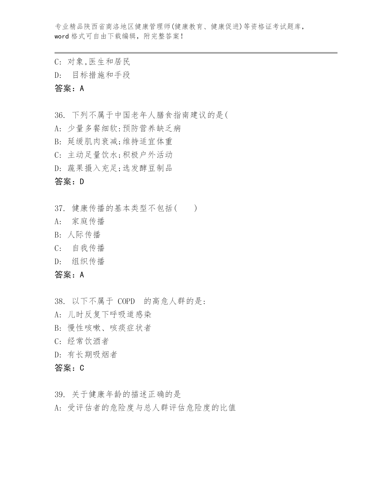 完整版陕西省商洛地区健康管理师(健康教育、健康促进)等资格证考试及答案【全国通用】.docx