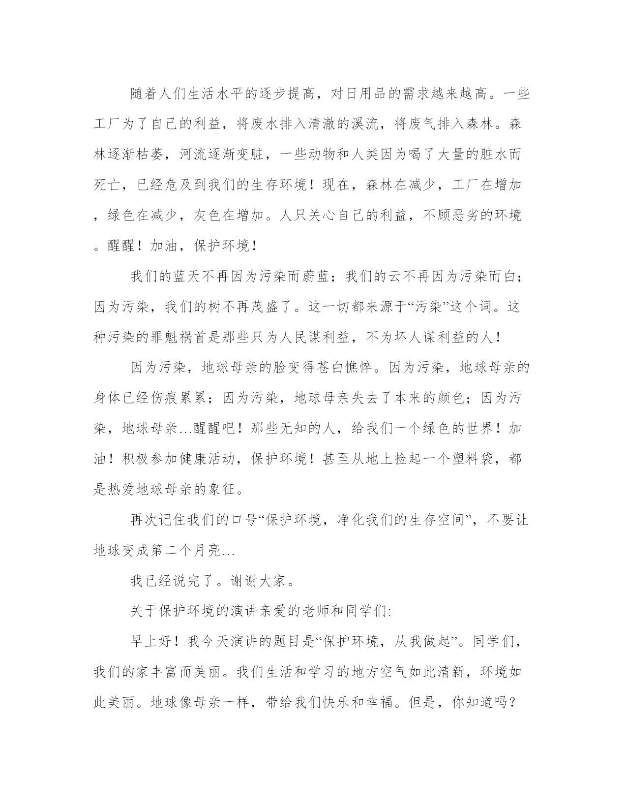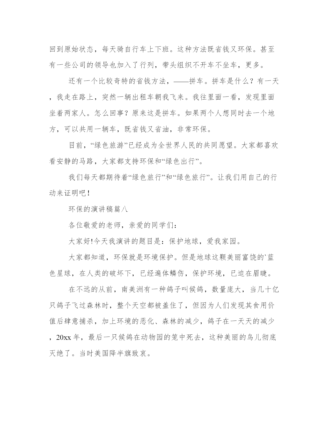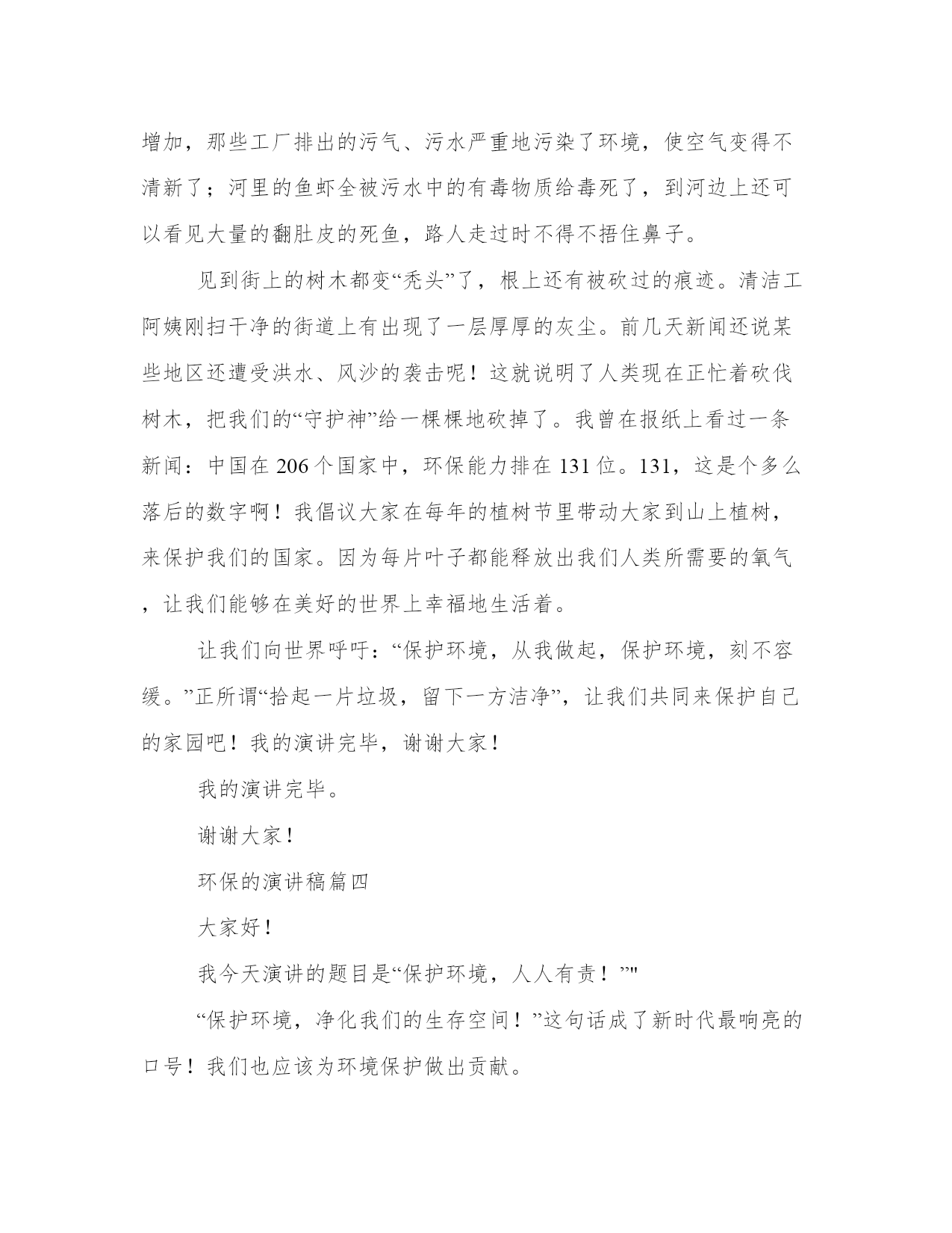 环保的演讲稿(优秀14篇)演讲作为人类一种社会实践活动,它必须具备以下几个条件:演讲者、听众、沟通二者的媒介以及时间、环境。那么我们写演讲稿要注意的内容有什么呢?下面小编给大家带来关于学习演讲稿模板范文,希望会对大家的工作与学习有所帮助。环保的演讲稿篇一尊敬的老师,亲爱的同学们:大家好!地球是我们人类的家园,也是人类的母亲。我们依赖它,探索它。这个蔚蓝色的星球多么美丽,但我们要知道:地球只有一个!遗憾的是,许多人对于这个浅显易懂的道理却视而不见,继续为所欲为,妄顾地球家园的安危。环境科学家曲格平曾经说过这样一句话:“唯有变革,才能拯救人类的命运,也唯有变革,才能使我们的子孙后代世世代代生存下去。”里面的“变革”就是指环保。说得很对,所以如今有许多人拿着标语在街上喊空口号,却没有见过多的行动。难道这样污染就会好转吗?不!看,我们城市里的河流的河水发黑发臭;排成长龙的汽车放出大量的废气;成片的绿地变成“石屎森林”;那清脆的鸟叫声消失得无影无踪。如果再这样下去,中国将继续贫乏水资源,空气将变得愈来愈浑浊,本世纪将有10%的鸟类物种消失。上述的事情,我们人类是罪魁祸首!人人皆知:树木能吸收二氧化碳,排放氧气,净化空气,是我们人类生存的必要的条件。但是有一些人为了金钱去乱砍滥伐树木,造成了过度的水土流失,使大地的植被受到严重的破坏,绿洲和城市也荒漠化,我们人类的生存受到了威胁。就我们平时用的一次性筷子,每天都要耗费数十亩的森林,在那些人眼中,树木除了可以做家具和建筑材料外,似乎没有任何价值。难道还有人不懂树木对我们意味着什么吗我们居住面积已经很小了,如果再这样下去,可能连我们唯一的土地都失去。还有,我们的母亲河——黄河近年来河床和含沙量不断增高,成为全国污染最严重的几条江河之一。我们不能眼睁睁地看着黄河从我们手中枯竭,因而有许多环境学者纷纷分析治理黄河污染的方案,试图改善黄河的水质。但如果没有我们的共同参与,我们这个生命的摇篮——黄河将会走向衰竭和死亡。现在,地球的生态环境加剧恶化,环保警世钟已经敲响了。让我们齐齐加入保护环境的行列,创立一个人与大自然和谐共处的美好未来,让人类与自然生生不息地繁衍下去吧!我的演讲完毕,谢谢大家!环保的演讲稿篇二朋友们,大家好!今天我演讲的题目是:珍惜资源,节能环保。古人曾说过:“一粥一饭,当思来之不易;一丝一缕,恒念物力维艰”。节约,是我们中华民族的美德,环保,更是我们义不容辞的责任。历史已经证明,奢侈,是败国、败家的根源。只有以勤俭节约作为支持,国家才能兴盛,民族才能自强。身处新时代的我们,更要加强环保的意思,厉行节约。有人或许会问,我能做什么?其实很简单,身为一名普通的财务人员,我们要从自己的岗位出发,做好自己身边的每一件小事。比如:作为我县财务局的一名财务出纳,在完成自己的本职工作之后,还要多思考,如何才能在工作中节能降耗,全心全意为财政局的利益献出自己的一份力;在我们填写付款单据时,要时刻想一想,今天我做到节约了吗?我们在打印各项业务凭证、水单时是否尽量使用二手纸,最大限度节省纸张;在我们在使用电脑、电灯、甚至空调的时候,要问问自己,今天我做到节约了吗?在我们下班之后,我们有没有随手关闭电脑、电灯和空调,以节省电费;在我们使用打印机,使用复印纸或公文纸的时候,我们是否尽量实现无纸化办公。在我们工作的时候,我们是否注意到了环保就在身边,是否在工作中随手丢弃纸屑,是否爱护环境。联想近年来,环境遭到了严重的破坏,到处都是乌烟瘴气,到处都是排放的污水,污浊的空气已经给我们生活带来的不便,严重威胁了我们的身体健康。朋友们,试问谁愿意生活在这样的环境之中。因此,为了改变现状,为了能让我们能有一个干净、整洁的生活环境,就需要我们一起去爱护,要更加重视节约资源,在平时的工作生活中,要多想想,今天,我浪费资源了吗?做到了环保了吗?只有我们都能对身边的小事加以重视,并赋予行动。这样,我们才能生活在一个环境好、空气好的社会中,不仅有利于我们的身体健康,也有利于我们工作的开展。崇尚节约,加强环保,要从我们每一个人做起,要在思想上加以重视,要始终保持艰苦工作的作风。我们财政局的每一位同志,都代表了我局的形象,所以要更加注重自己的行为规范,要大力倡导环保节约,要从身边的点点滴滴做起,通过大家的共同努力,争取形成节约文明,爱护环境的良好风范。做好环保,真的很简单,但是要持之以恒的坚持做每一件小事,那就是不简单。因此,我们要将坚持做不简单的时,珍惜身边的每一份资源,从节约一度电、节约一张纸、节约一滴水做起,自觉养成勤俭节约的良好习惯,让我局在外界树立起良好的形象。我的演讲完毕,谢谢大家!环保的演讲稿篇三亲爱的老师,同学们:大家好!我是广东省廉江市一小五(8)班的一名同学,我叫吴佩