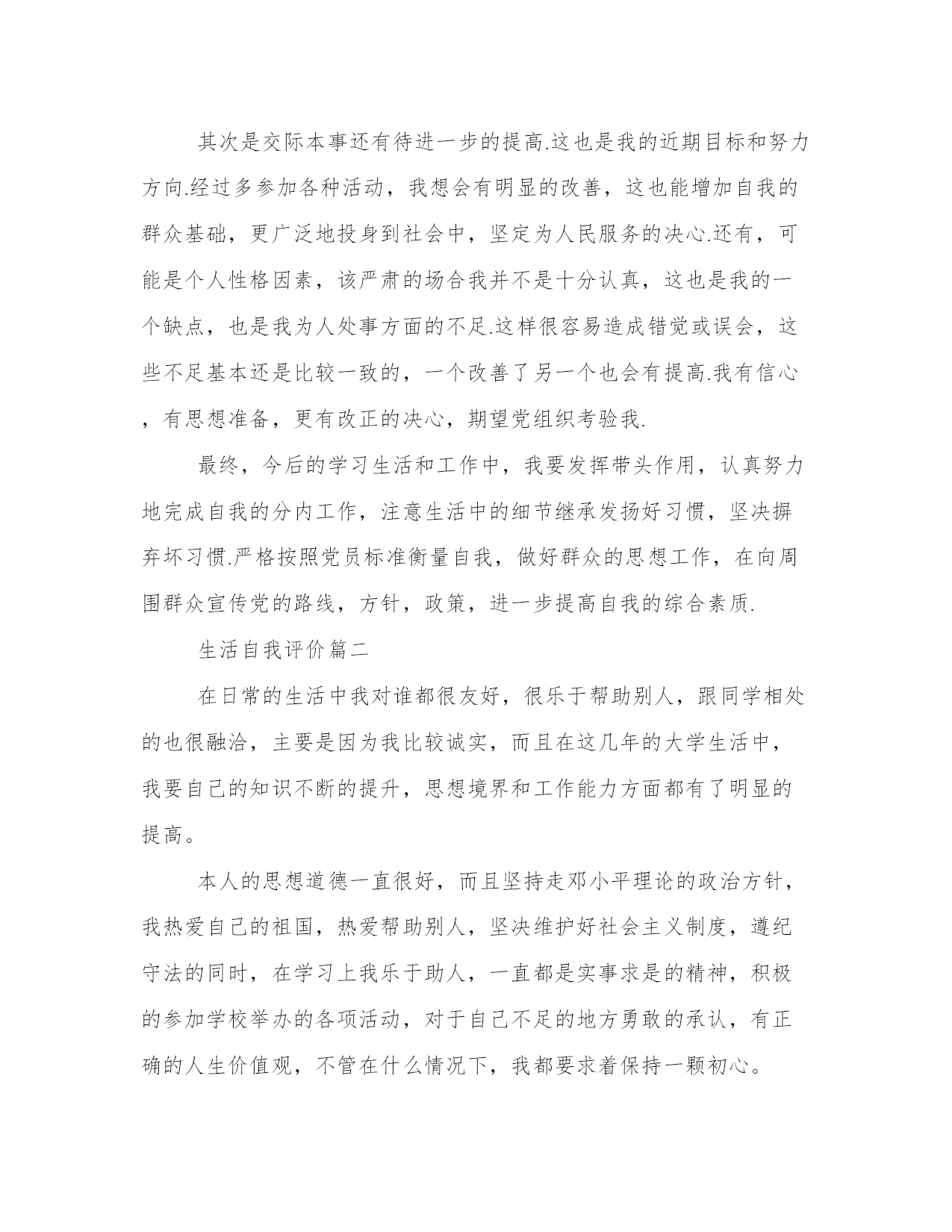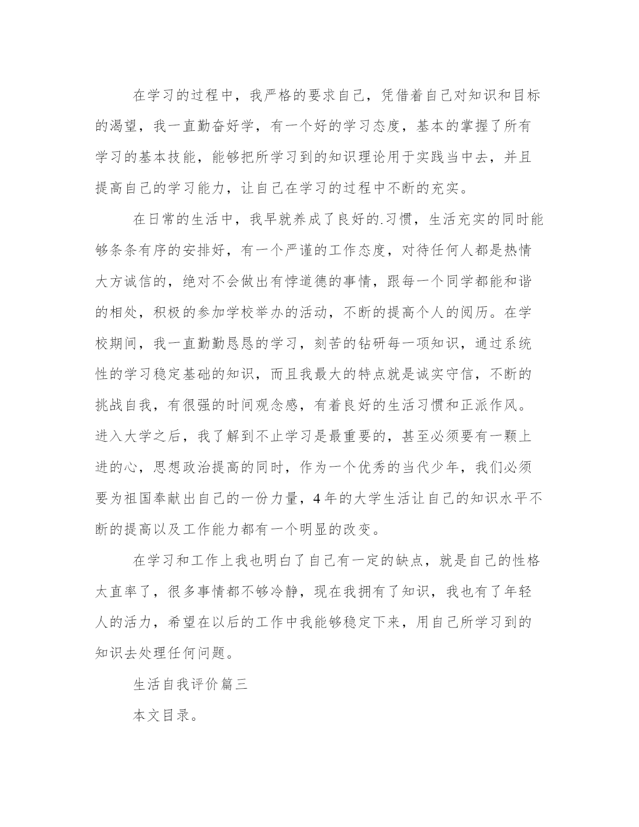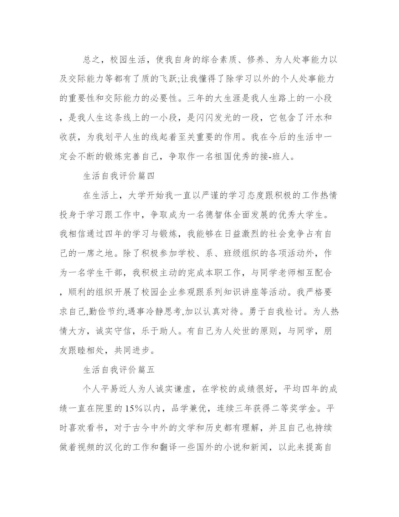 2023年生活自我评价生活中自我评价(实用10篇).docx