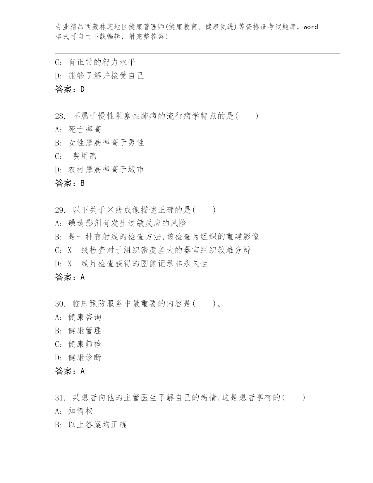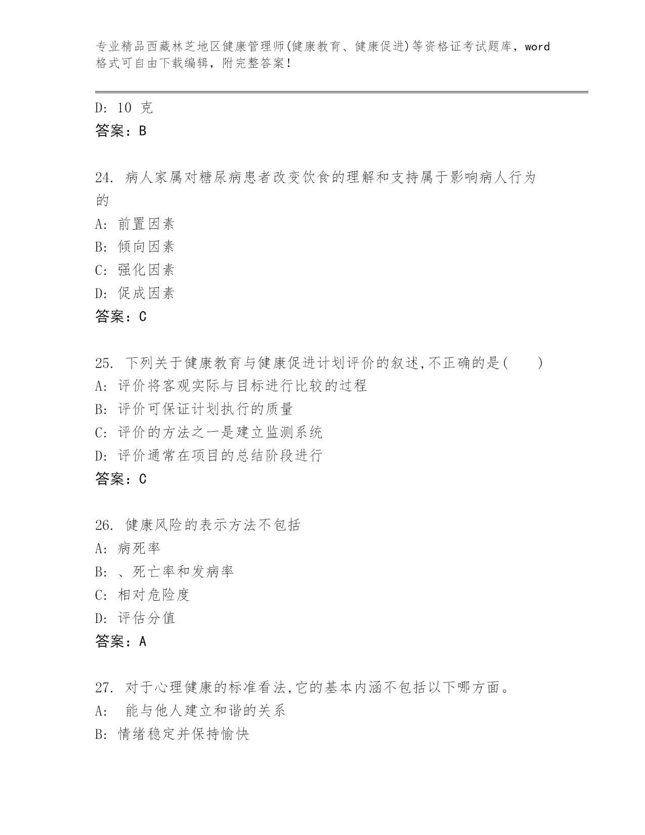 最新西藏林芝地区健康管理师(健康教育、健康促进)等资格证考试含答案【完整版】.docx