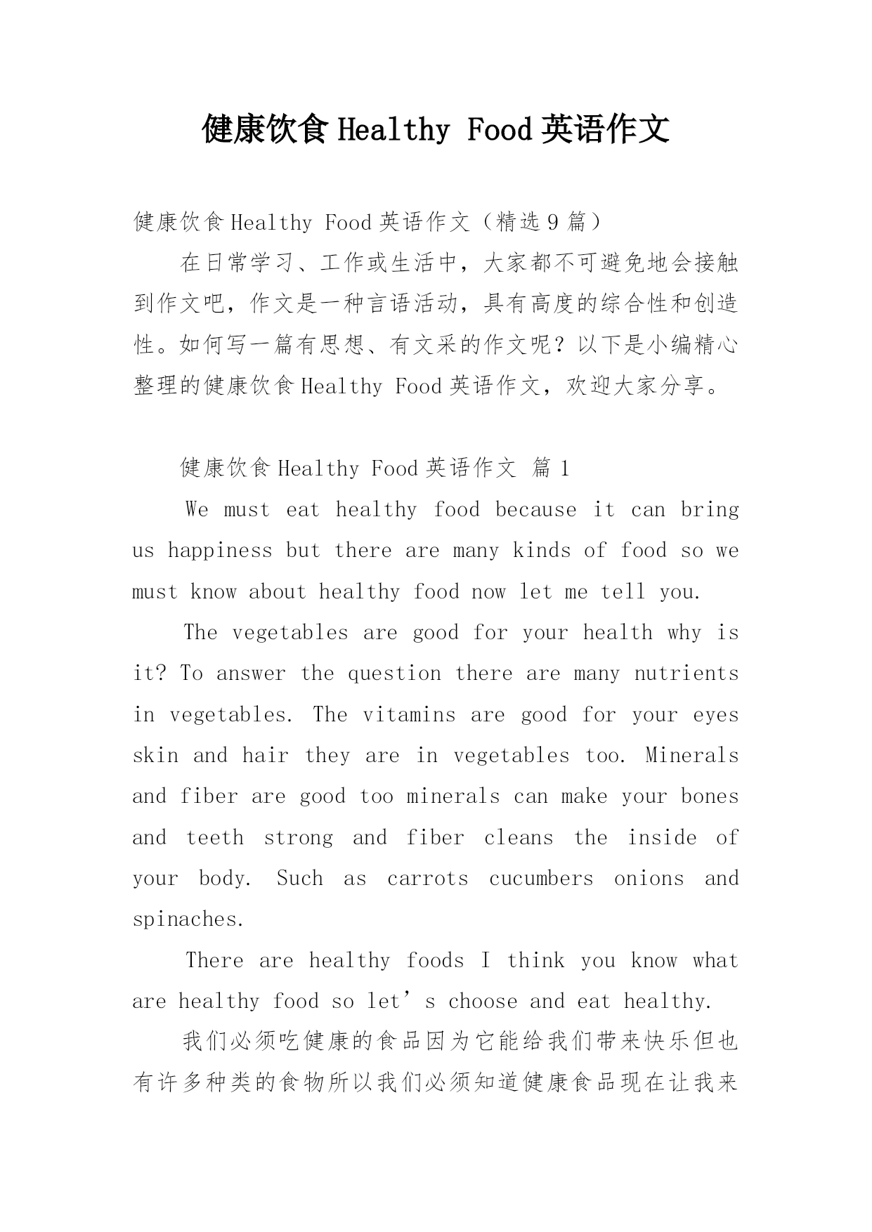 健康饮食Healthy Food英语作文.docx
