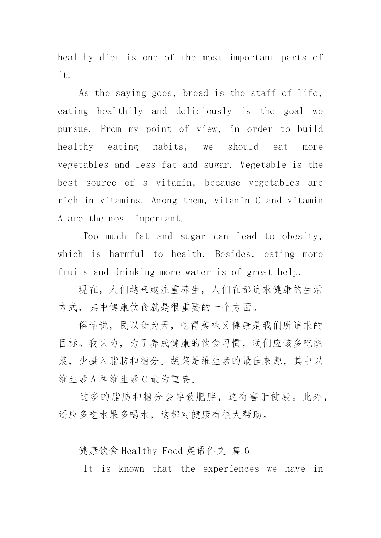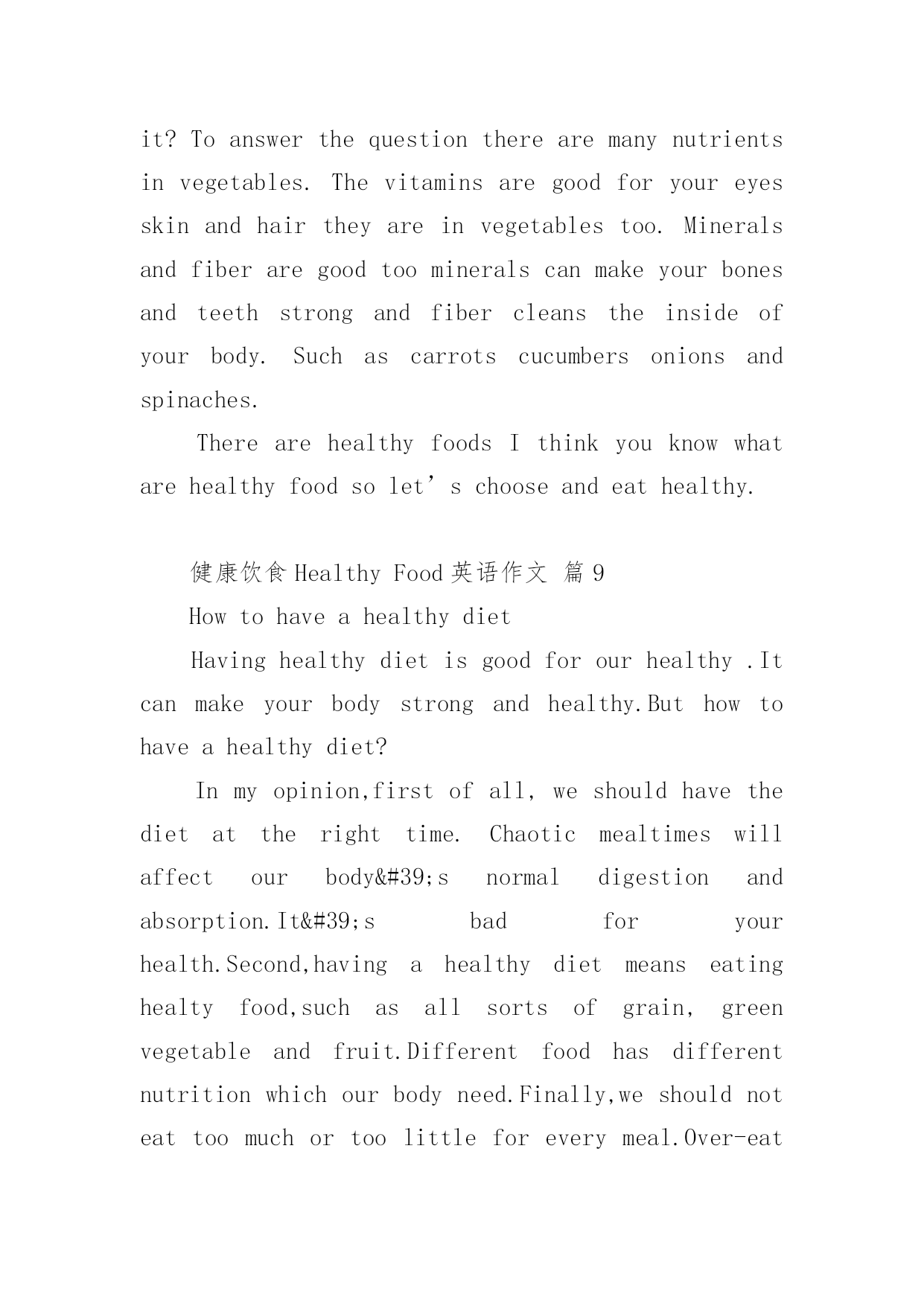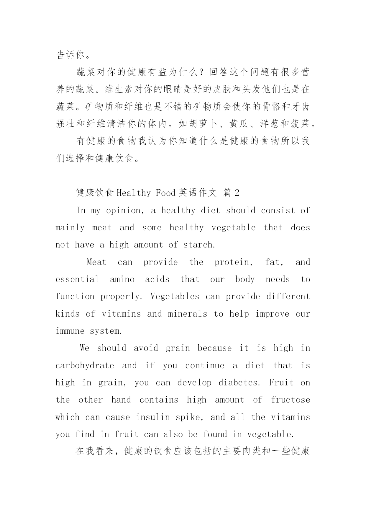 健康饮食Healthy Food英语作文