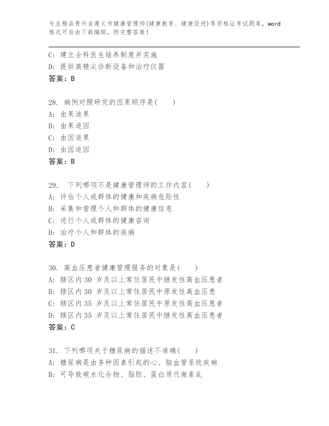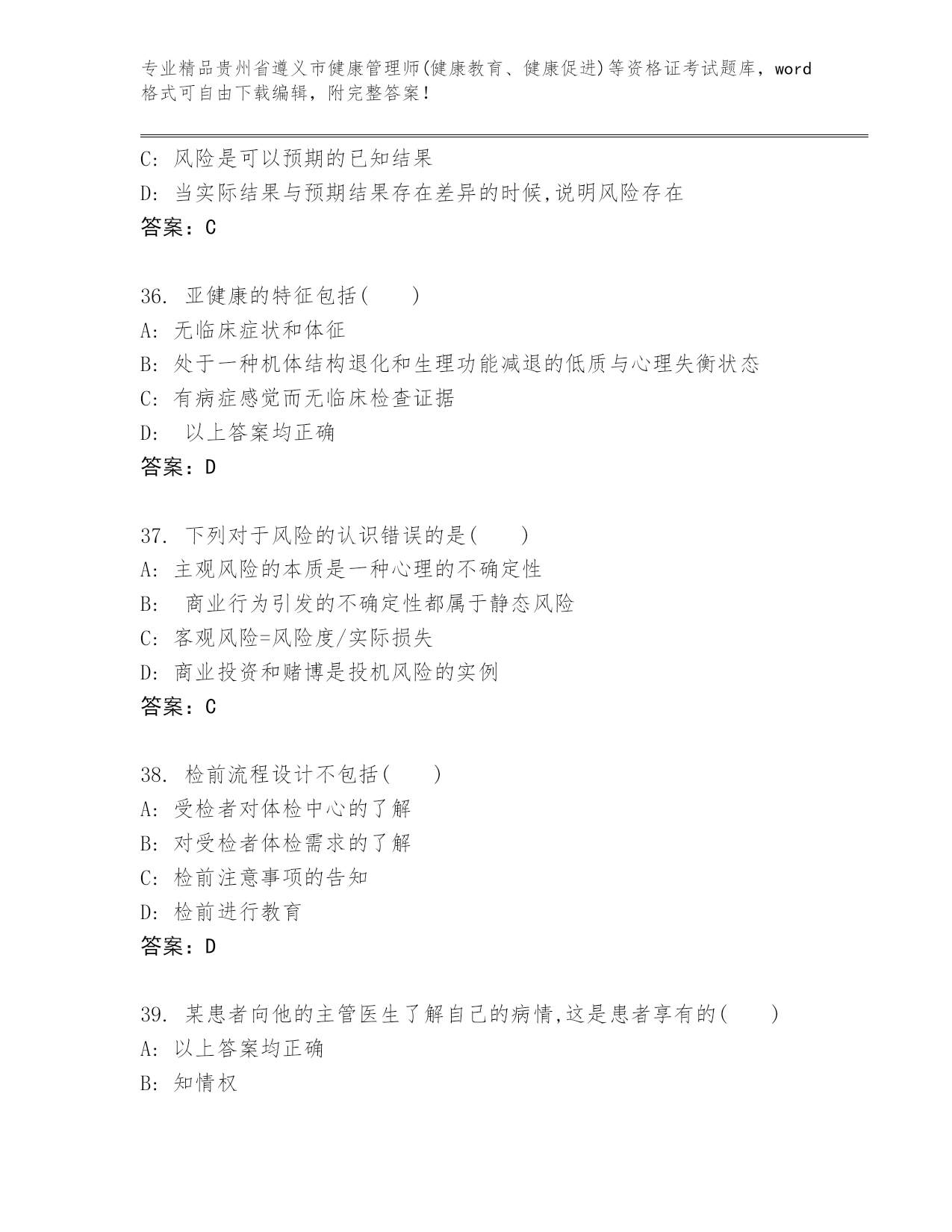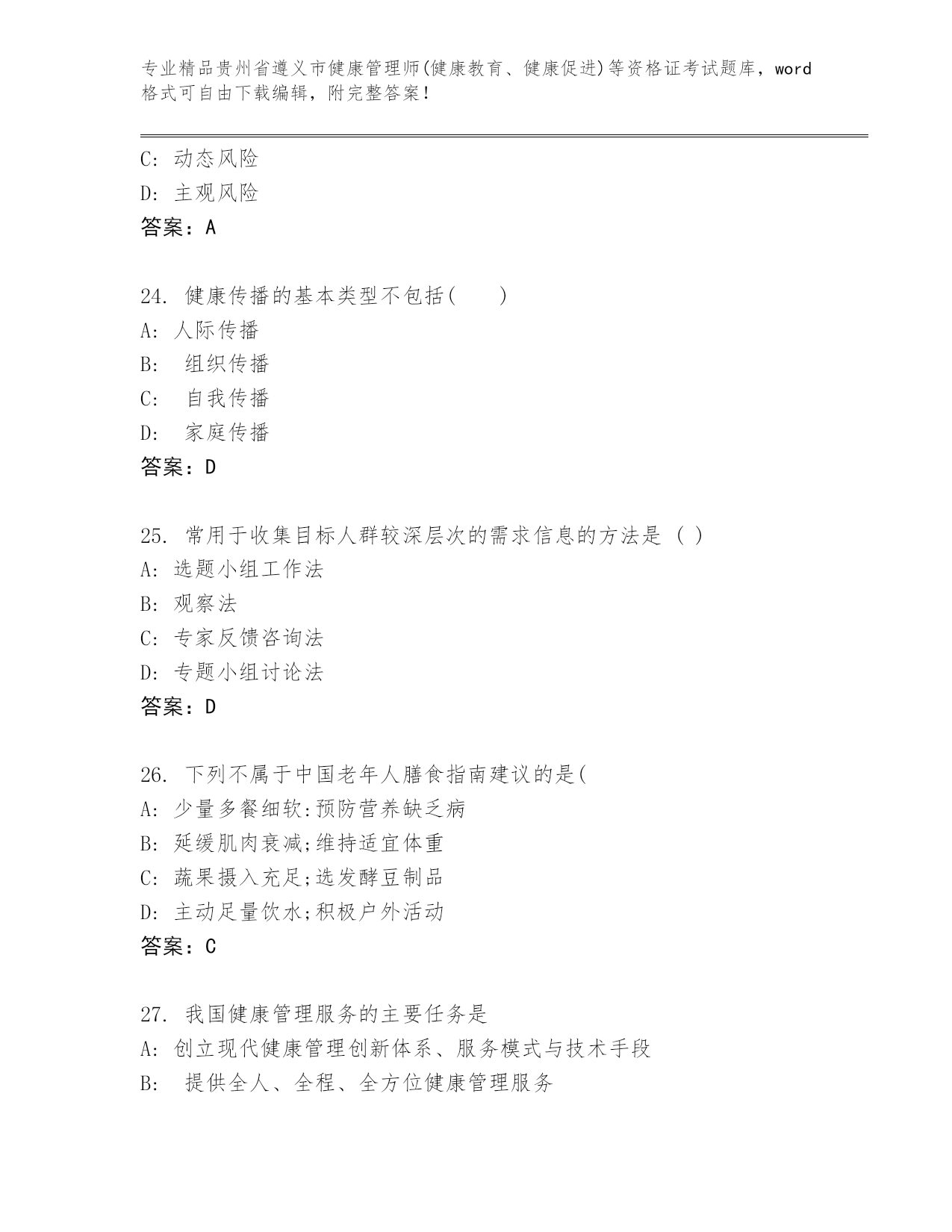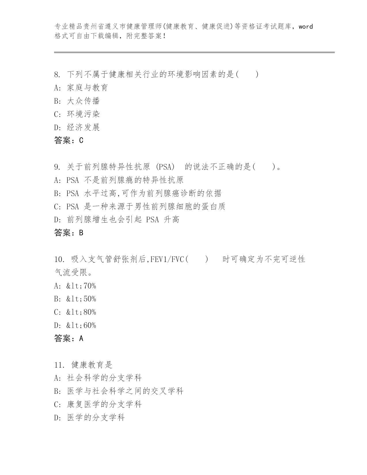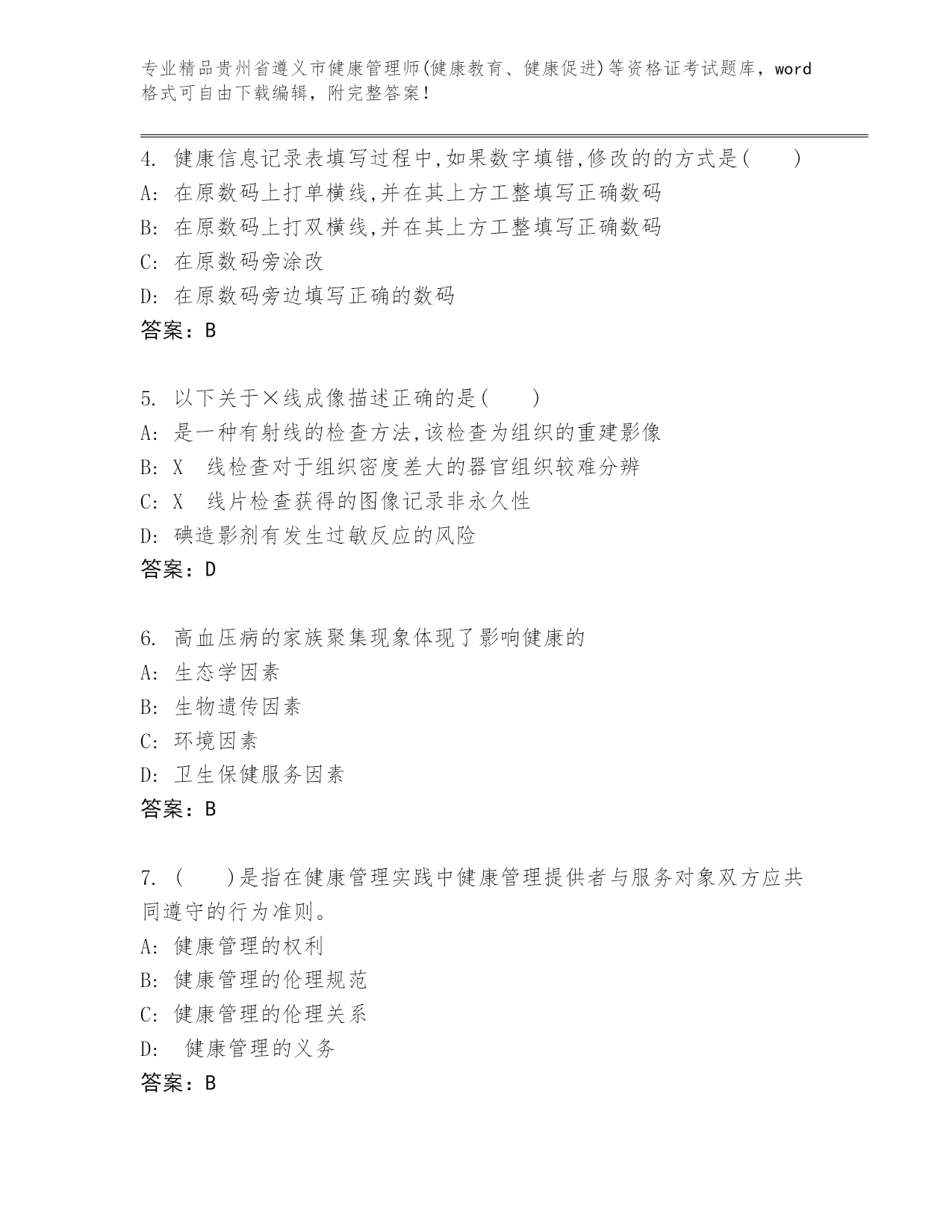 历年贵州省遵义市健康管理师(健康教育、健康促进)等资格证考试(预热题).docx